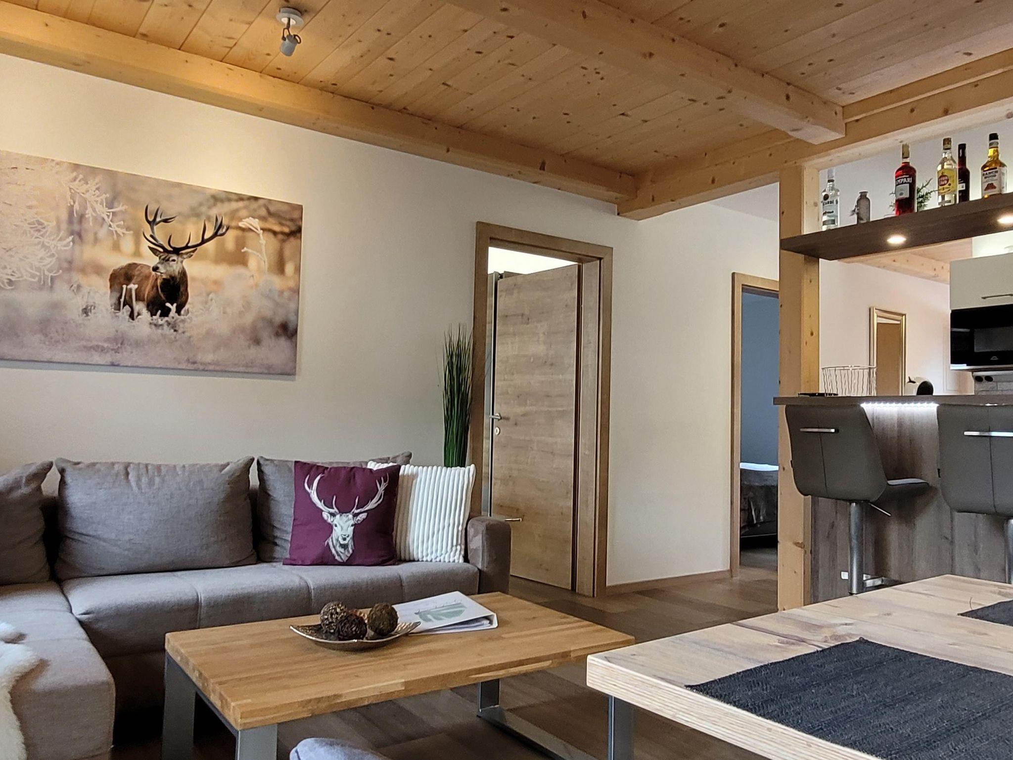 Das Appartement befindet sich im Erdgeschoß und verfügt über 2 Schlafzimmer mit je einem Boxspringbetten, Schrank, TV Flachbildschirm. Darüber hinaus hat es ein modernes Bad mit ebenerdiger Dusche, WC, Waschbecken und ein Fenster. Wenn Sie von Ihren Unternehmungen zurückkehren, können Sie sich an der, in die Wohnküche integrierten, Bar erholen. Vom gemütlich und hochwertig eingerichteten Wohn- Essbereich mit großem TV Flachbildschirm haben Sie einen Blick auf den Hohe Sonnblick (3106 m). Vor dem Wohnbereich und von einem Schlafzimmer aus, haben Sie Zugang auf eine große nach Süden ausgerichtete Terrasse.