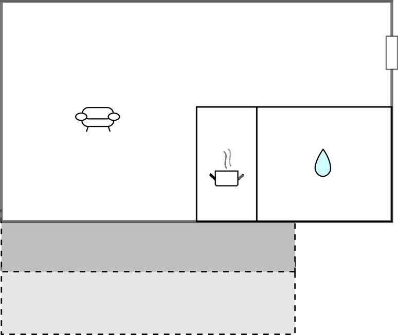 Tekøkken - 2 Sovepladser. (Dobbeltseng(e)). 2 Sovepladser. (Sofa, madras eller lignende).