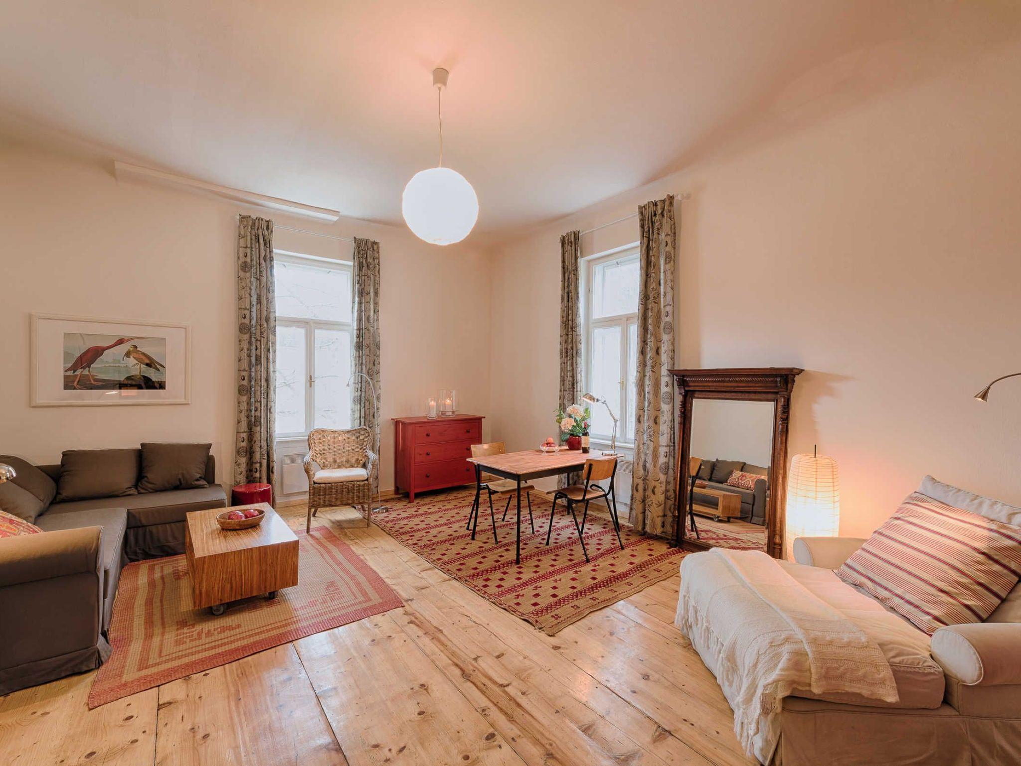 Das im Hochparterre gelegene 50m2 Apartment Pink Olga bietet ein Schlafzimmer mit Doppelbett, großer Wohnküche mit Doppelschlafcouch und einen Pelletofen. Dazu gibt es ein Badezimmer mit Badewanne, Fußbodenheizung und Blick auf den Magnolienbaum. 100 Jahre alte Schiffböden, gemütliche Sofas und Lesesessel, Flachbildschirm mit SAT-Anschluss und DVD-Player sowie eine Auswahl von Filmklassikern für verregnete Abende. Saunazugang und Gartenbenützung inklusive. Die Küche umfasst alles was das Herz begehrt.