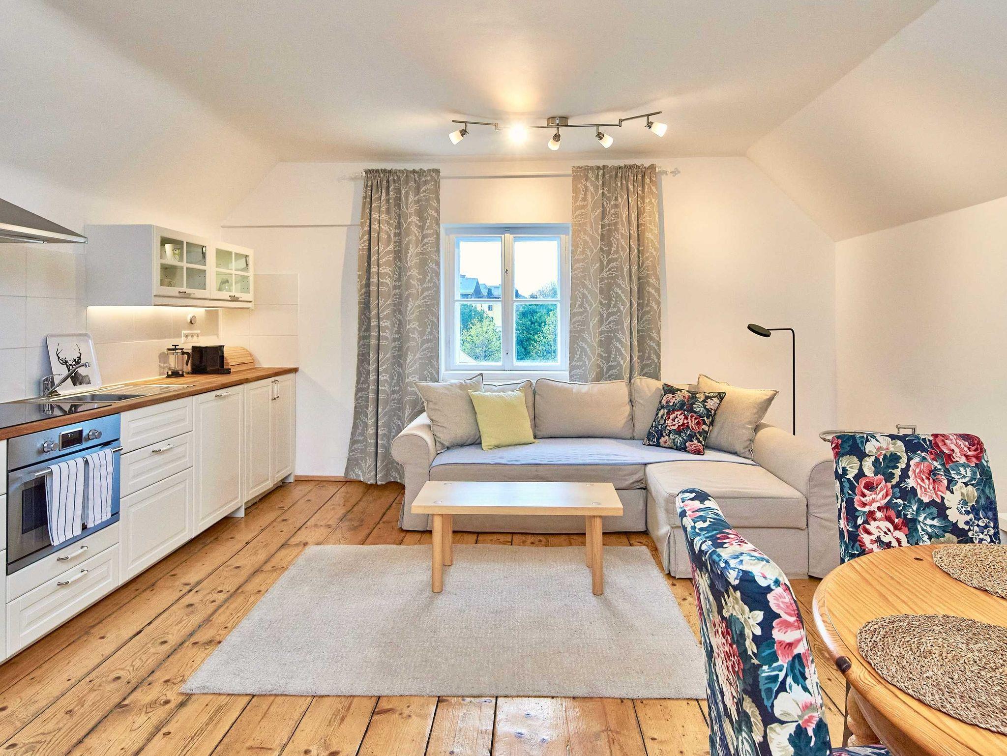 Ein gemütlich-gediegener Landhausstil zieht sich durch alle Apartments, mit Möbeln aus 3 Jahrhunderten. Alle Apartments sind nicht nur teppichbodenfrei, man bewegt sich überwiegend auf 120 Jahre alten Dielen. Dazu alle komfortablen Errungenschaften von heute: gemütliche Badewannen für Zwei (nicht in allen Apartments), Fußbodenheizung im Bad, durchgehend gratis WLAN, Ultraflachbildschirme mit SAT Anschluss (viele davon digital und damit streaming-fähig), DVD Player und eine Auswahl an DVDs etc. Pelletöfen in jeder Wohnung sorgen für gemütliche Wärme und Feuerschein auf Knopfdruck, auch wenn es jenseits des Winters einmal etwas kühler wird.