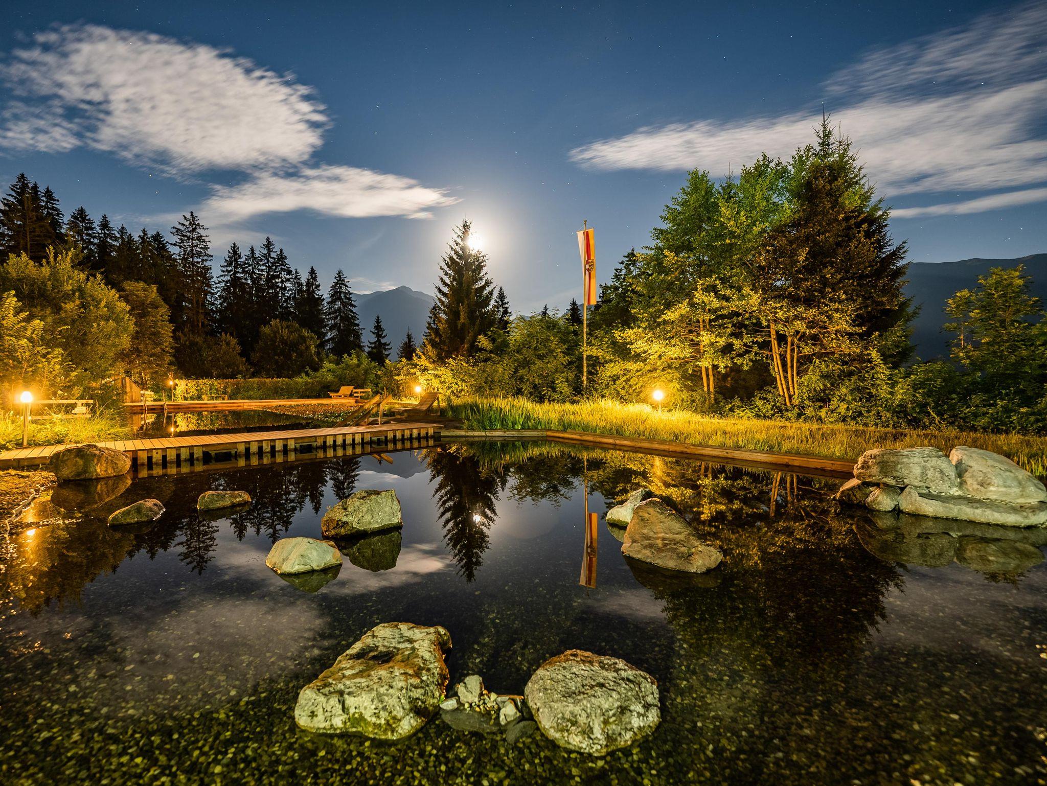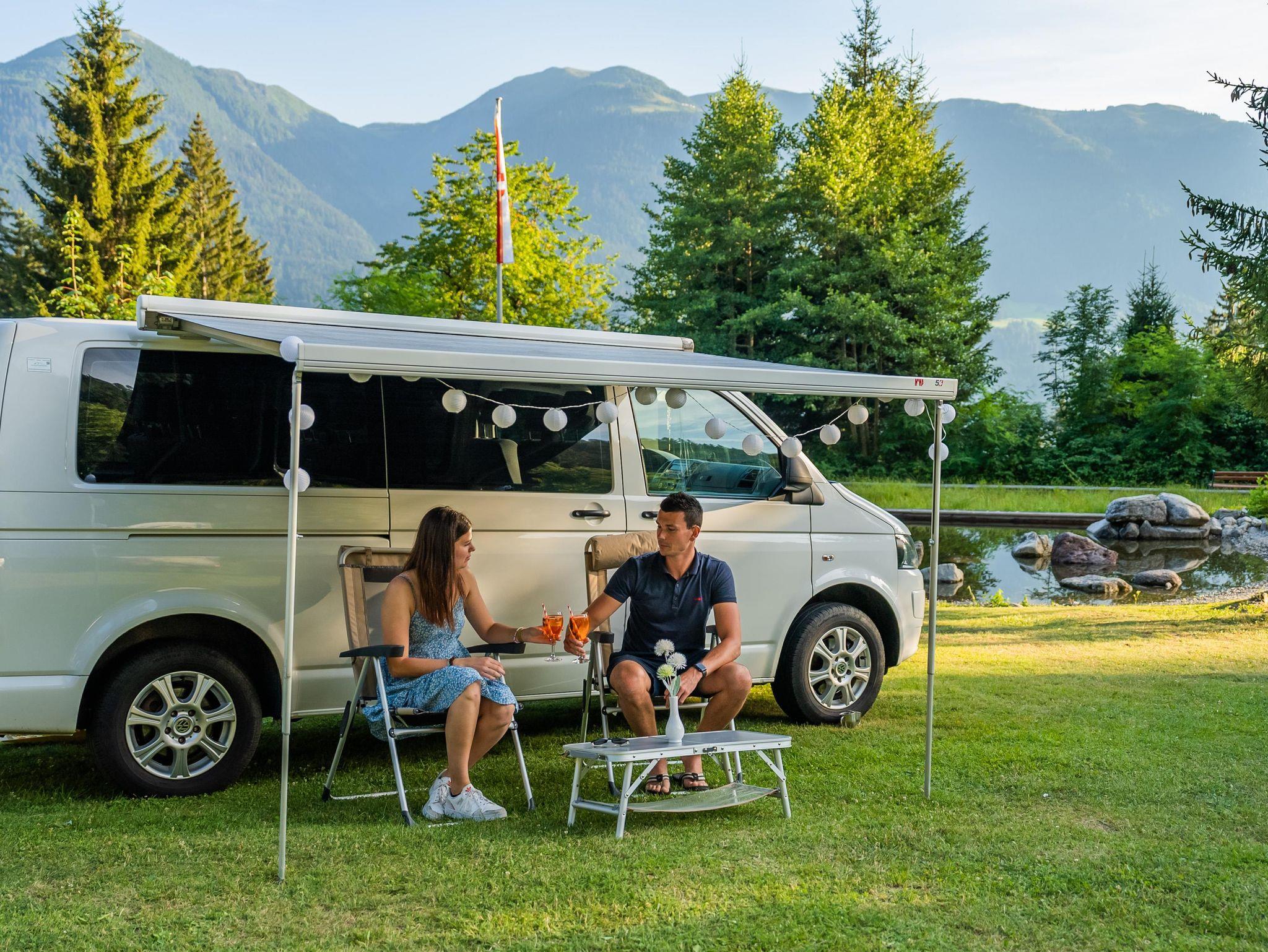 Am Alpenferienpark gibt es neben Stellplätzen auch Holzhu¨tten und Mobilheime die gemietet werden können. Es gibt einen schönes großes Naturschwimmbad inklusiv Kinderbecken mit einem kleinen Kiesstrand. Für die aktive Entspannung steht ein schönes Beachvolleyballfeld zur Verfügung. Fu¨r kleine Kinder ist ein Kinderspielplatz vorhanden. Das Restaurant mit Gastgarten bietet eine kleine Karte und ist im Sommer auch die Bu¨hne fu¨r kulinarische Themenabende. Frischen Brötchen sind jeden Morgen im Campingladen erhältlich.