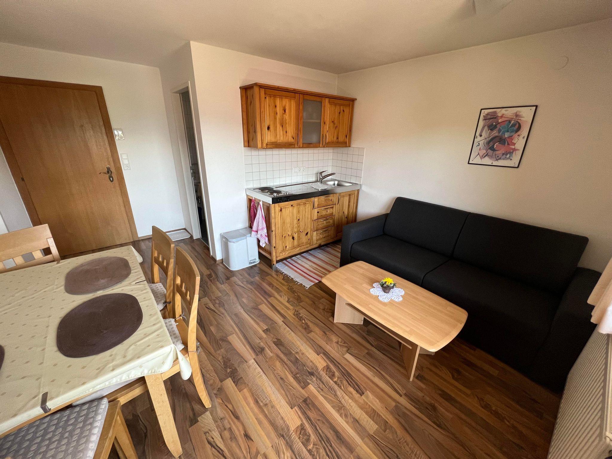 Hier finden Sie außerdem Küche, Essplatz, Sofa mit Bettfunktion und (in beiden Räumen) SAT-TV.