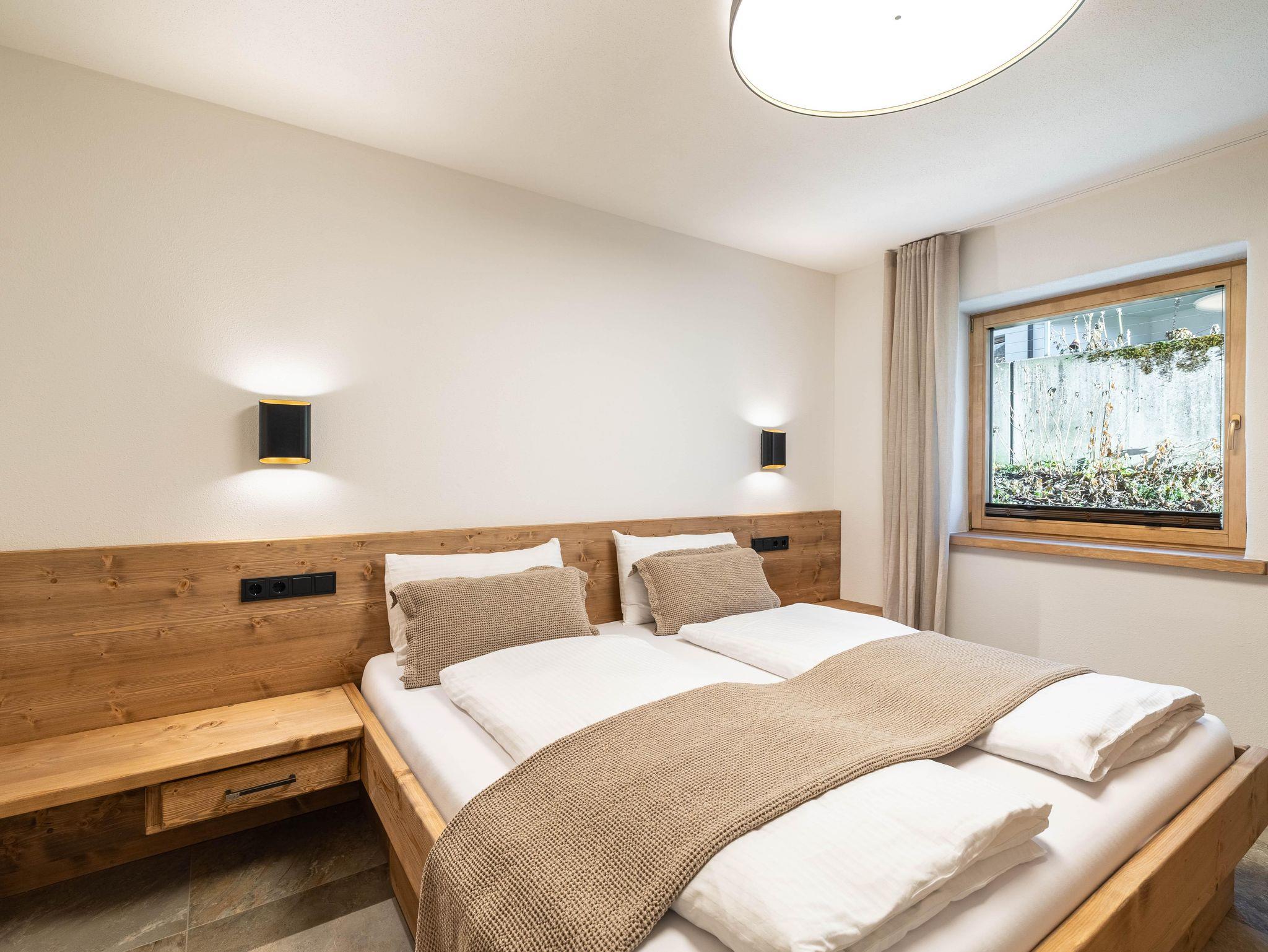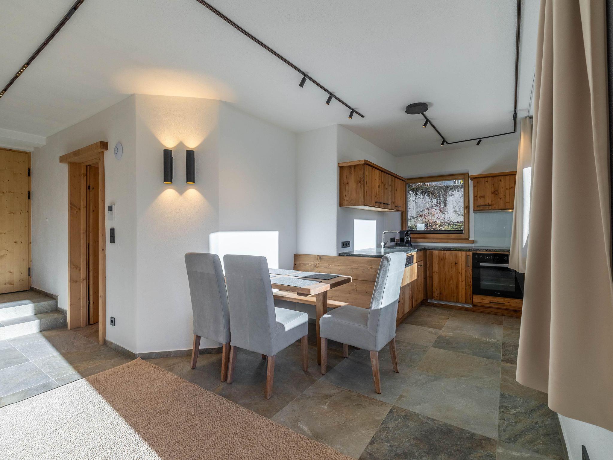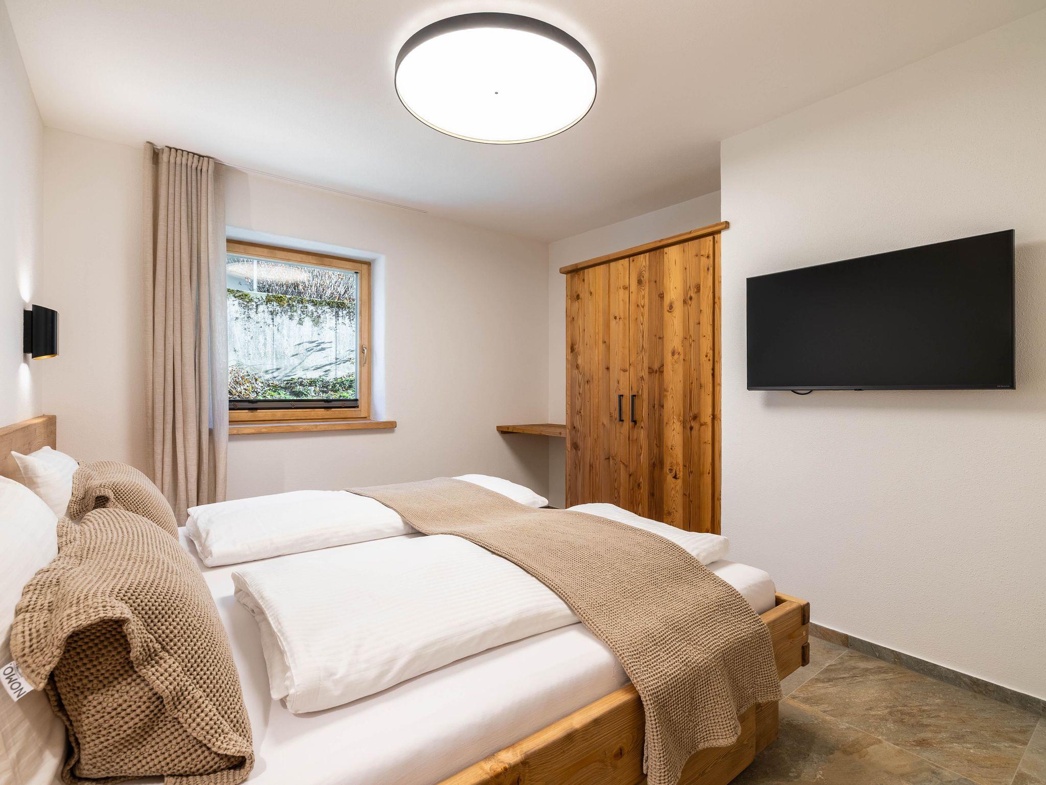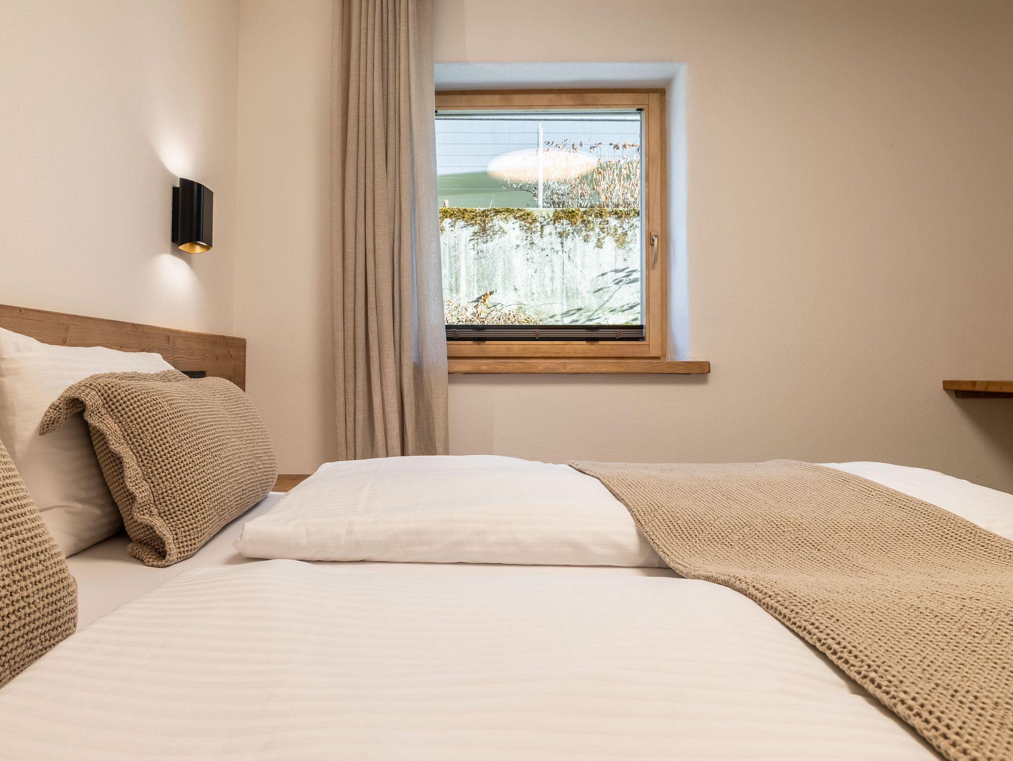 Dieses stilvoll eingerichtete Apartment im ersten Stock bietet auf 60 m² Platz für bis zu sechs Personen. Es überzeugt mit modernen Möbeln, Balkon, zwei Schlafzimmern mit Doppelbetten, einem Bad und zwei Schlafmöglichkeiten auf der Couch. Die ruhige Lage am Ortsrand ermöglicht Naturerlebnisse direkt vor der Tür und bietet Komfort, Design und echtes Alpenflair.
