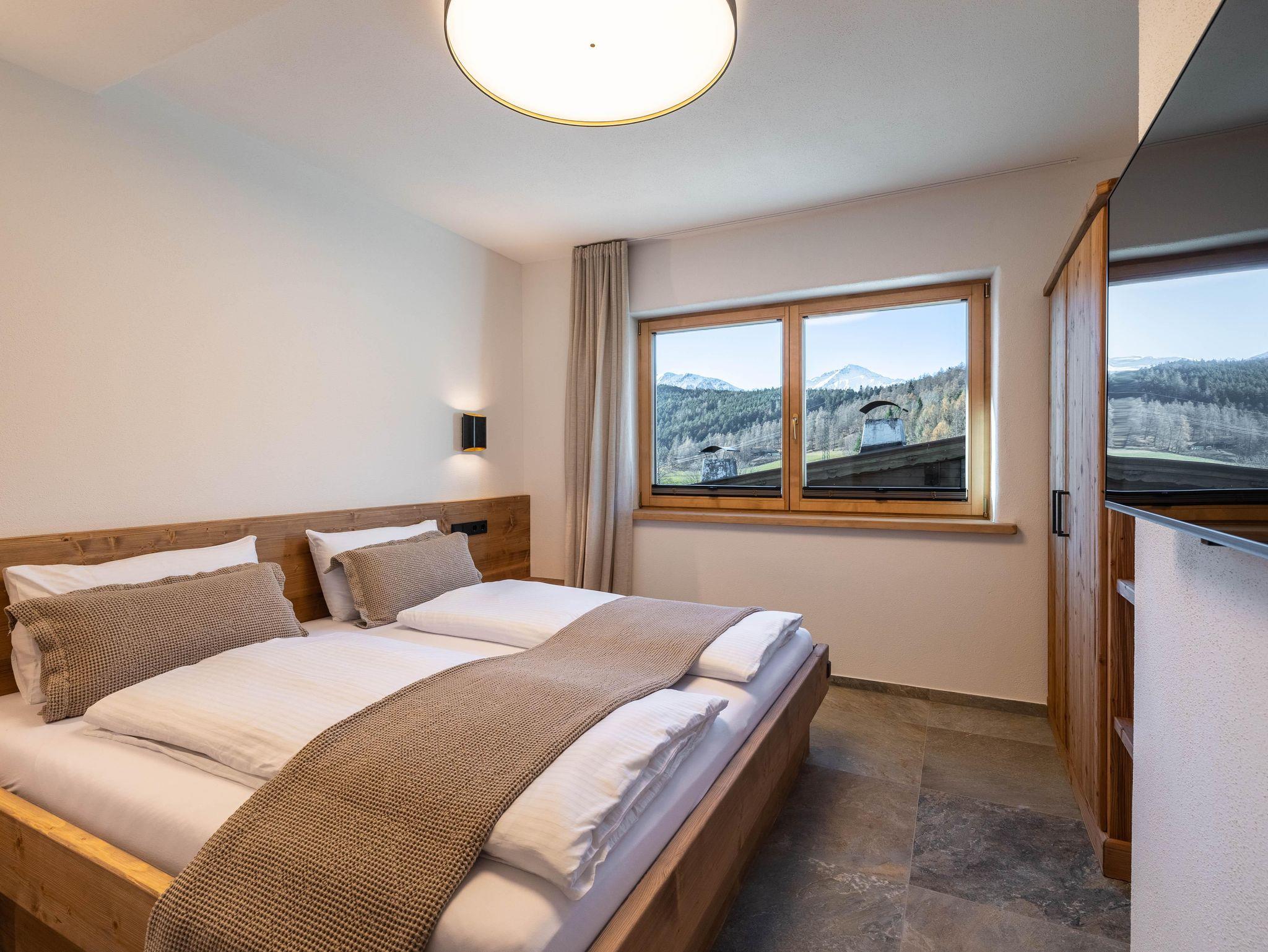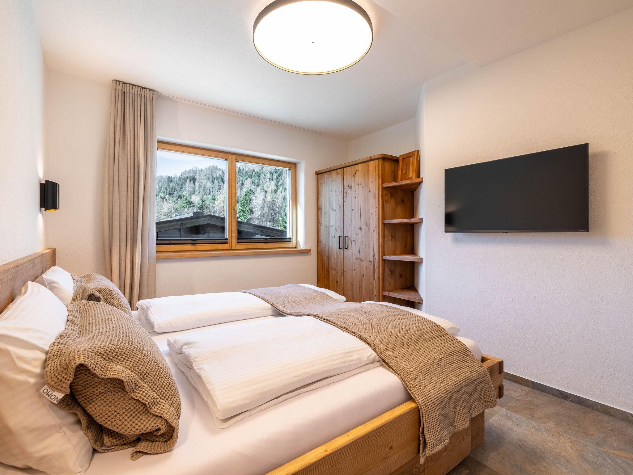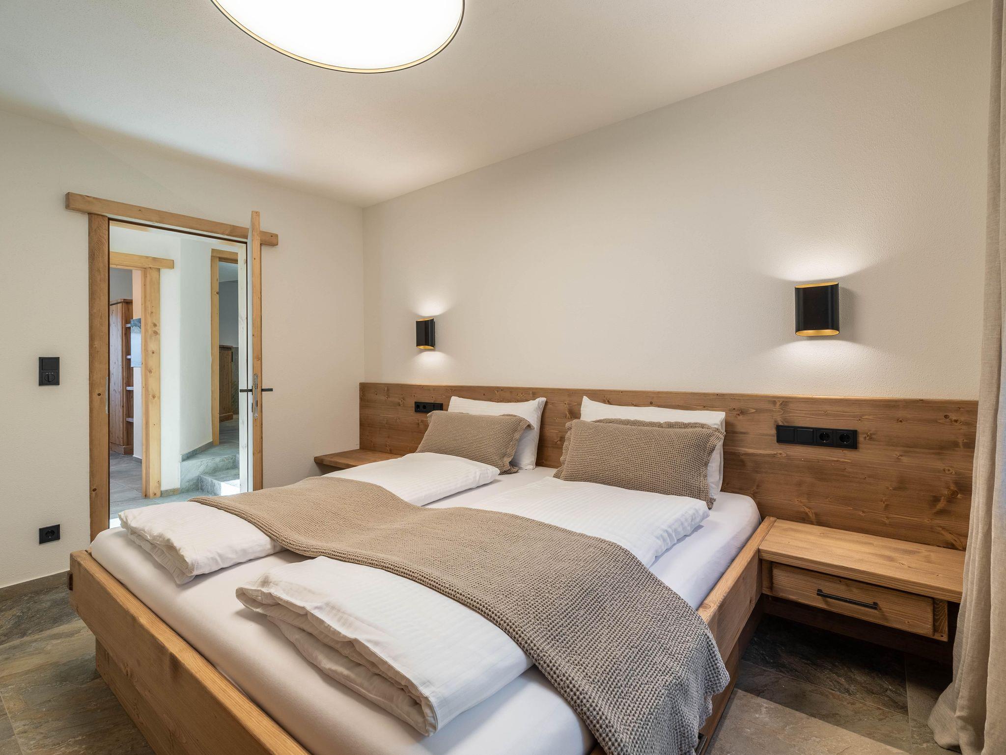 Dieses stilvoll eingerichtete Apartment im ersten Stock bietet auf 60 m² Platz für bis zu sechs Personen. Es überzeugt mit modernen Möbeln, Balkon, zwei Schlafzimmern mit Doppelbetten, einem Bad und zwei Schlafmöglichkeiten auf der Couch. Die ruhige Lage am Ortsrand ermöglicht Naturerlebnisse direkt vor der Tür und bietet Komfort, Design und echtes Alpenflair.