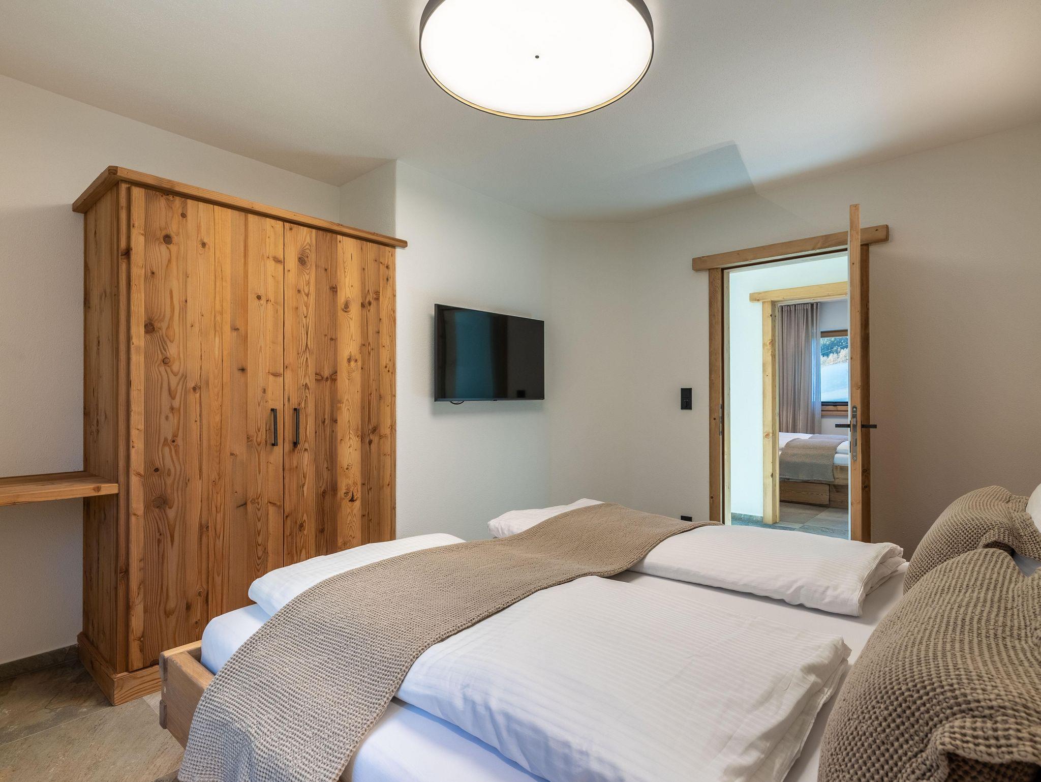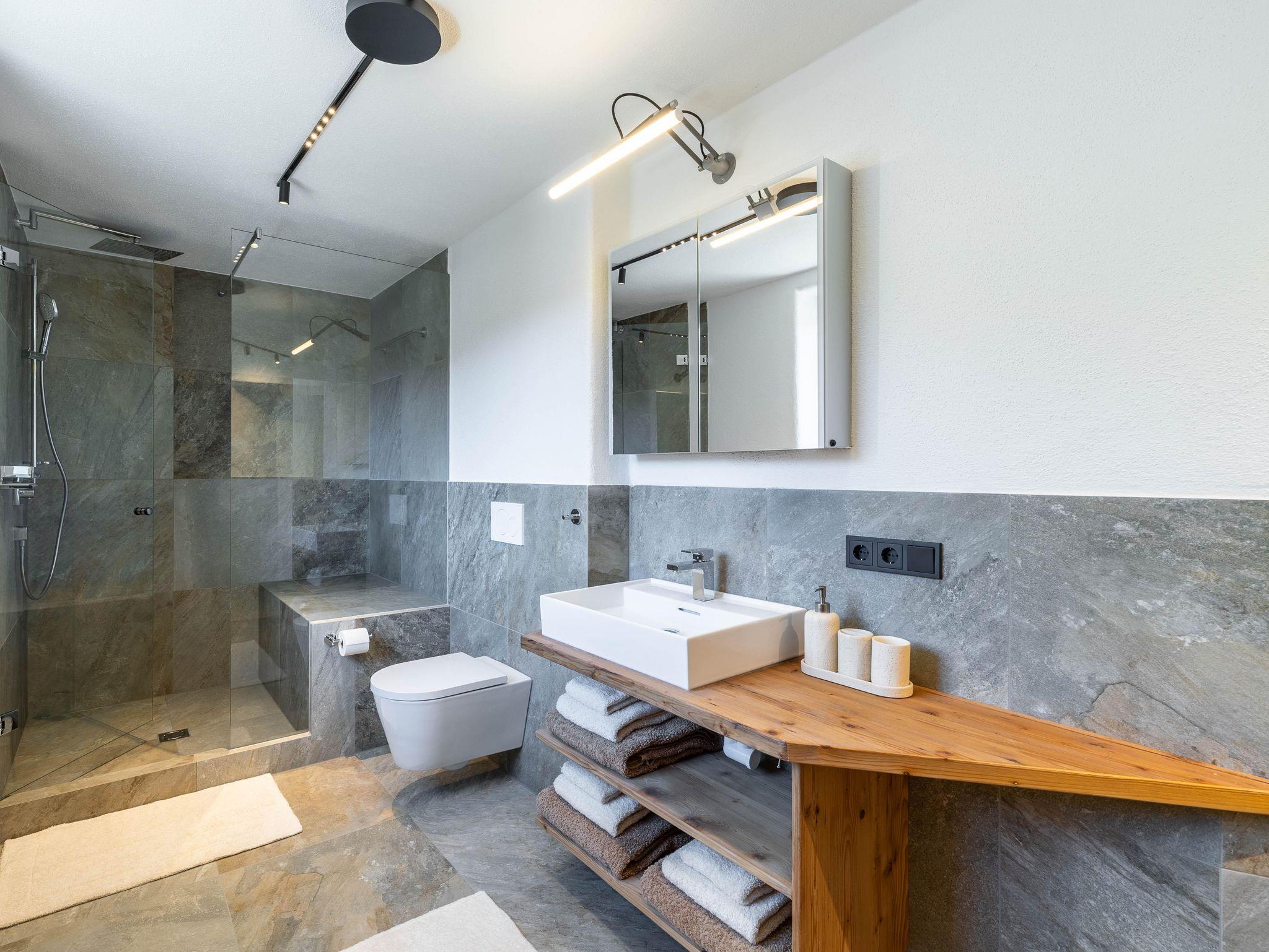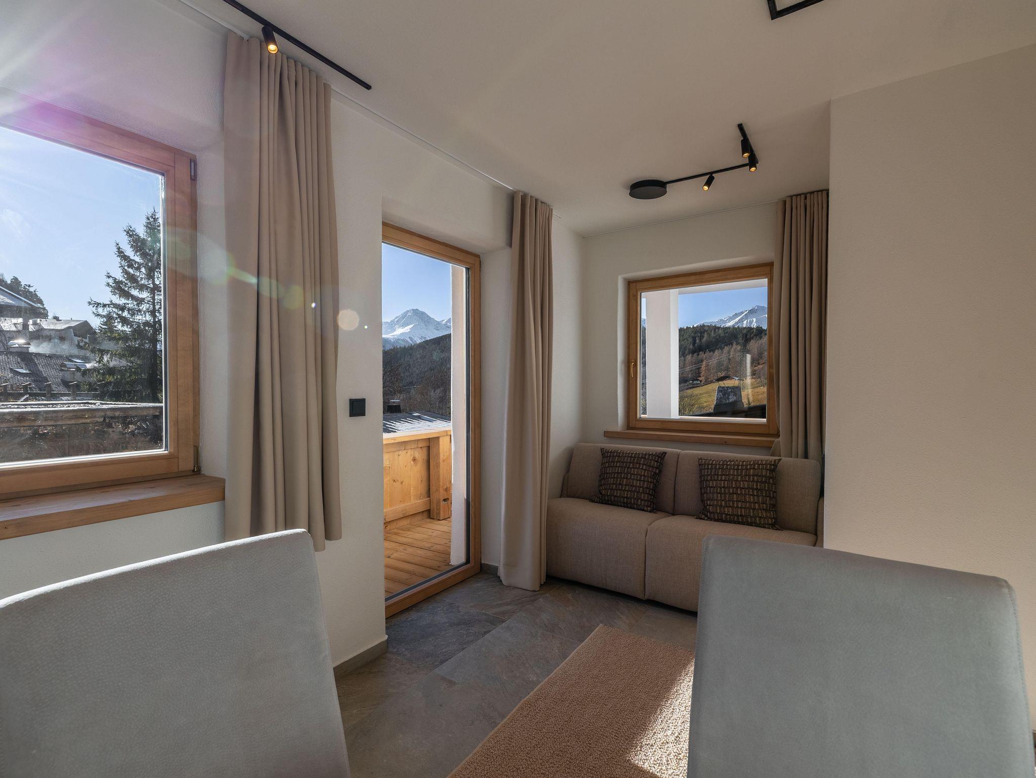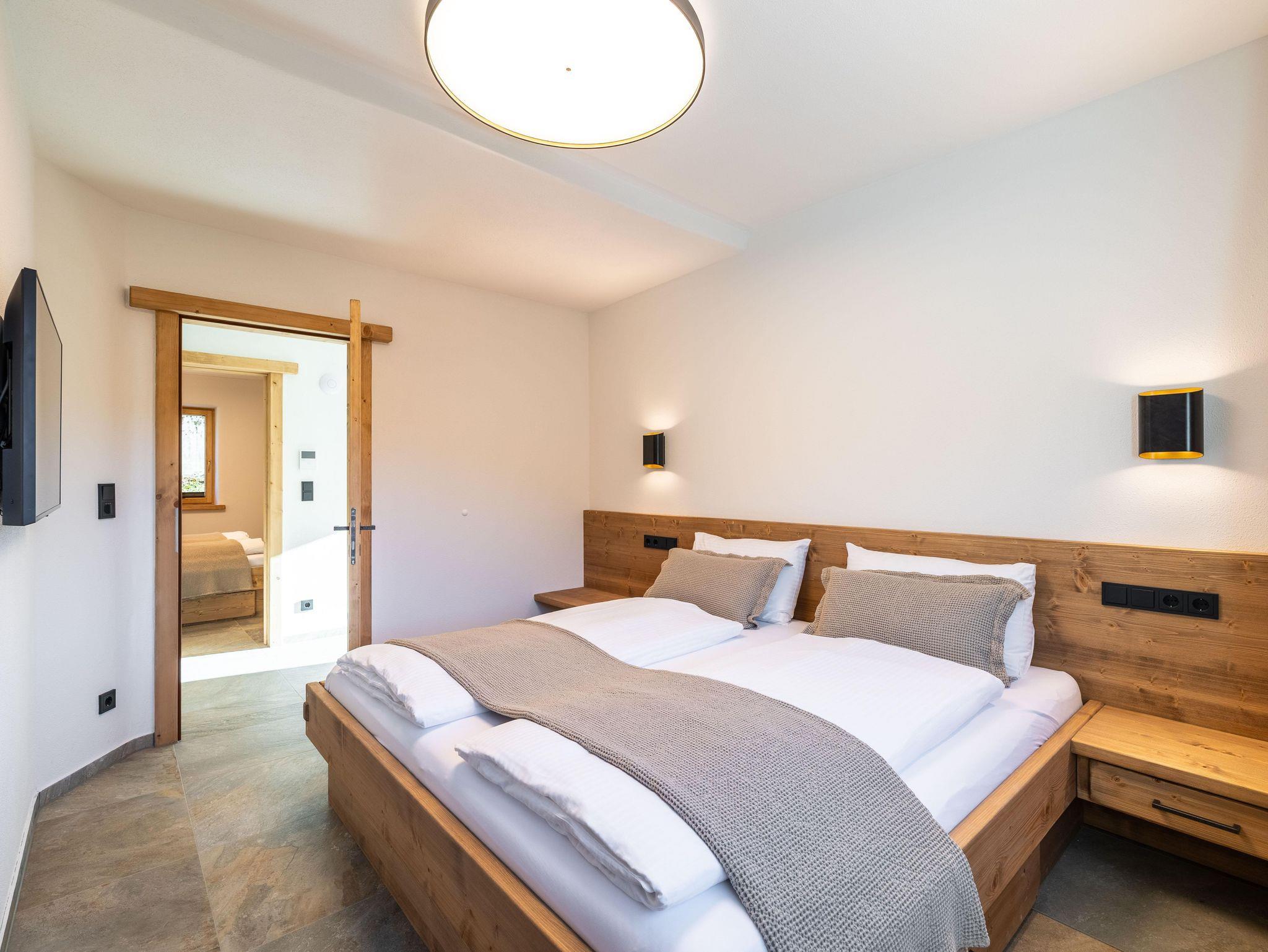 Dieses stilvoll eingerichtete Apartment im ersten Stock bietet auf 60 m² Platz für bis zu sechs Personen. Es überzeugt mit modernen Möbeln, Balkon, zwei Schlafzimmern mit Doppelbetten, einem Bad und zwei Schlafmöglichkeiten auf der Couch. Die ruhige Lage am Ortsrand ermöglicht Naturerlebnisse direkt vor der Tür und bietet Komfort, Design und echtes Alpenflair.