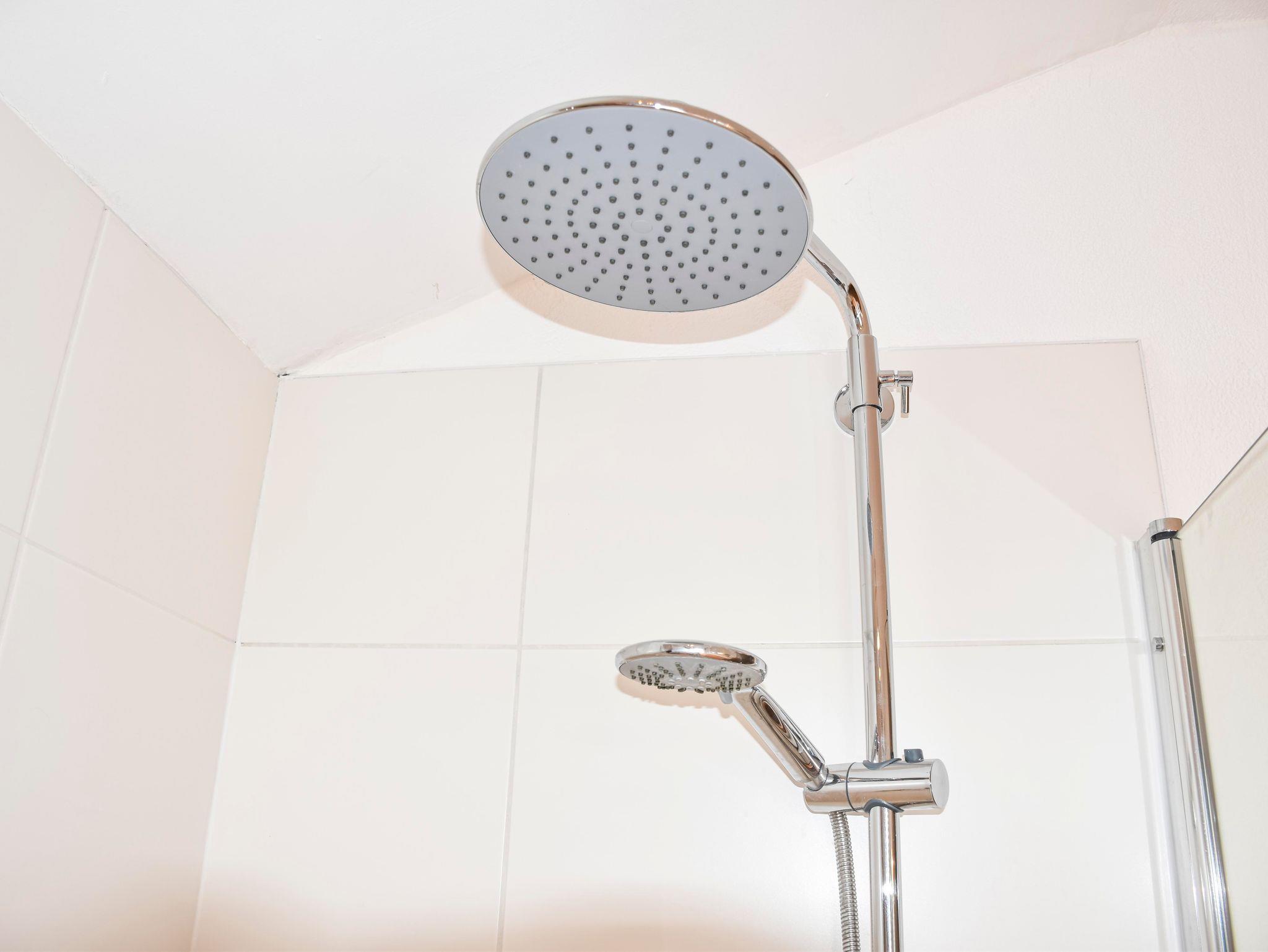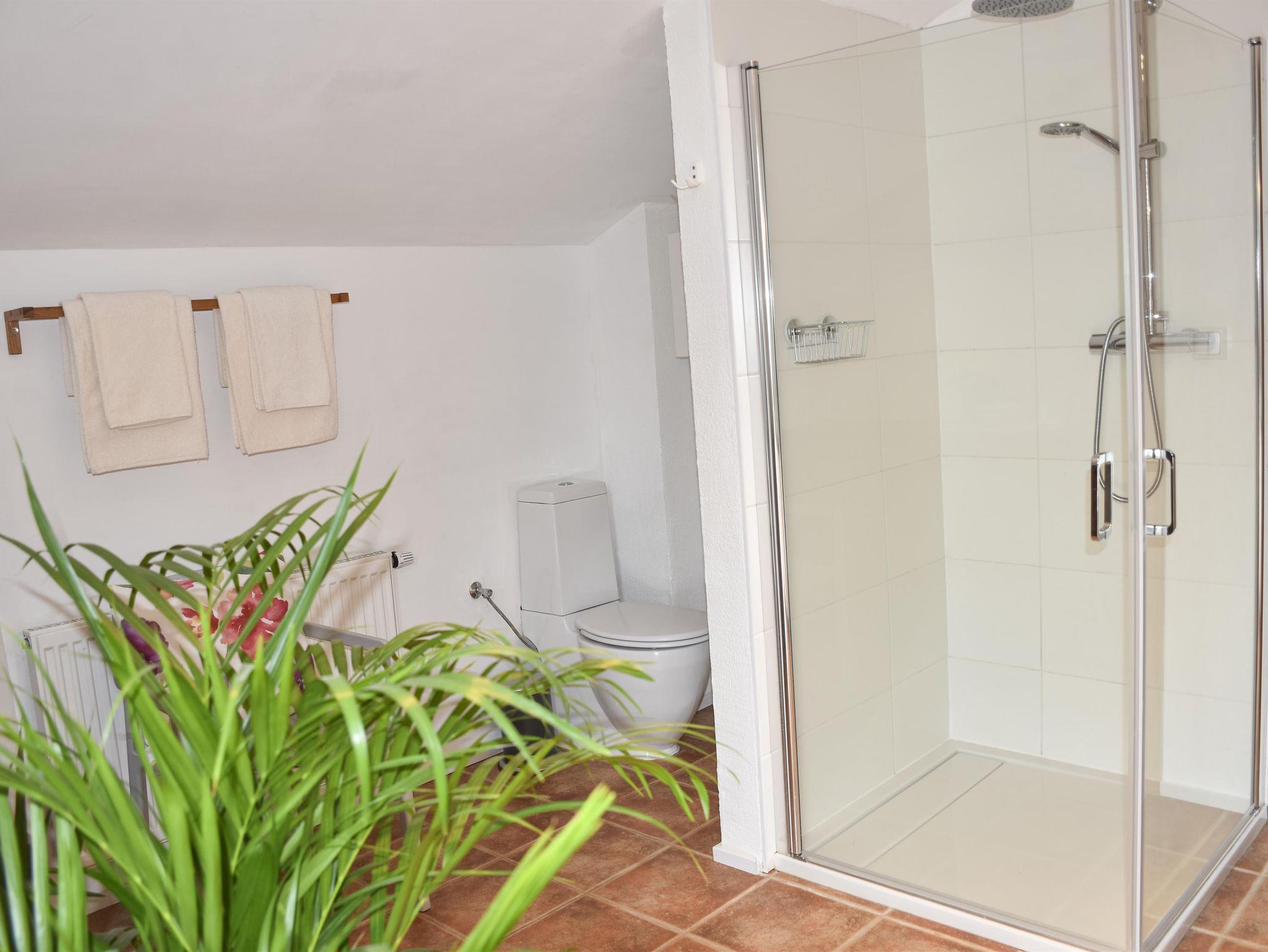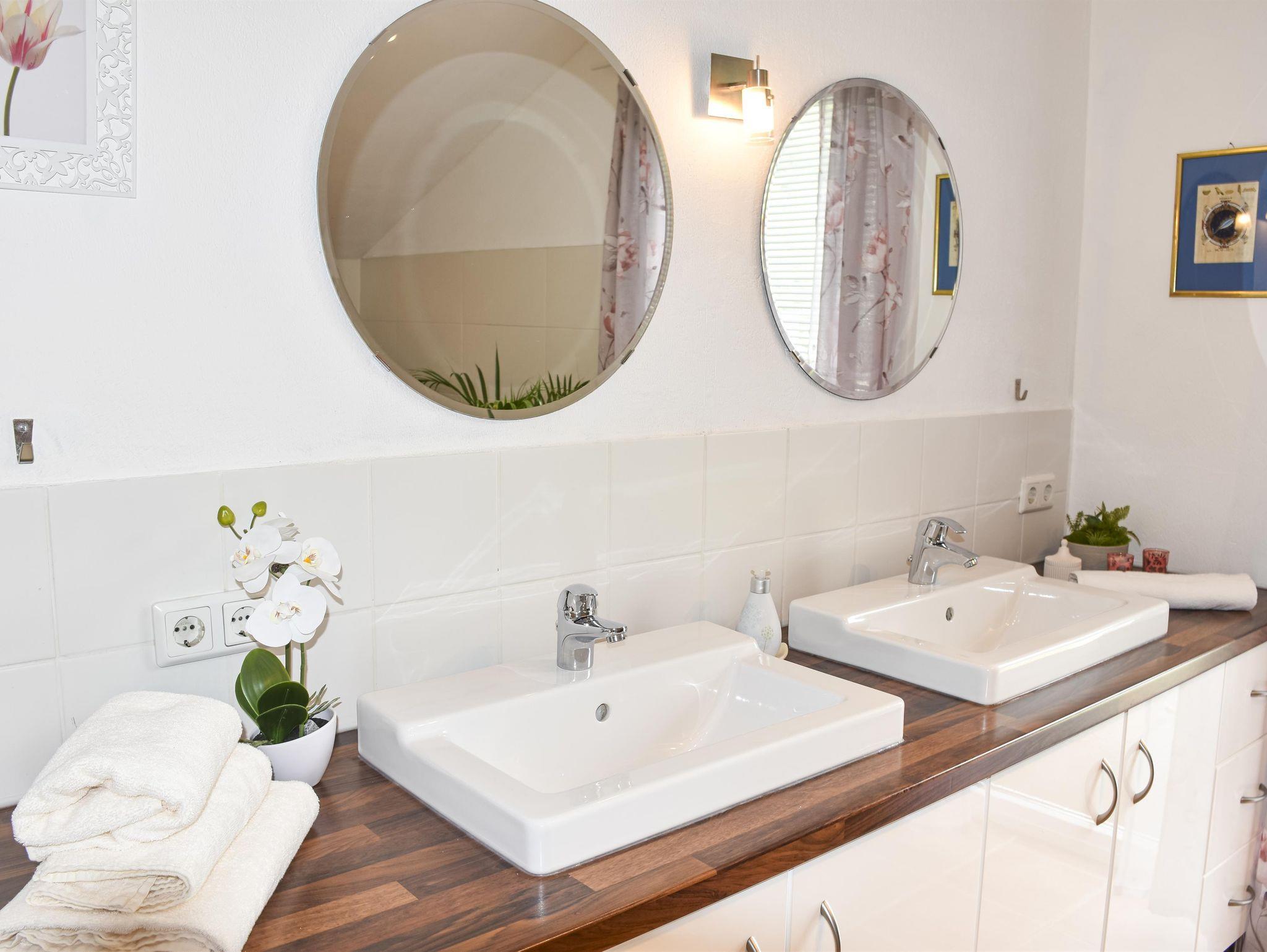 Badezimmer: WC, 2 Waschbecken, Duschkabine mit Regenduschkopf