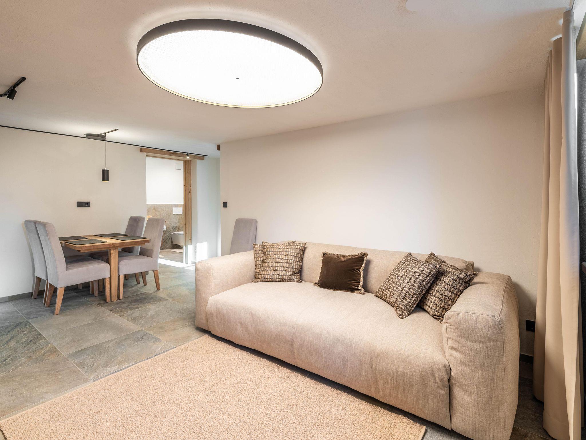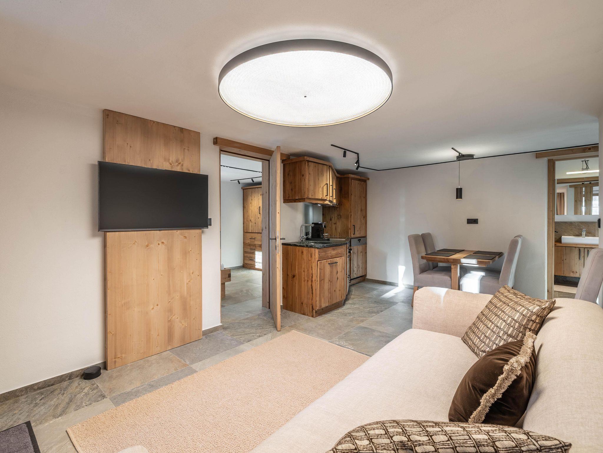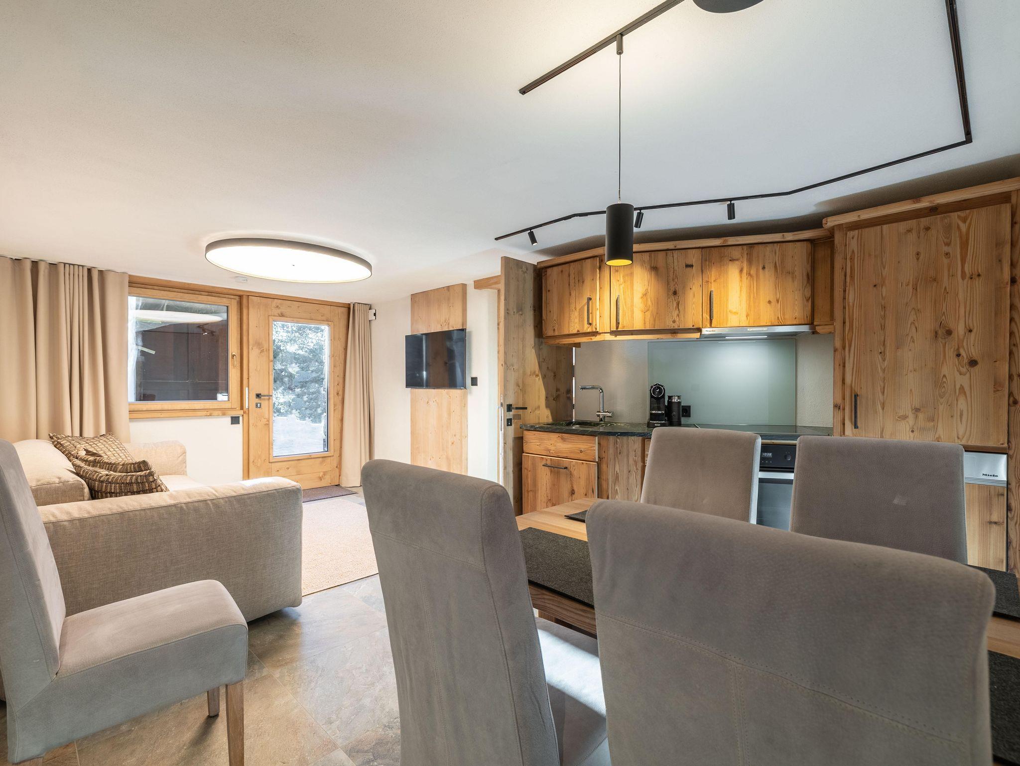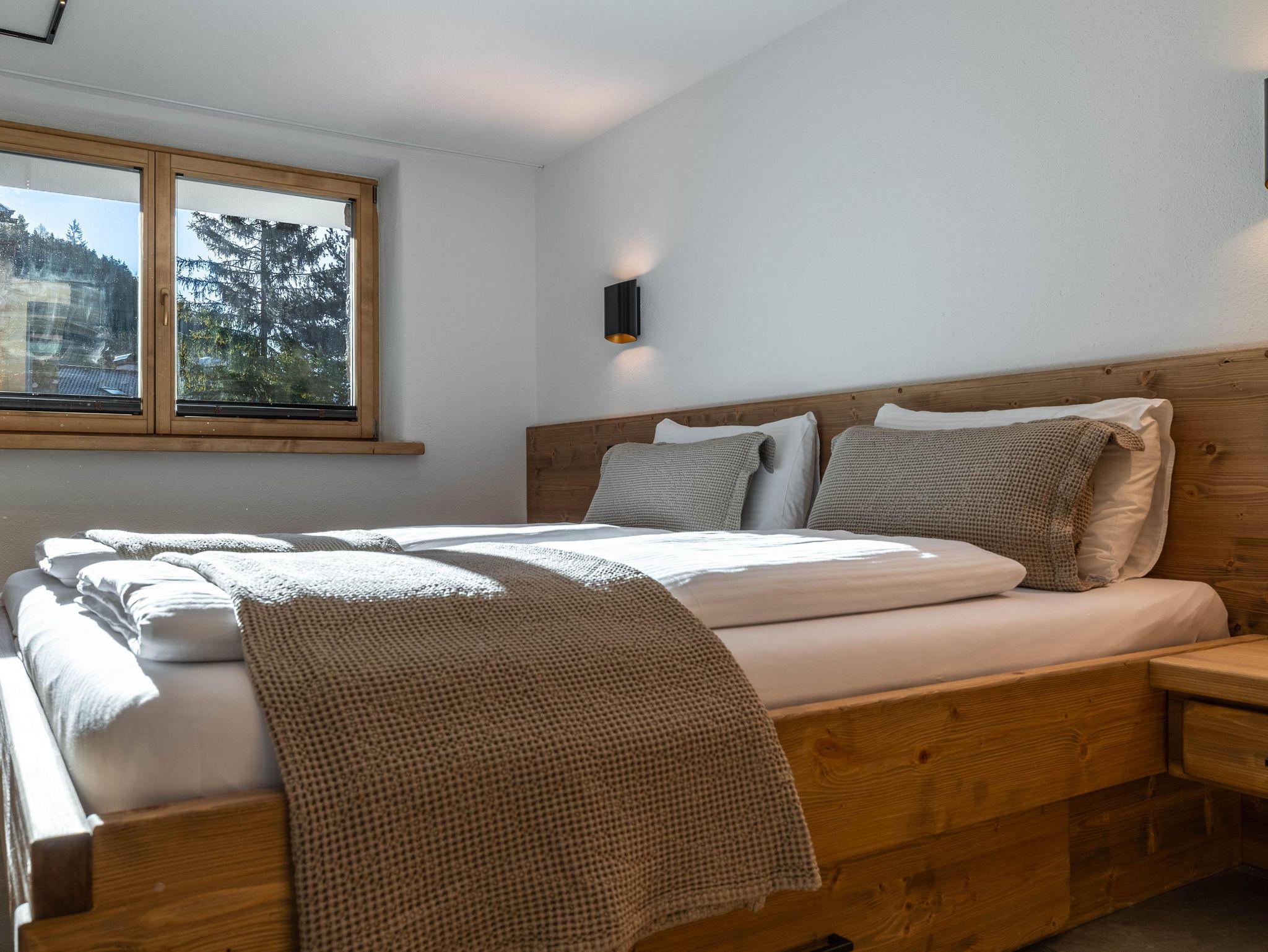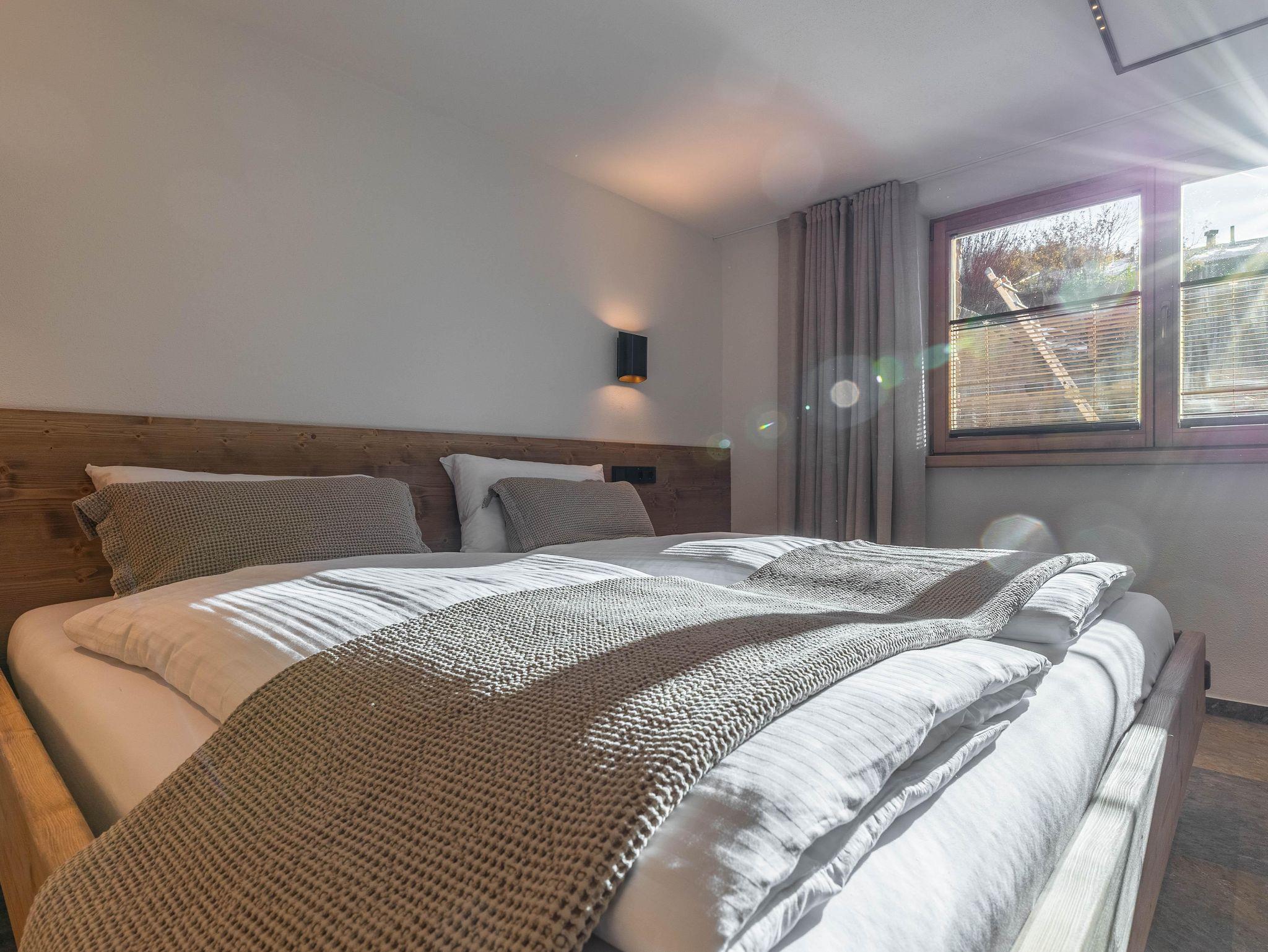 Dieses stilvoll eingerichtete Apartment im Erdgeschoss bietet auf 55 m² Platz für bis zu fünf Personen. Es überzeugt mit modernen Möbeln, zwei Schlafzimmern mit Doppelbetten, einem Bad und einer Schlafmöglichkeit auf der Couch (oder 2 Kinder). Die ruhige Lage am Ortsrand ermöglicht Naturerlebnisse direkt vor der Tür und bietet Komfort, Design und echtes Alpenflair.