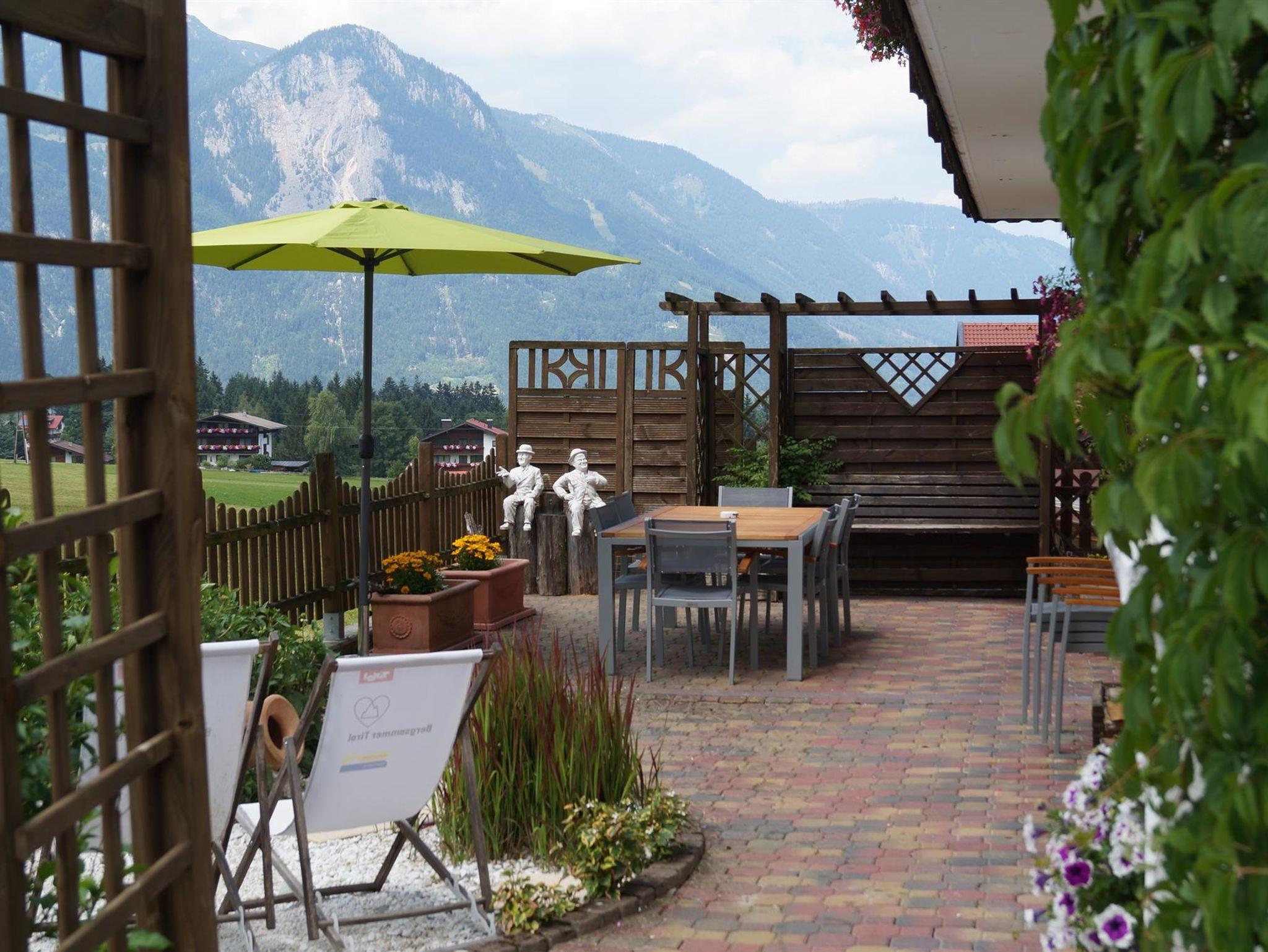 Die private eigene Terrasse mit Sitzmöbeln, großer Sonnenliege, Weber-Grill ... und einem phantastischem Blick auf die Bergwelt mit absoluter Ruhe sind für eine erholsamen Urlaub einfach perfekt.