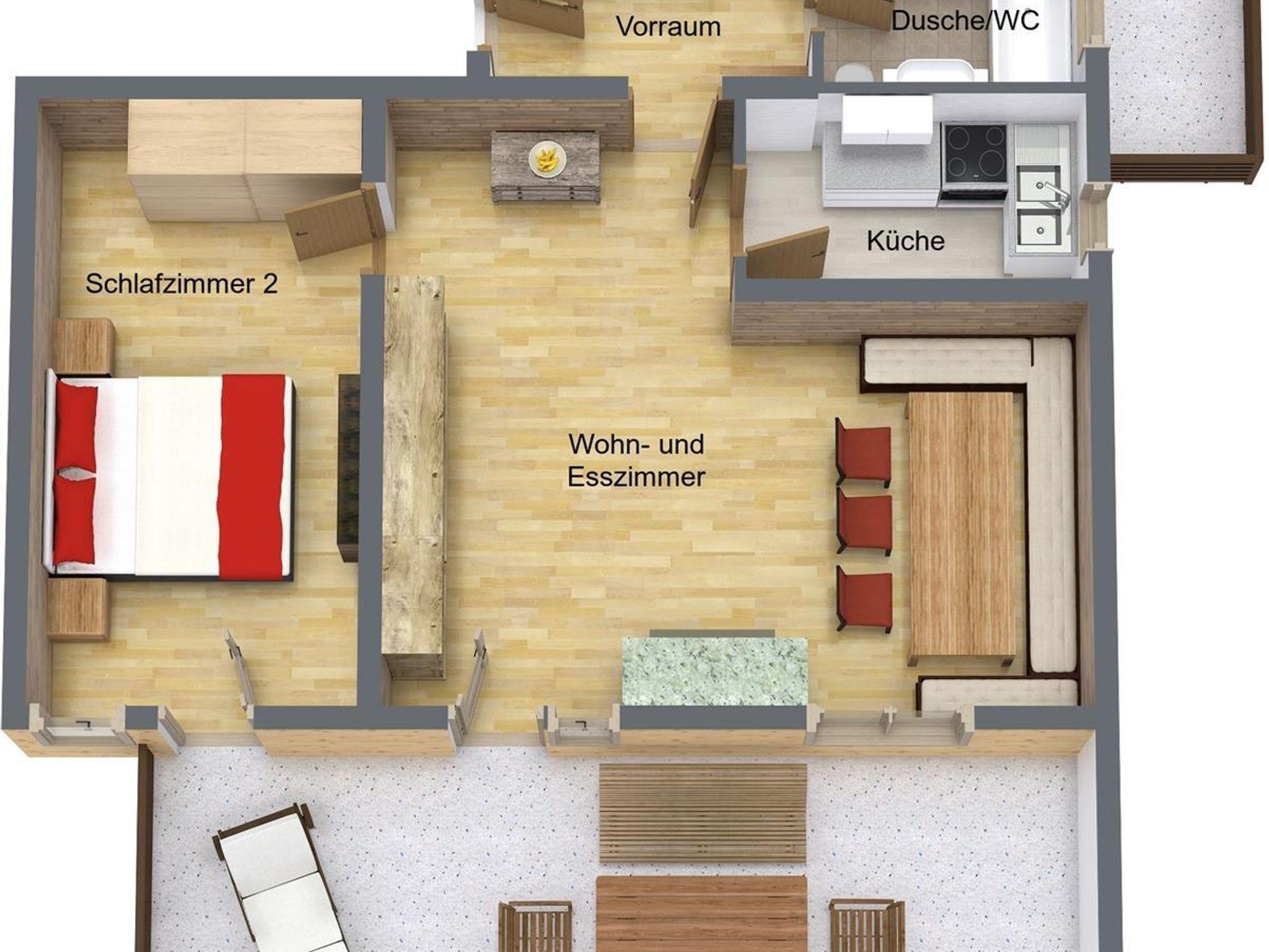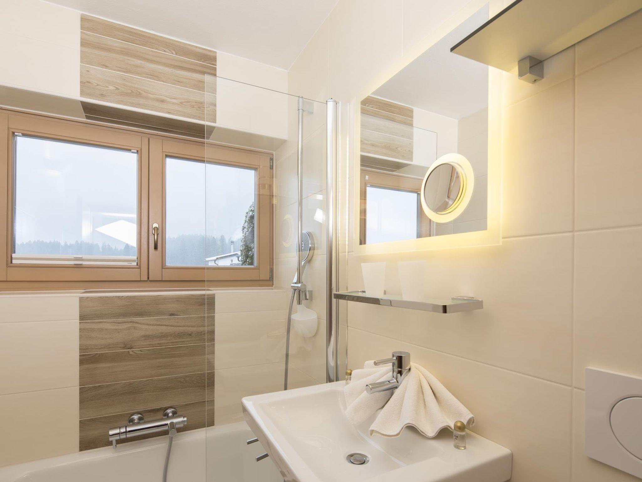 Die Familiensuite Alpenchalet ist mit 65 m2 Wohnfläche großzügig gestaltet und überzeugt mit einem besonders gemütlichen Ambiente sowie einer hochwertigen Ausstattung im alpinen Chalet-Stil. Die Suite verfügt über eine große mit Zirbenholz getäfelte Bauernstube mit Kachelofen und Esstisch sowie zwei Schlafzimmer für bis zu fünf Personen (1 Schlafzimmer mit einem Boxspring-Doppelbett und einem zusätzlichen Einzelbett sowie 1 Schlafzimmer mit einem Boxspring Doppelbett). Bei unseren Gästen besonders beliebt sind die große südseitige Terrasse und die zwei Balkone. In der Familiensuite Alpenchalet kann nach Rückfrage maximal ein Zustellbett für eine weitere Person zum Preis von EUR 15,00 pro Übernachtung und ein Babybett (kostenfrei für Kinder bis 2 Jahre) platziert werden.