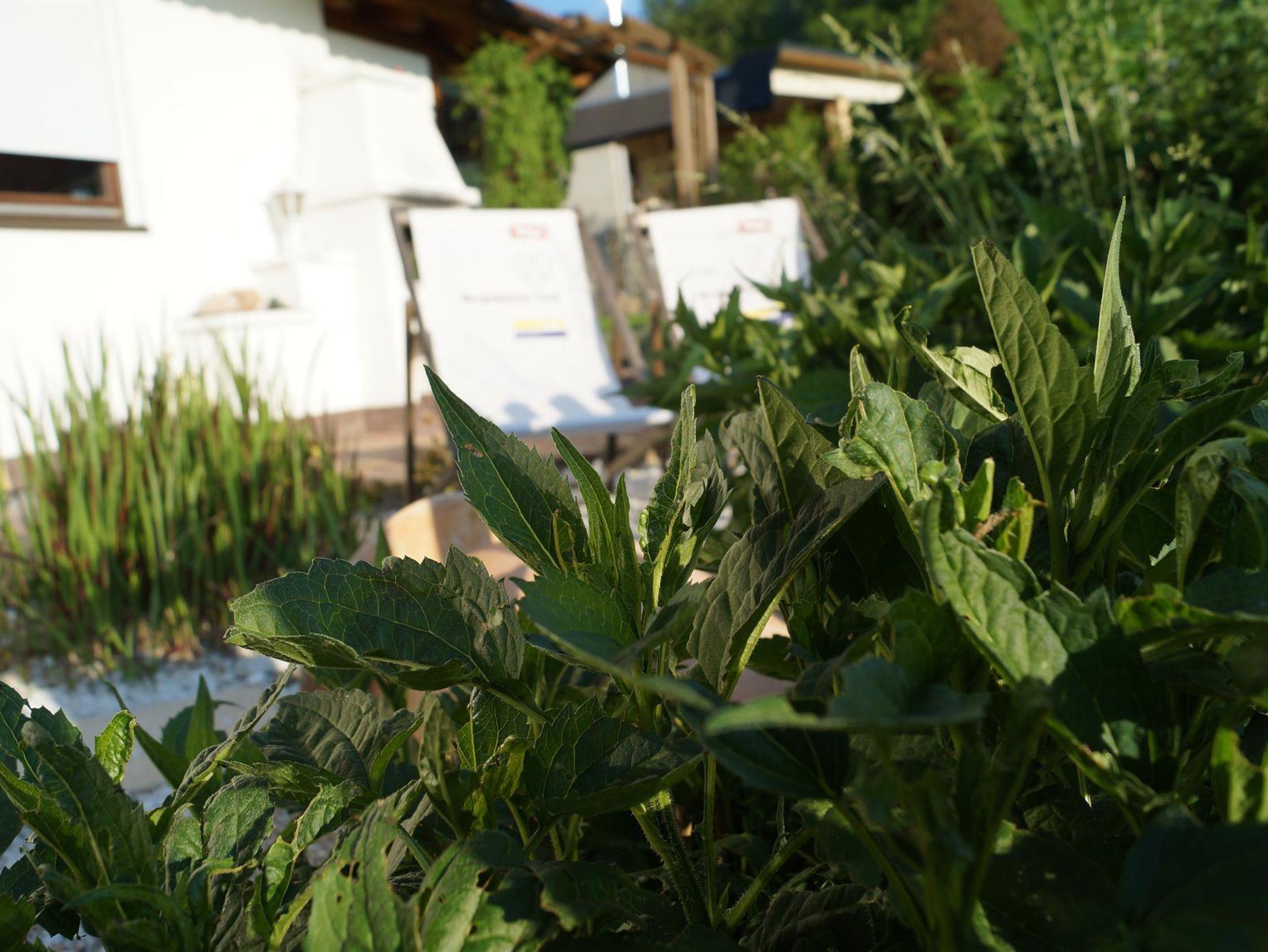 In unserem bunt blühenden Garten finden sich nette Plätzchen zum Sitzen und Genießen, zum Sonnenliegen - umrahmt von einem einzigartigen Panorama.