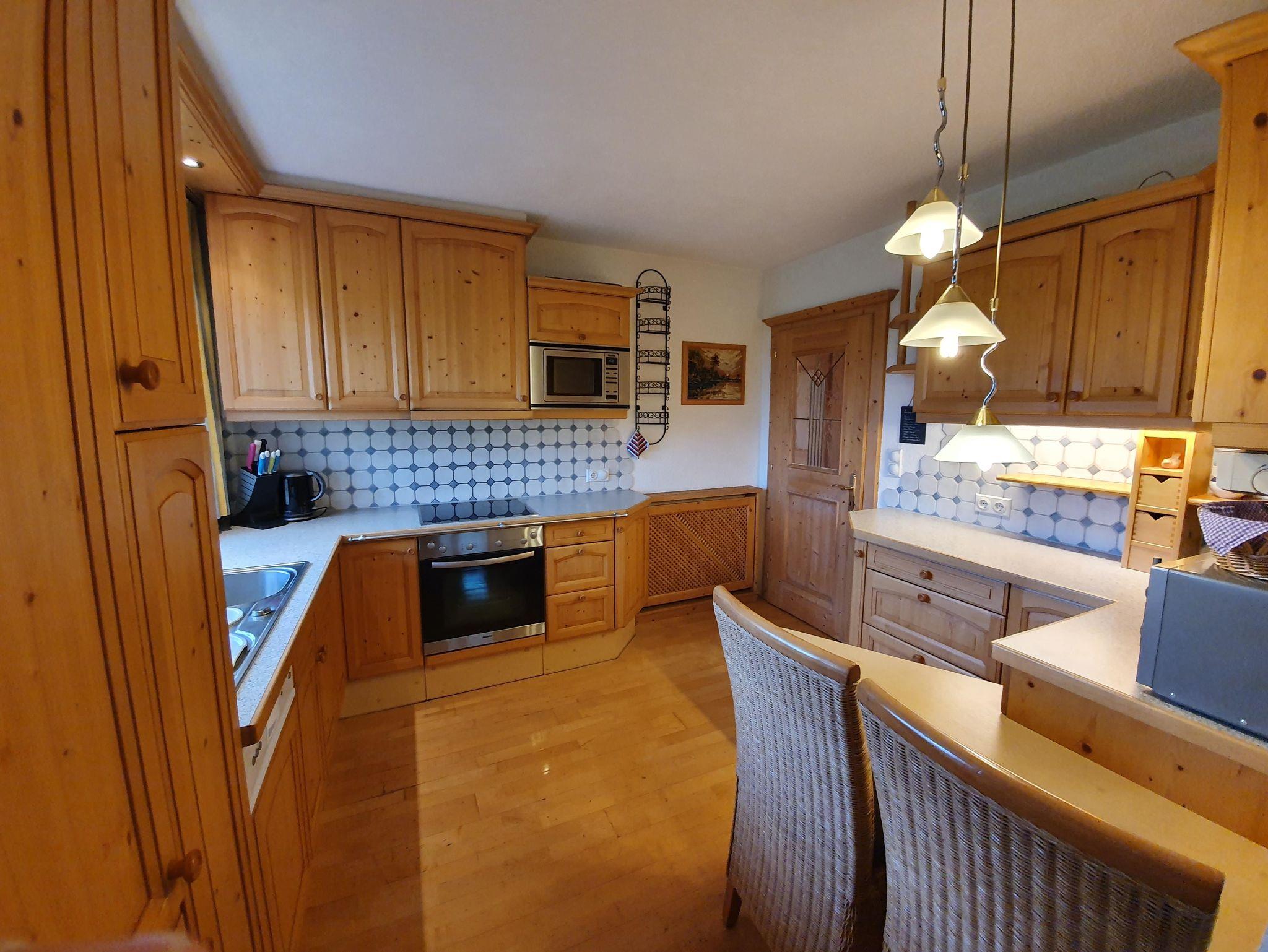 Die Küche ist sehr modern und mit top Geräten ausgestattet. Großer Kühlschrank mit Gefrierschubladen, Ceranfeld, Spülmaschine, Backofen, Wasserkocher, Toaster, und eine Tchibo-Kapselkaffeemaschine