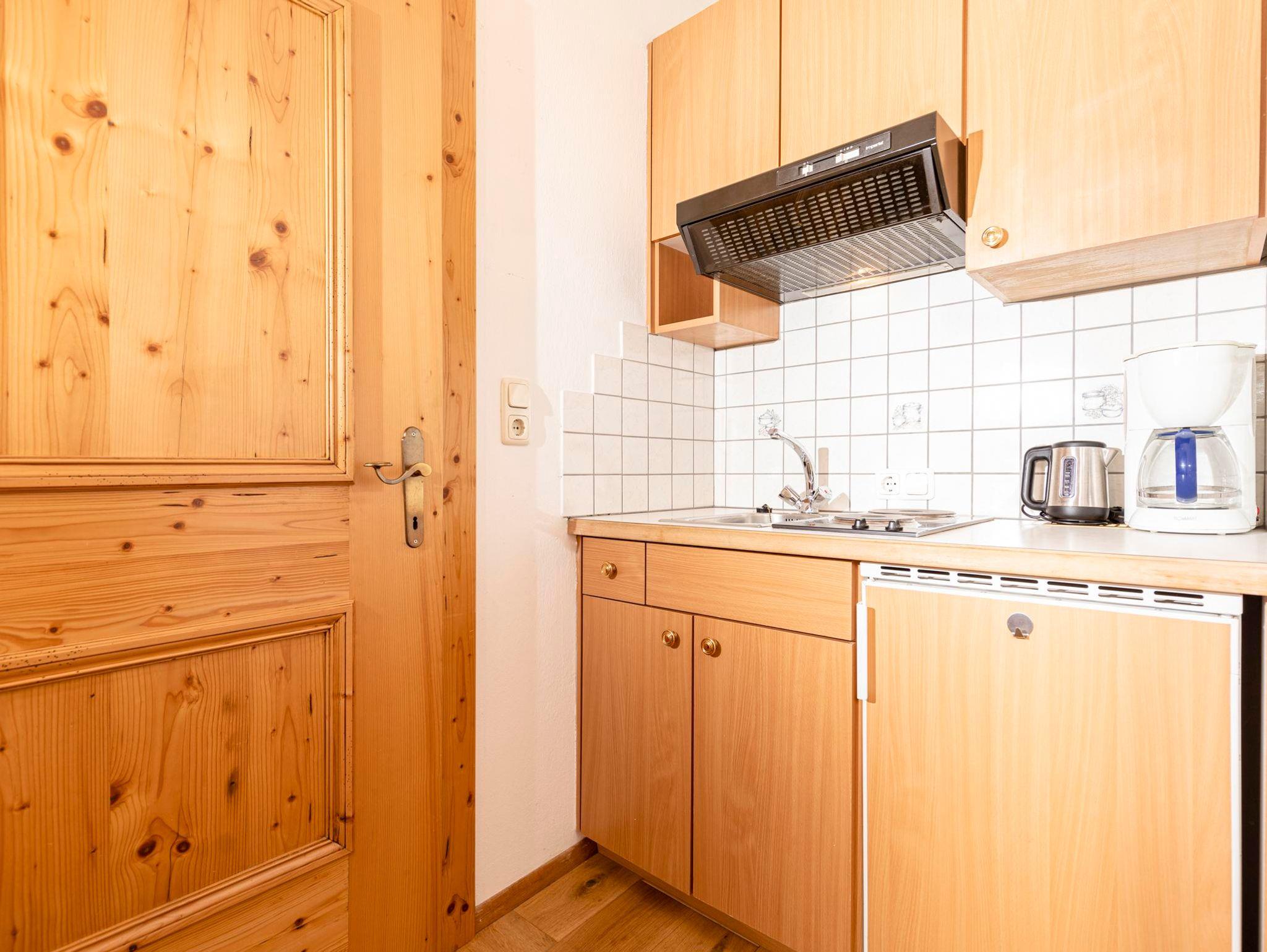 Die Ferienwohnung liegt im 3. Obergeschoß mit Zugang zum Balkon und umfasst einen Schlaf- und Wohnraum, eine Kochnische, ein Badezimmer mit Dusche und ein separates WC.