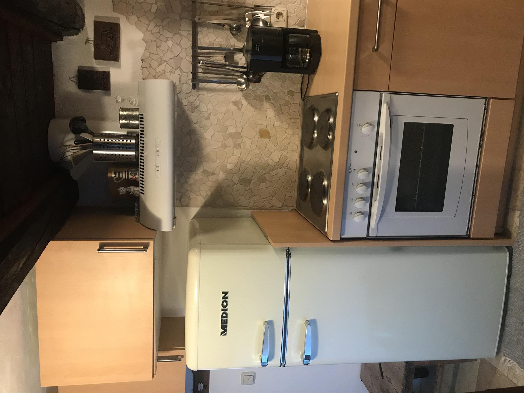 Das Haus verfügt über zwei Schlafzimmer für jeweils zwei Personen, einem Bad mit Dusche, eine gemütliche Stube mit Kachelofen und eine voll ausgestattete Küche. Ein Kühlschrank/Gefrierschrank, ein Backofen, ein Herd, ein Toaster, ein Wasserkocher und eine Kaffeemaschine sind ebenfalls vorhanden.