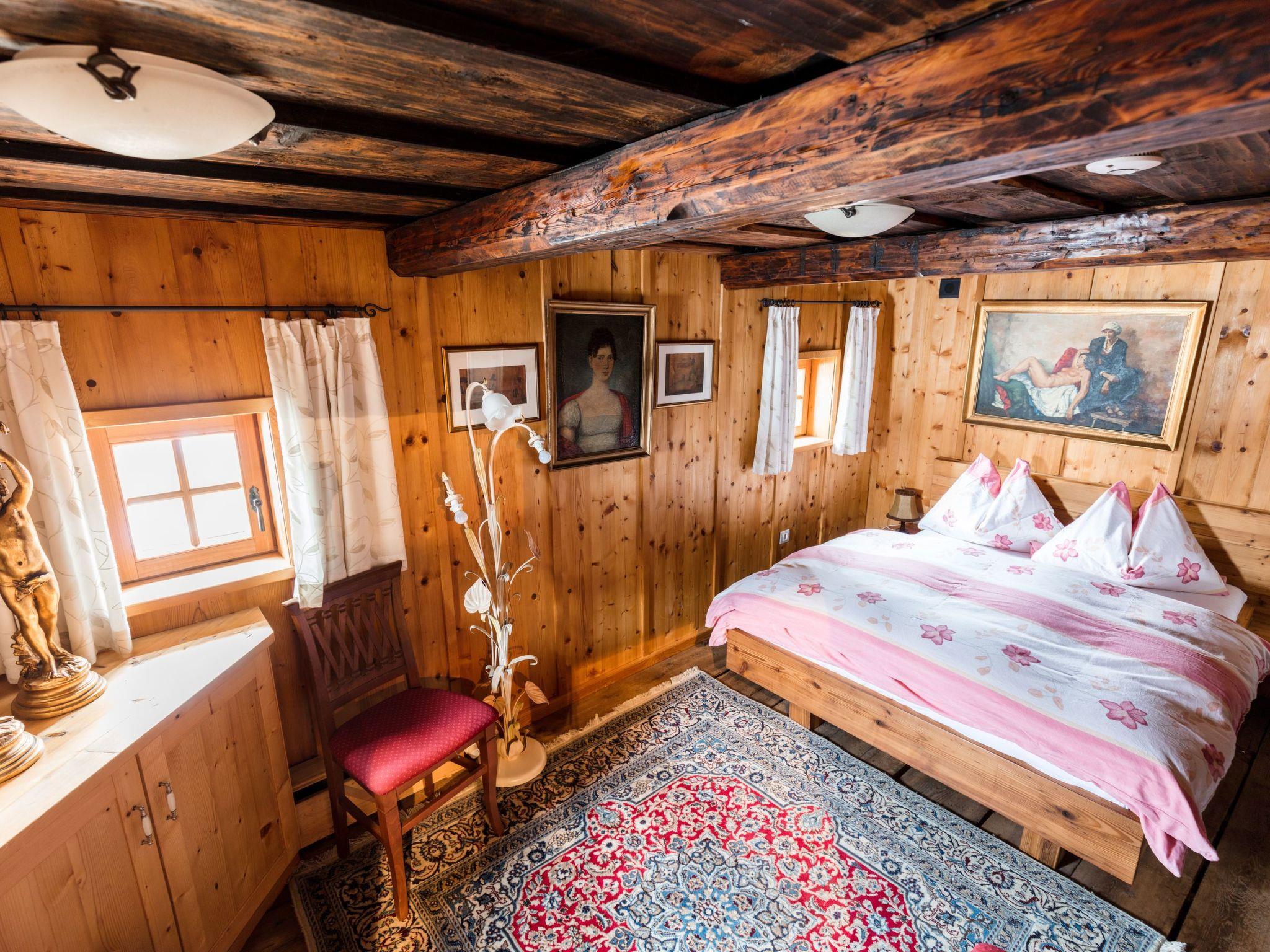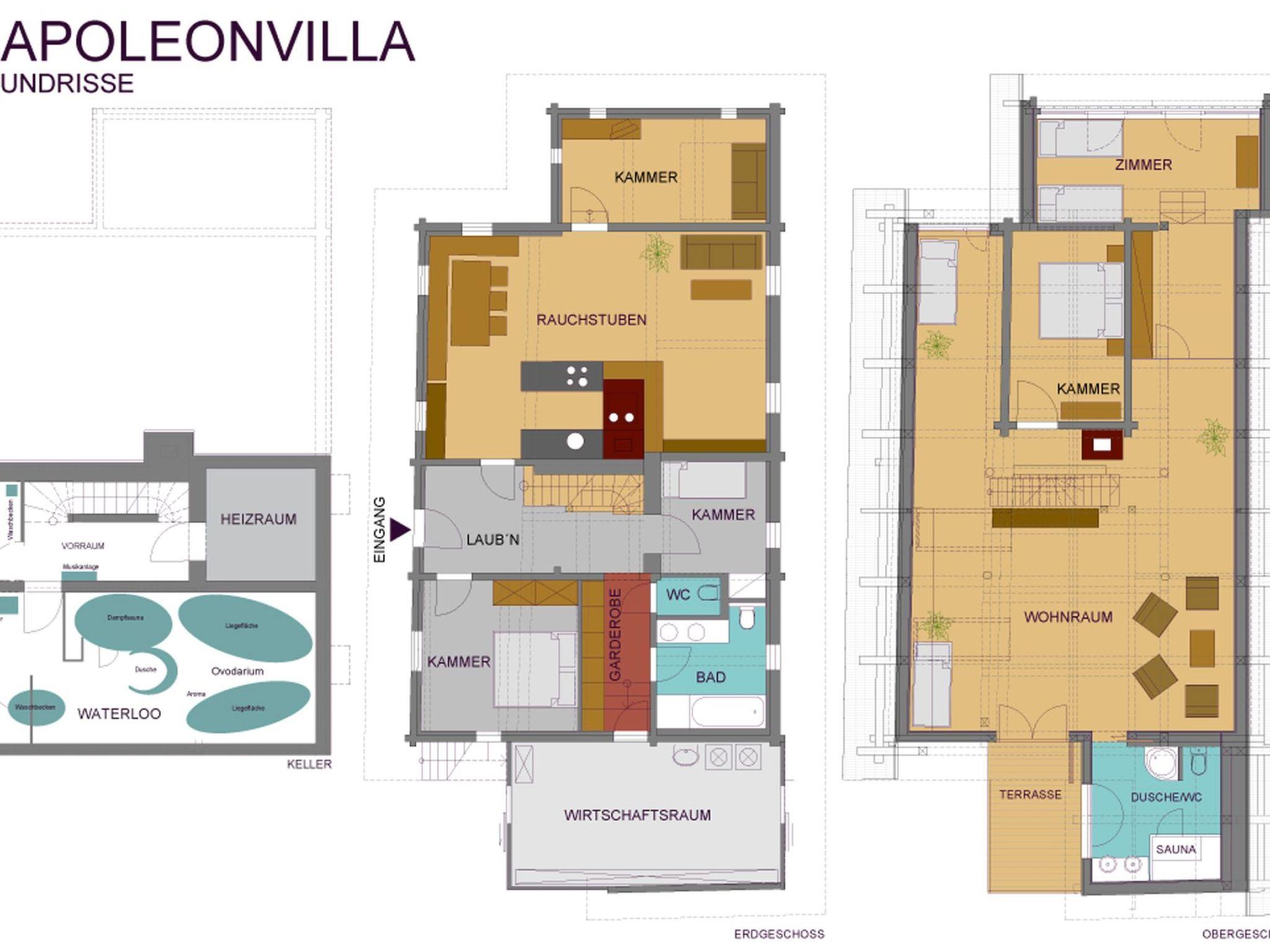 It can accommodate eight to 14 people (in seven spacious rooms plus adjoining rooms on two floors and the 'Waterloo' relaxation area in the basement). The house inspires visitors and guests alike with its history and authenticity. The centuries-old history of the Katsch Valley has been captured and preserved here, but by no means without sacrificing comfort. In addition to the original fireplace (Rauchkuchl), gnarled staircases, creaky doors and cosy bedrooms, guests can count on state-of-the-art bathrooms, sauna, kitchen, satellite TV and networking. The lovingly renovated and authentically furnished house includes an original smoking parlour, a granary adapted into a Zen room, stylish transition rooms and a library where you can retreat at any time, as well as a wellness zone for relaxation. The layout is as follows: Upper floor for four to ten people with (approx. 100 m²) bridal room (former granary), panorama room (former hay barn) with two beds each, spacious attic room (40 m2) as a relaxation room with gallery and underroof for additional sleeping accommodation, shower/WC, sauna, balcony, stereo system. Ground floor for four to six people (approx. 100 m²) sleeping chamber, children's room, creative parlour (formerly the "Auszüglerstube") with two beds each, bath/shower and WC and a separate WC, large wardrobe in the arbour, spacious living room (formerly the "Rauchstube" 42 m2) with library and satellite TV, fully equipped kitchen (dishwasher, microwave, electric cooker, fridge and freezer, crockery etc.), wireless internet. House entrance from the south side, as well as separate access via the utility room on the mountain side. Cellar rooms with (approx. 50 m²) wellness zone with steam sauna, experience shower, stone washbasin, WC, two ovodaria (relaxation zones, tepidarium) and separate laundry room (washing machine, tumble dryer, iron), cellar anteroom for drinks depot.