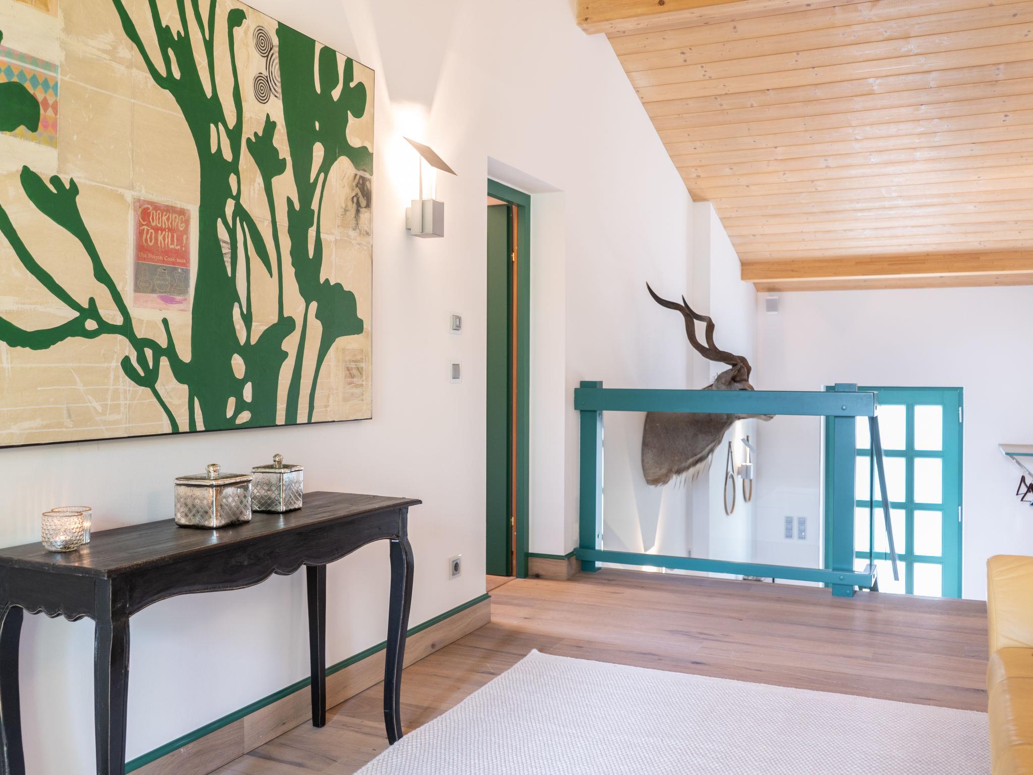 6-room house 200 m2 on 2 levels. Spacious and bright, very beautiful and tasteful furnishings: living/dining room with open-hearth fireplace, dining table, digital TV, international TV channels and hi-fi system. Exit to the garden. 1 double bedroom. 1 double bedroom. Exit to the terrace. Open kitchen (oven, 4 ceramic glass hob hotplates, toaster, kettle, microwave, freezer, electric coffee machine, Capsules for coffee machine (Nespresso) extra). Shower/WC. Heating. Upper floor: 1 double bedroom with bath/shower/WC. Exit to the balcony. 1 room with 2 sleeping facilities. 1 double bedroom with bath/WC. Exit to the balcony. Parquet floors. Comfortable furnishings in the country house style. Facilities: washing machine, sauna, children's high chair, baby cot for up to 2 year olds. Internet (WiFi, free). Please note: non-smoking house. Maximum 2 pets/ dogs allowed. Smoke alarm. The pool mentioned in the description is for private use. Sustainable energy concept (photovoltaics, regional heat, etc.). Maxi-Bar (selective drinks (fee according to consumption).