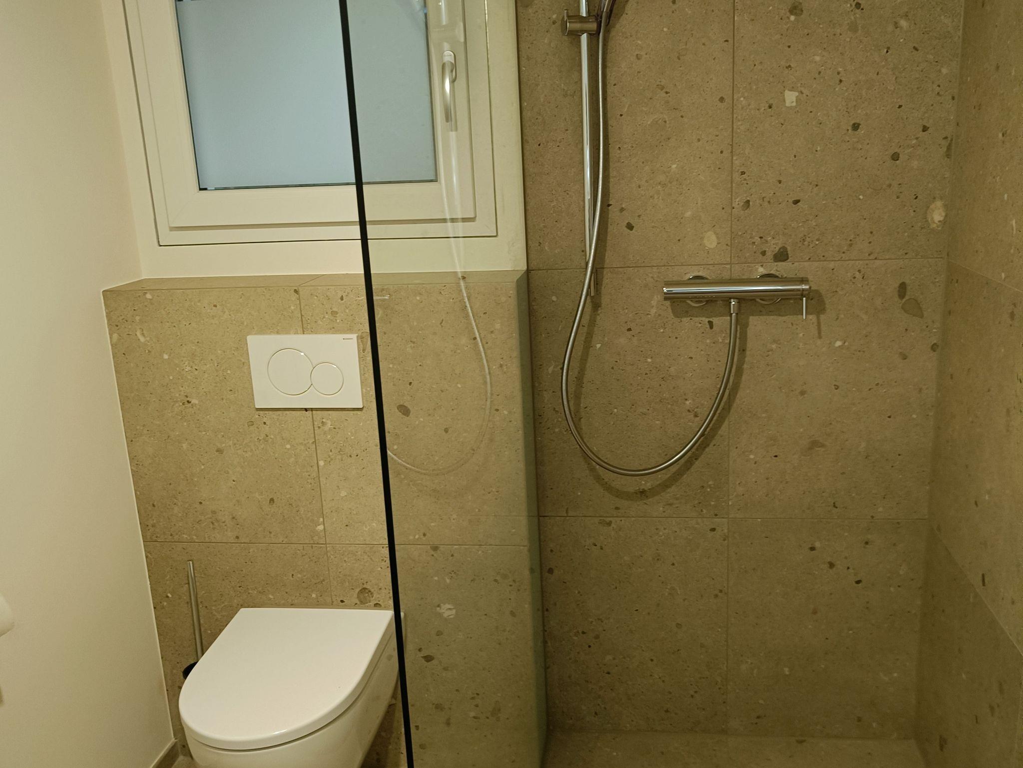 1 Badezimmer im EG: Ausstattung: Dusche, WC, Fön