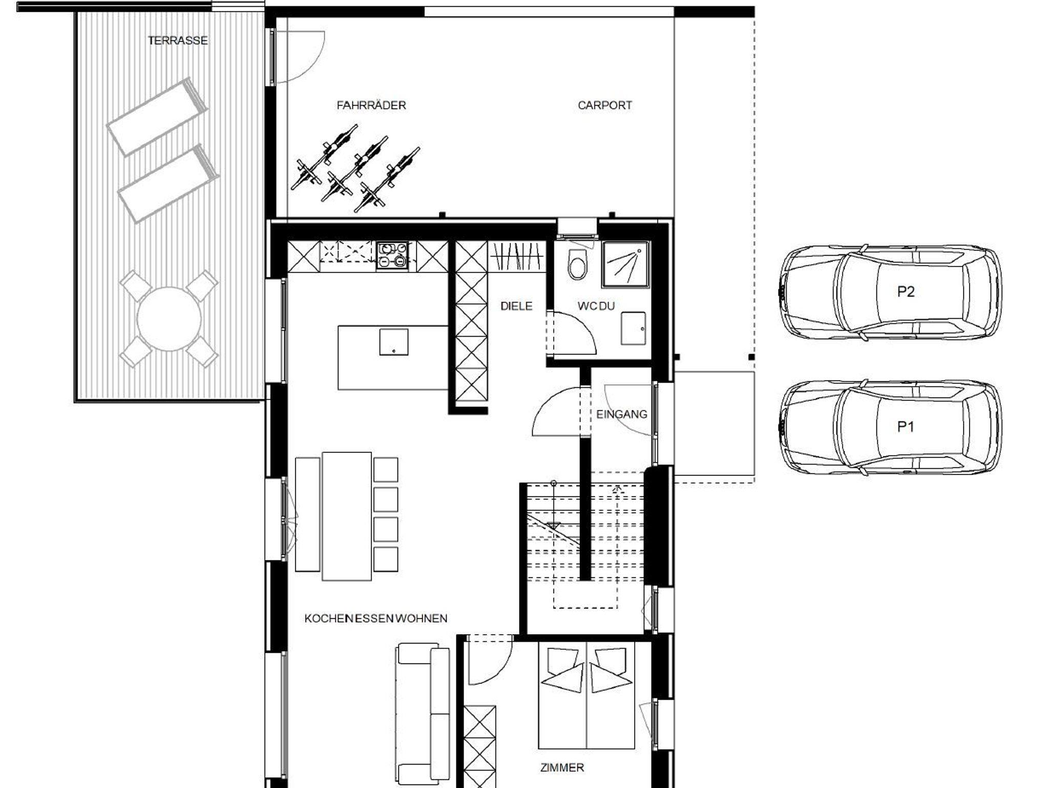 Ein eigener Parkplatz ist direkt am Haus vorhanden.