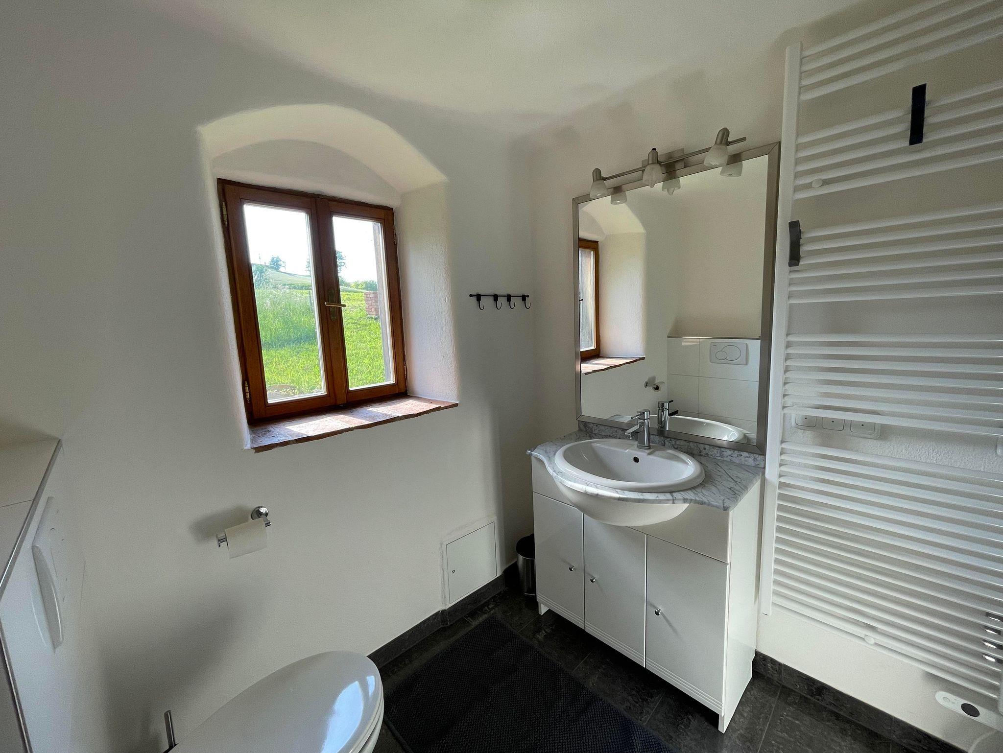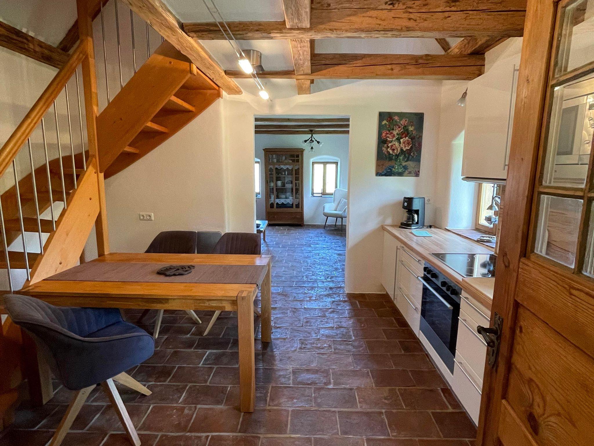 Im Haus finden Sie eine gut ausgestattete Küche, helles Bad, 2 WCs, Wohnzimmer und 2 Schlafräume unter dem Dach. Nichtraucherhaus. Ein schattiger, von Bäumen umgebener Garten mit Holzliege und eigenem Sitzplatz gehört Ihnen alleine. Eine alte Steinbank an der Hausmauer, Schwimmteich mit Holzsteg, Bocciabahn mit Sitzplatz und ein Lagerfeuerplatz laden zum Relaxen ein.