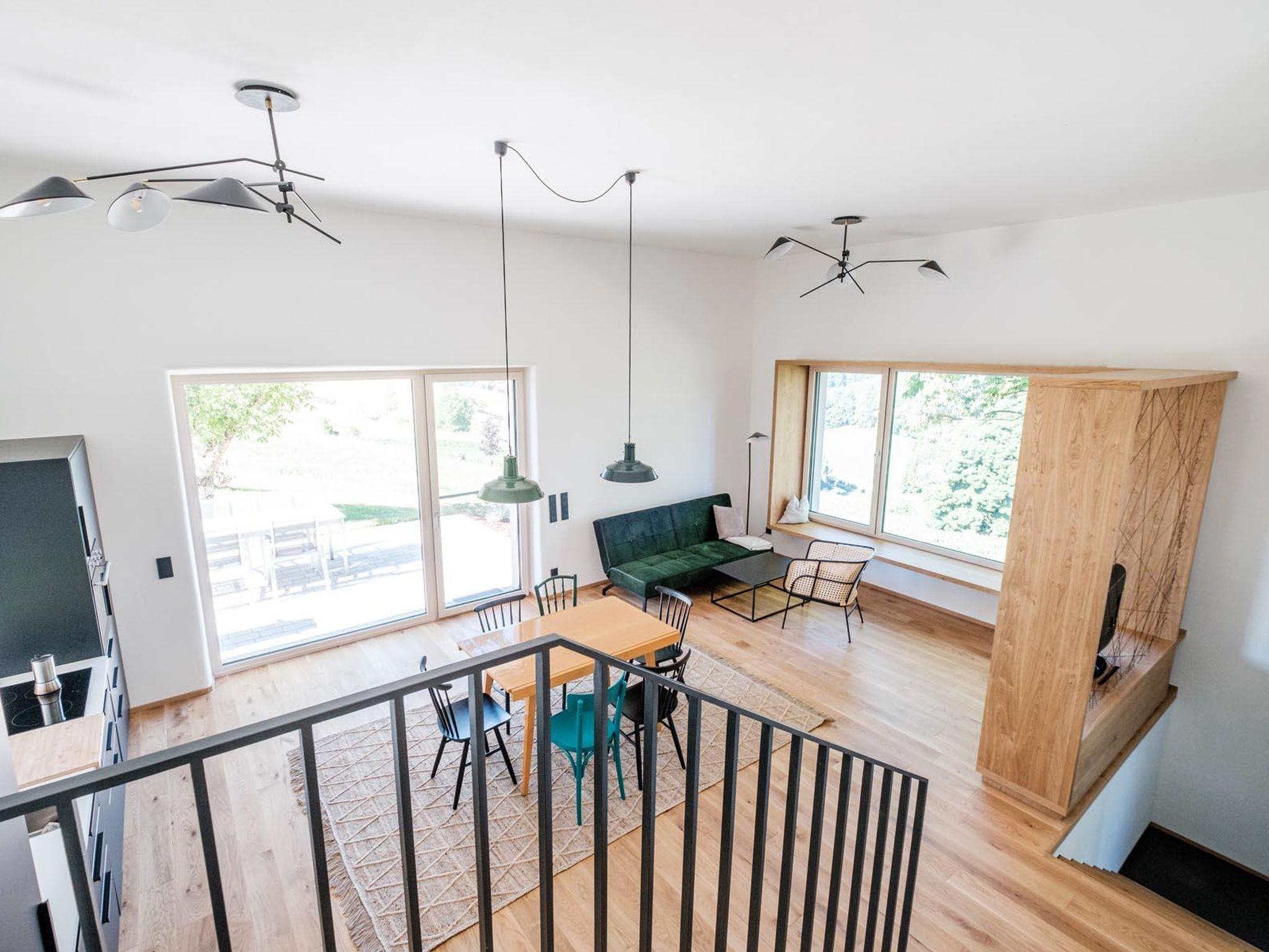 Das idyllische Häuschen wurde 2020/21 komplett um-, ausgebaut und renoviert, modern ausgestattet und mit viel Liebe zum Detail stilvoll eingerichtet. Auf 110 m² Wohnfläche finden bis zu 6 Personen Platz. Mit zwei Schlafzimmern, einer Schlafcouch im Wohnzimmer (inkl. TV), zwei Bädern, zwei Toiletten, einer voll ausgestatteten Küche und einer Sauna mit Ausblick bietet es flexiblen Raum für Familien, ausgelassene Ausflüge mit Freunden oder einfach ein großzügiges Wohlfühlreich für Paare. Nicht nur die vielen Glasfronten und die Sauna gewähren atemberaubende Ausblicke in die südoststeirische Hügellandschaft, auch die sonnigen Terrassen und der gemütliche Garten laden zum Verweilen im Grünen ein. Weiteren Komfort bieten ein Carport, freies WLAN, die Zirbensauna und der atmungsaktive Lehmputz, der für ein gesundes und besonders angenehmes Raumklima sorgt.