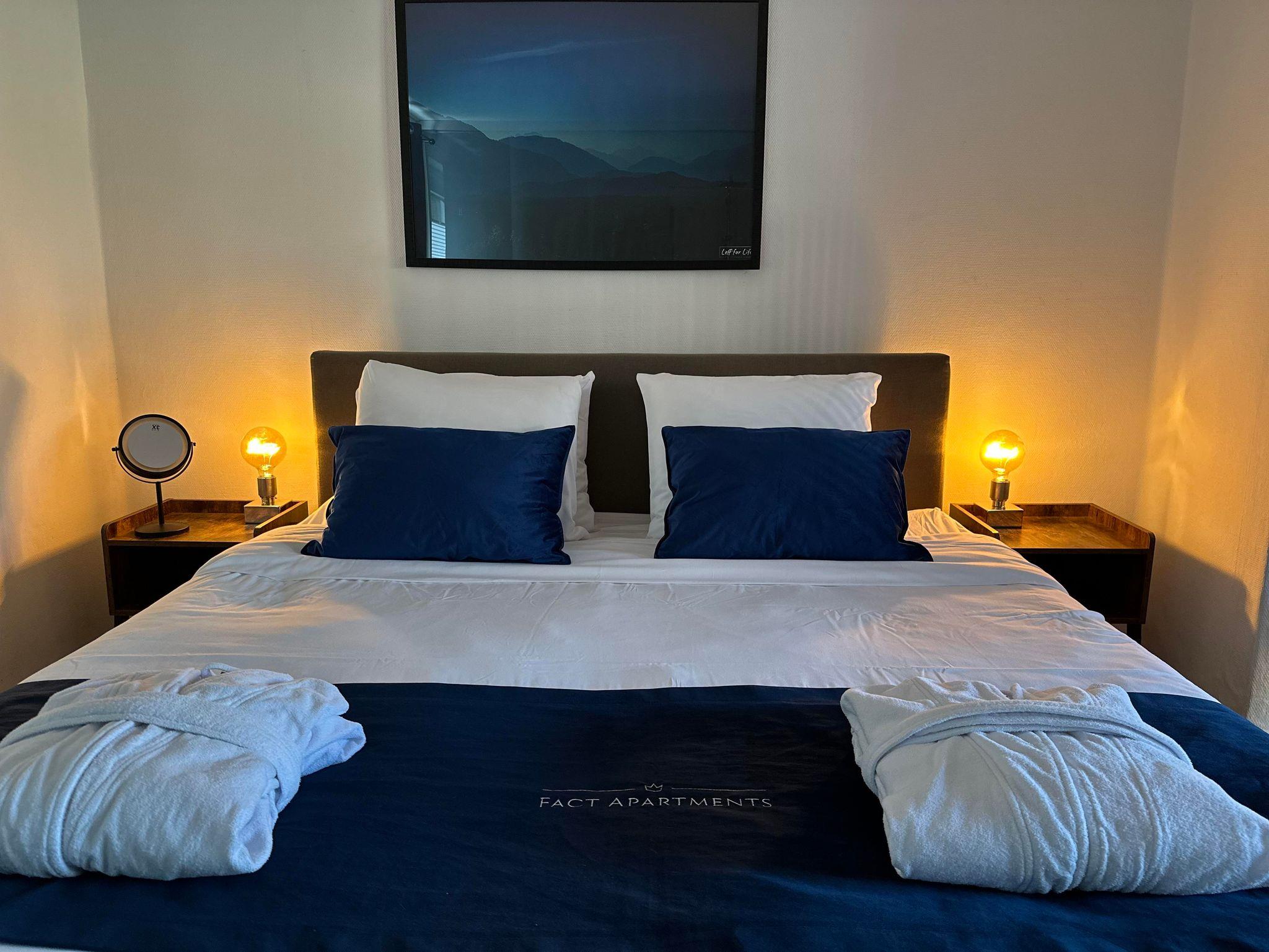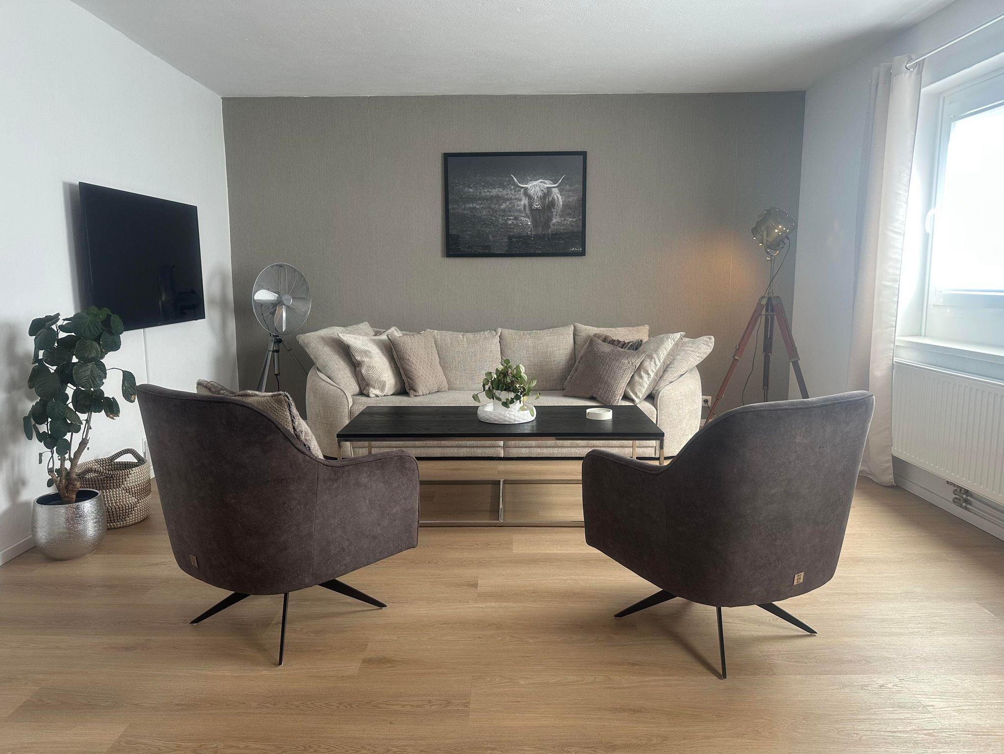 Von der zentralen Halle führt eine feste Treppe zu einer geräumigen 4-Personen-Wohnung mit einer großen Sitzecke und einer voll ausgestatteten Küche. Das Badezimmer und die Toilette sind separat. Das erste Schlafzimmer ist mit einem Doppel-Boxspringbett ausgestattet, im zweiten Schlafzimmer finden Sie zwei Einzelbetten, die auf Wunsch zusammengeschoben werden können.