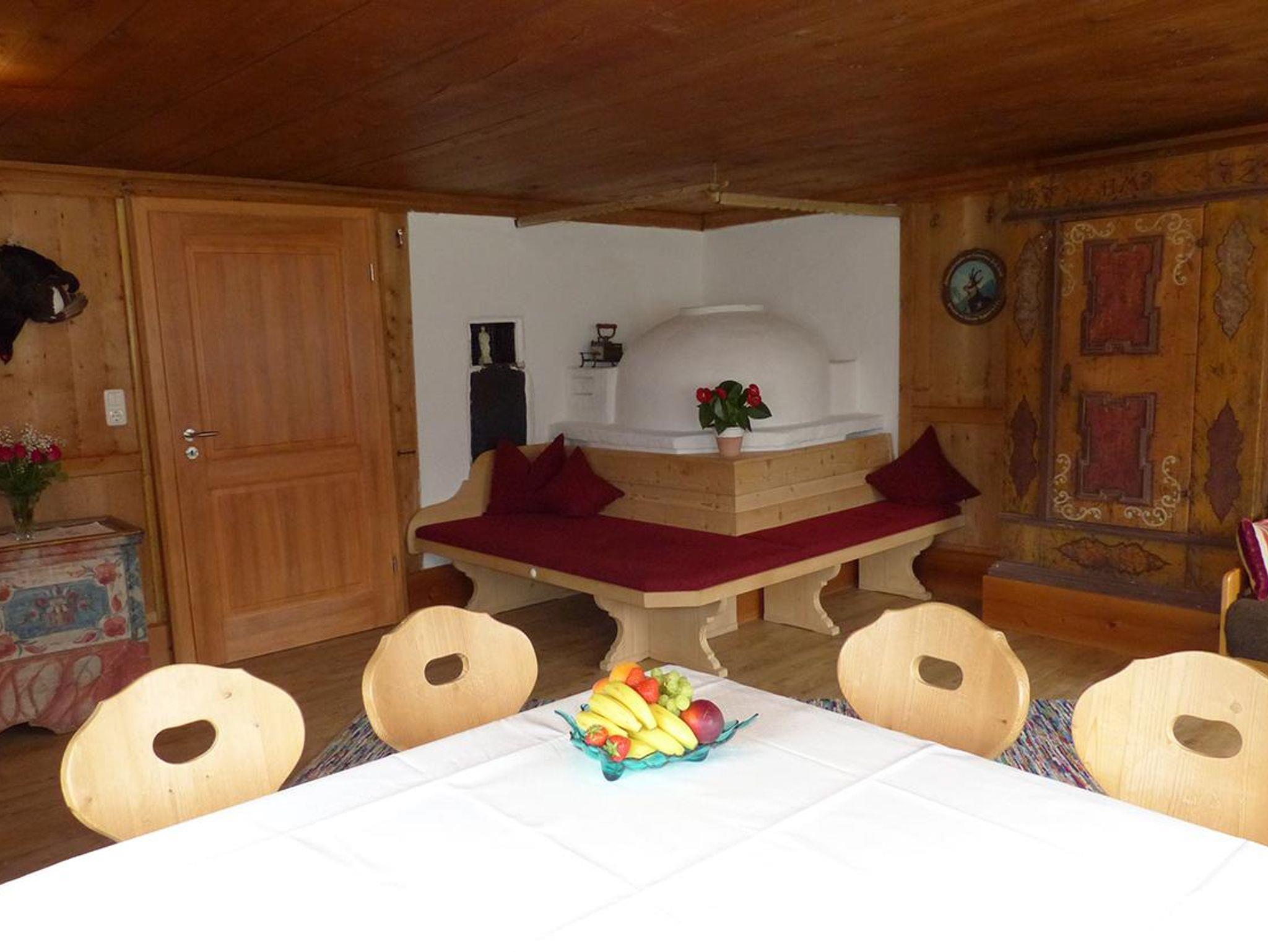 3 separate Schlafzimmer mit Doppelbetten, ein Zimmer + Etagenbett. Große WalserStuba mit Kachelofen. Vollständig eingerichtete Wohn-Küche mit Spülmaschine, kleine Speis. Essecke mit Ausgang zur Terrasse und Liegewiese, Badezimmer mit Wanne und befahrbarer Dusche, separates WC. W-LAN kostenlos.