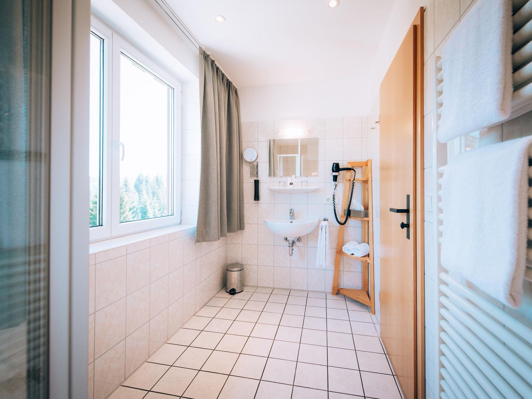 • Badezimmer mit Dusche/WC, Fön, Bademänteln & Pflegeprodukten