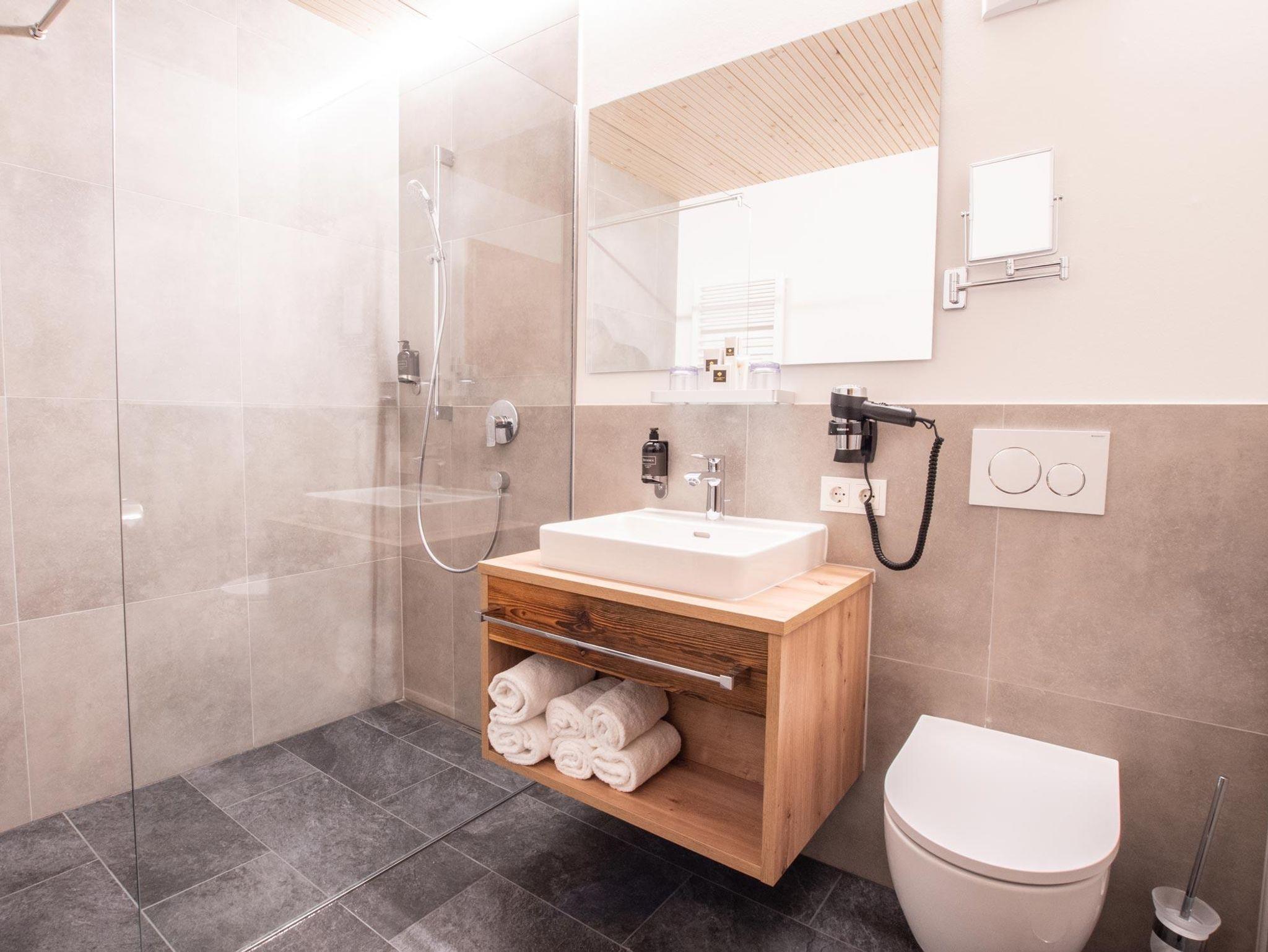 • Badezimmer mit Dusche/WC, Fön, Bademänteln & Pflegeprodukten