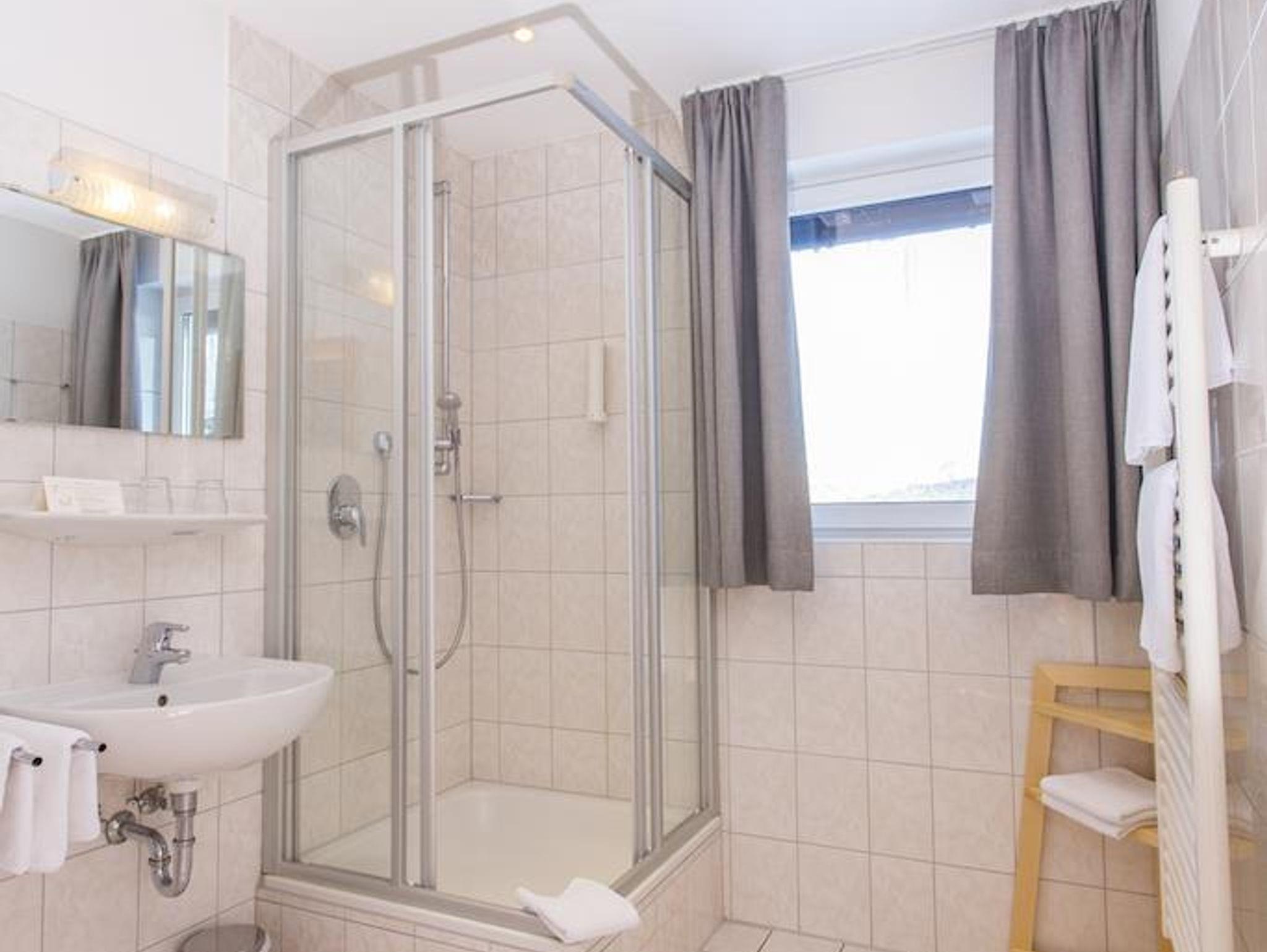 • Badezimmer mit Fenster, Dusche/WC, Fön, Bademänteln & Pflegeprodukten