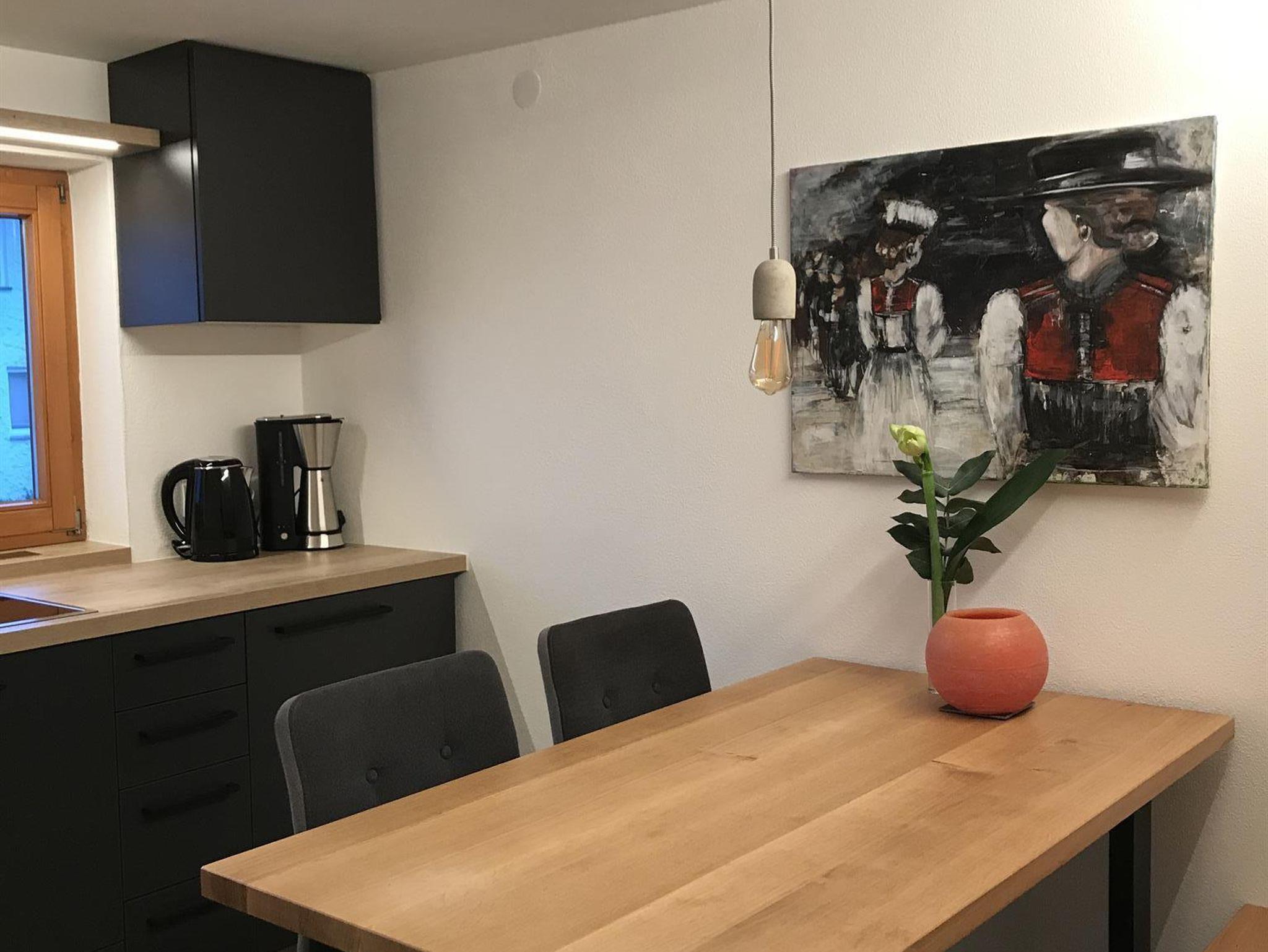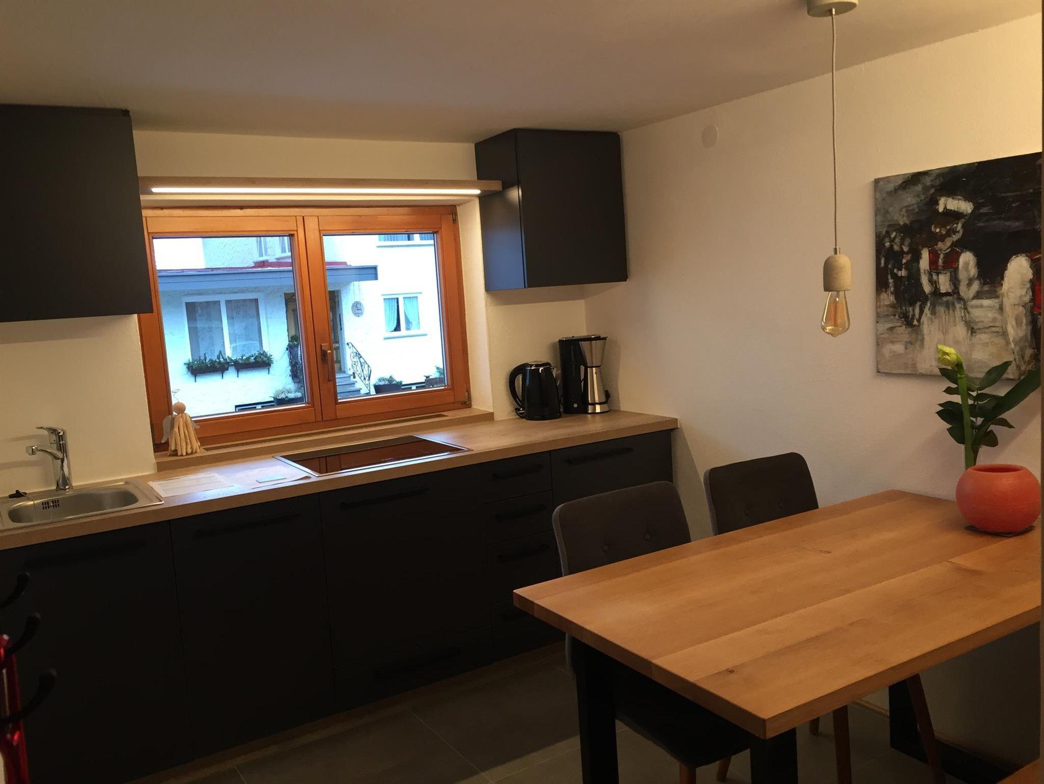 Die neu renovierte 2-Zimmer-Wohnung ist liebevoll und hochwertig eingerichtet mit einer komplett ausgestatteten Küche (Induktionsherd und Spülmaschine) mit Sitzecke für 4 Personen, einem Wohnraum mit Ausziehcouch für 2 Personen, einem Schlafzimmer mit Doppelbett und Badezimmer mit Dusche/WC sowie einem grossen Südbalkon.