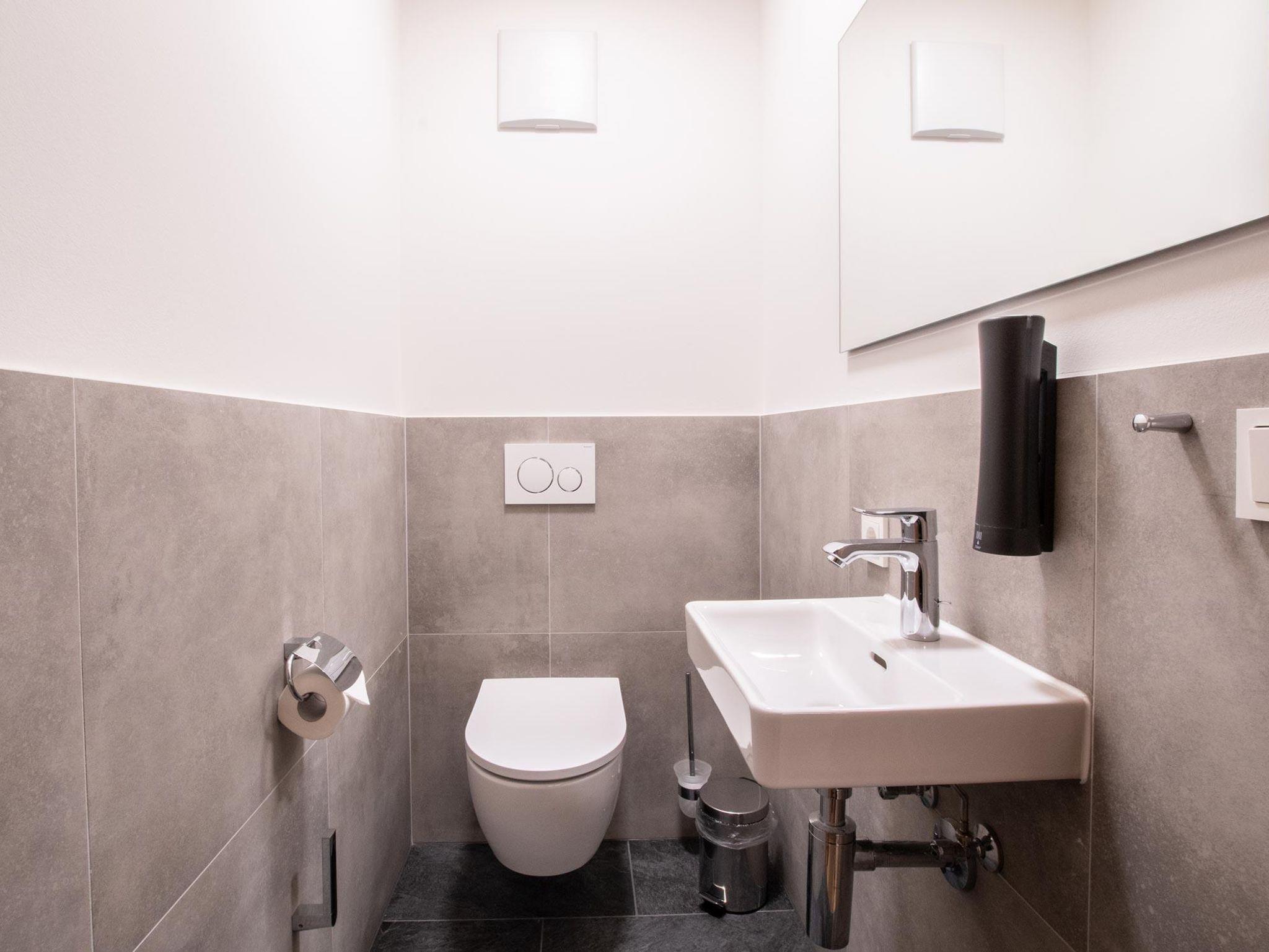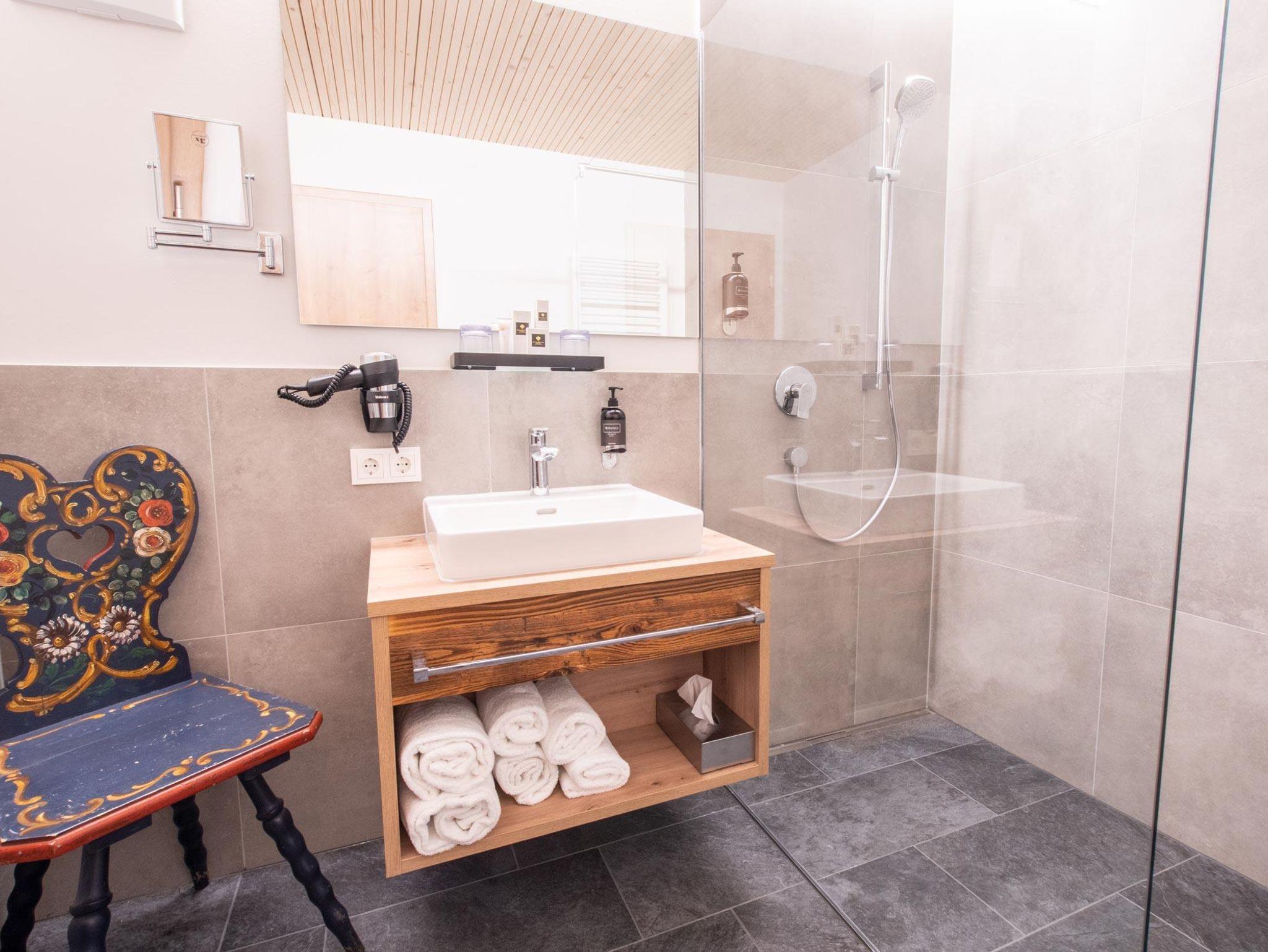 • Badezimmer mit Dusche, Fön, Bademänteln & Pflegeprodukten