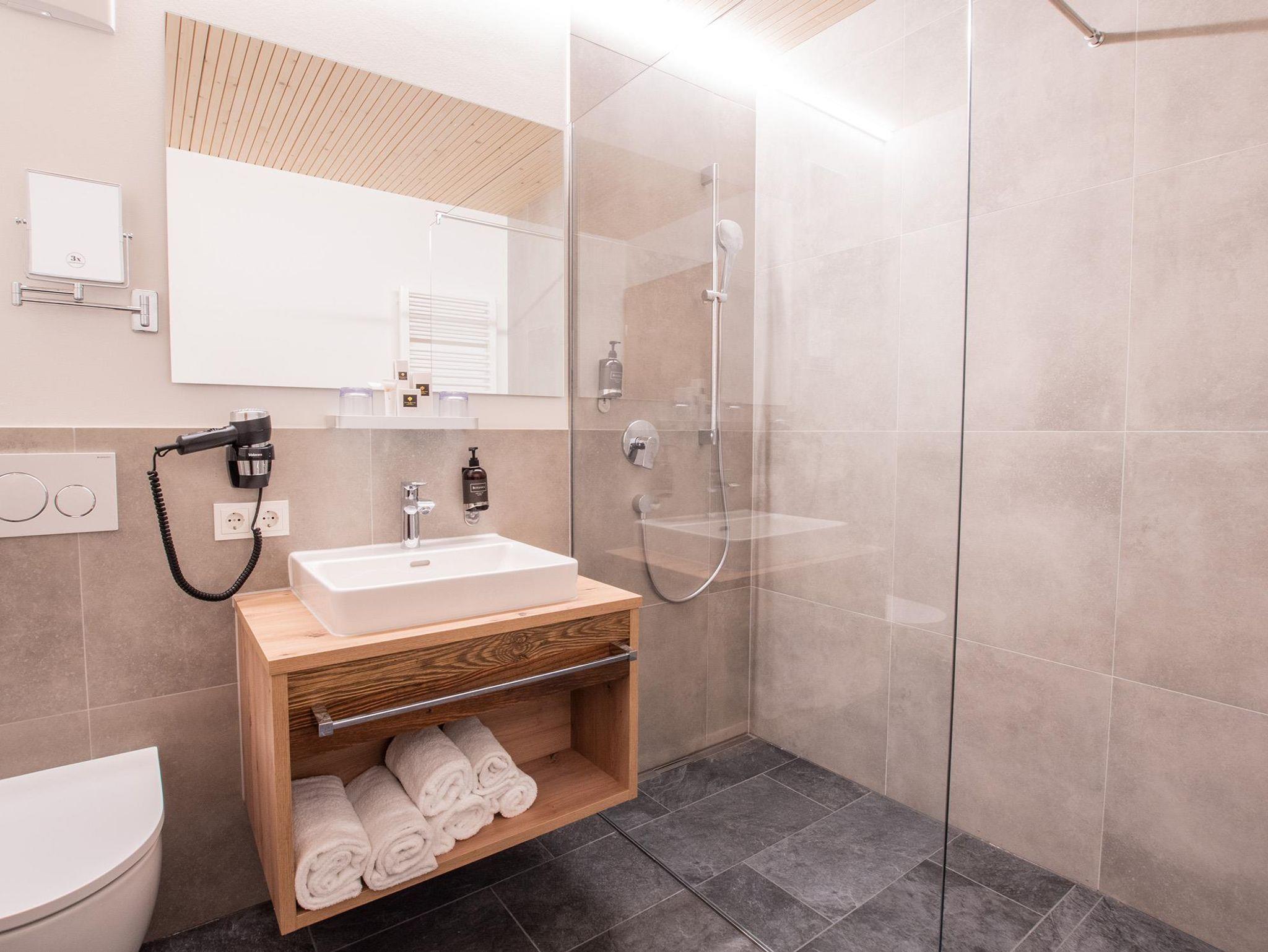 • Badezimmer mit Dusche/WC, Fön, Bademänteln & Pflegeprodukten
