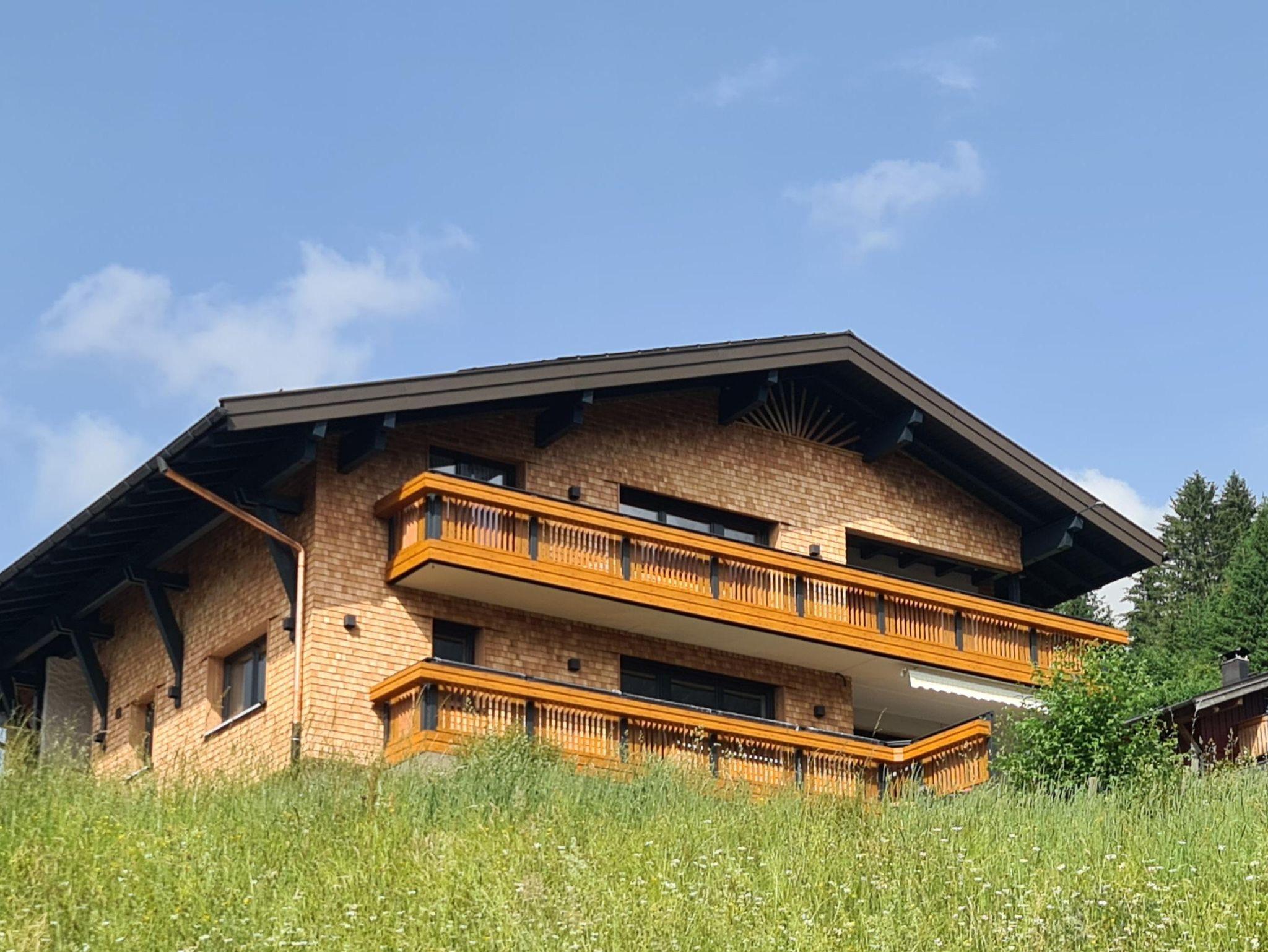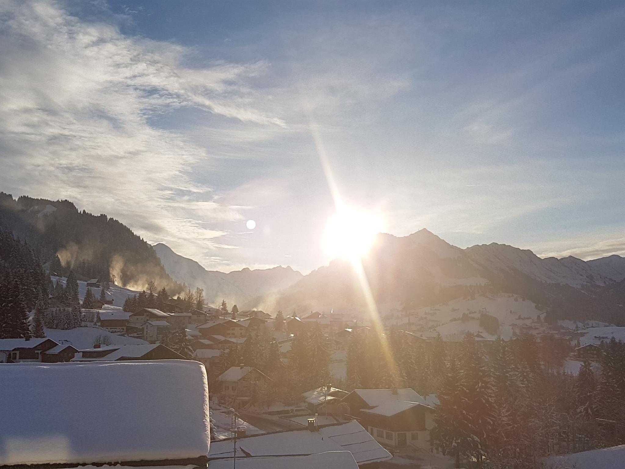 Unsere Ferienwohnung Alpenblick ist 28qm groß und ist großzügig aufgeteilt mit einem Wohn Schlafraum großes Doppelbett einer gemütlichen Essecke einer Küchenzeile mit div. Geräten und einem wunderschönem Wellnes Bad. Unsere Ferienwohnung hat einen wunderschönen umverbauten Blick in die Kleinwalsertaler Bergwelt!