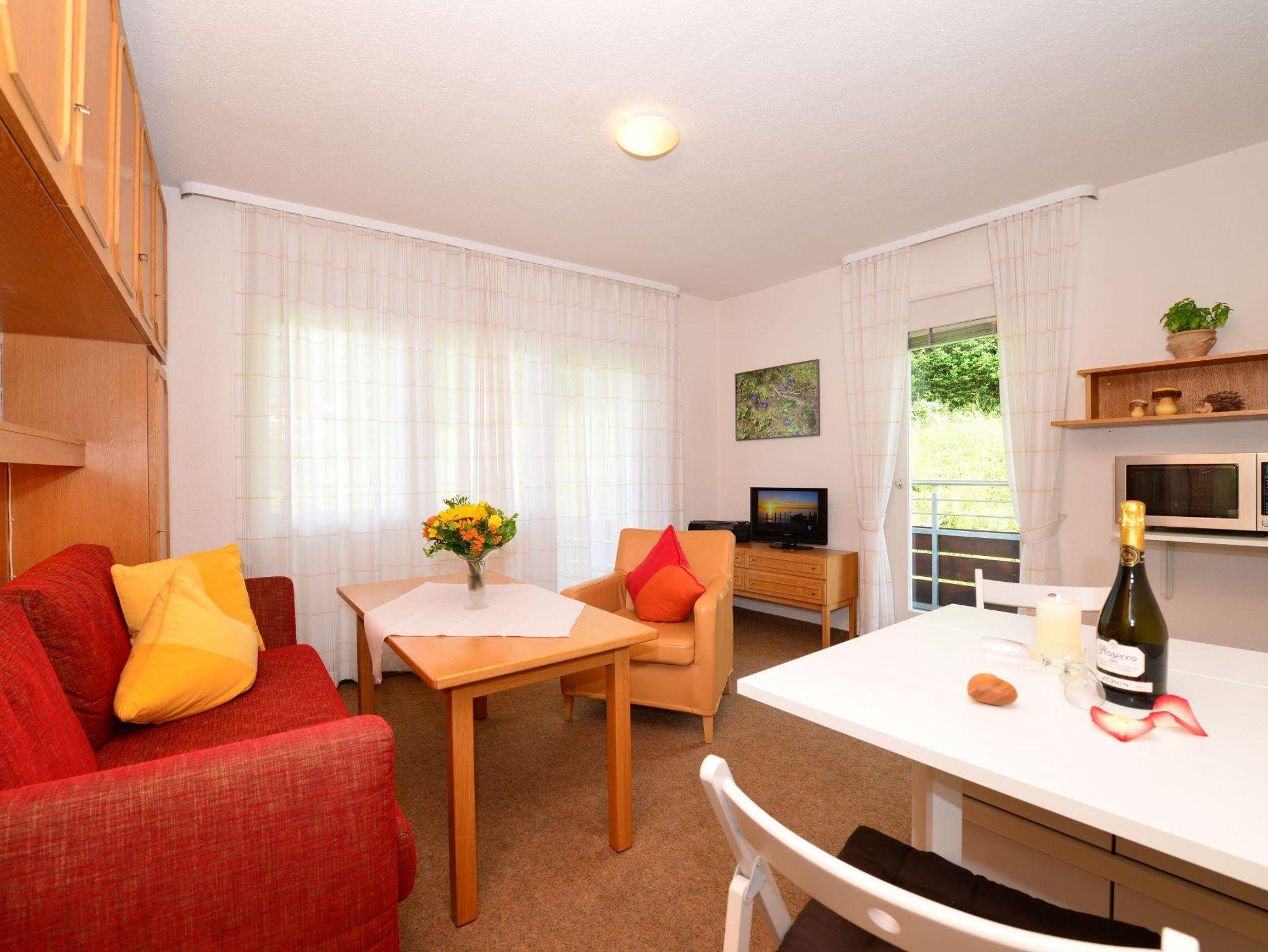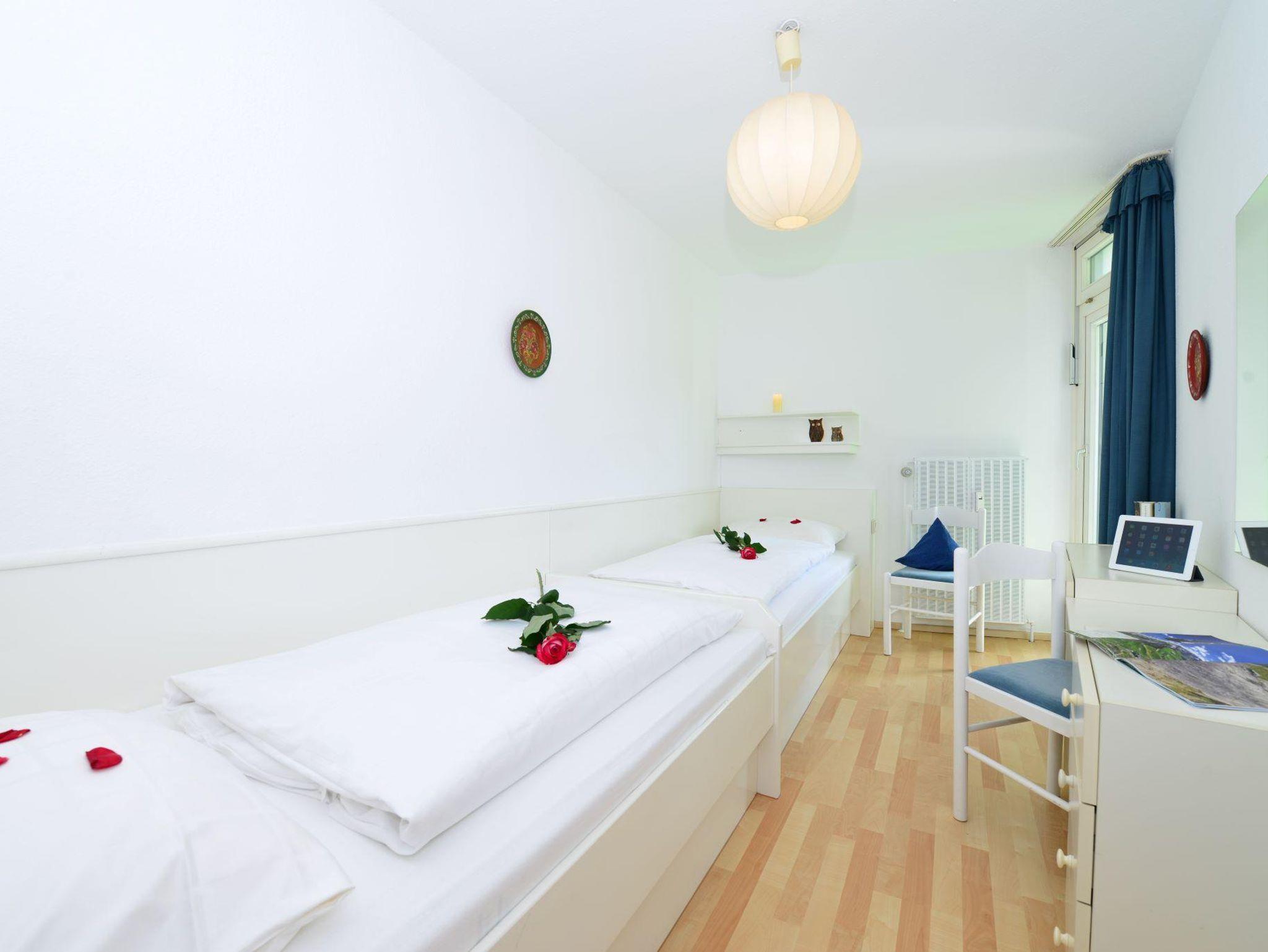 Wohnlich eingerichtetes 2-Raum Appartement für 2-4 Personen mit Einzelbetten im Schlafzimmer und einer weiteren Schlafmöglichkeit für 2 Personen im Wohnbereich in Form von Schrankbett oder Schlafsofa. Das Appartement verfügt über eine Kochnische, einen privaten Balkon, ein Bad mit Dusche oder Wanne und Flatscreen-TV. Von Mai bis November ist das Bergbahnticket inklusive.