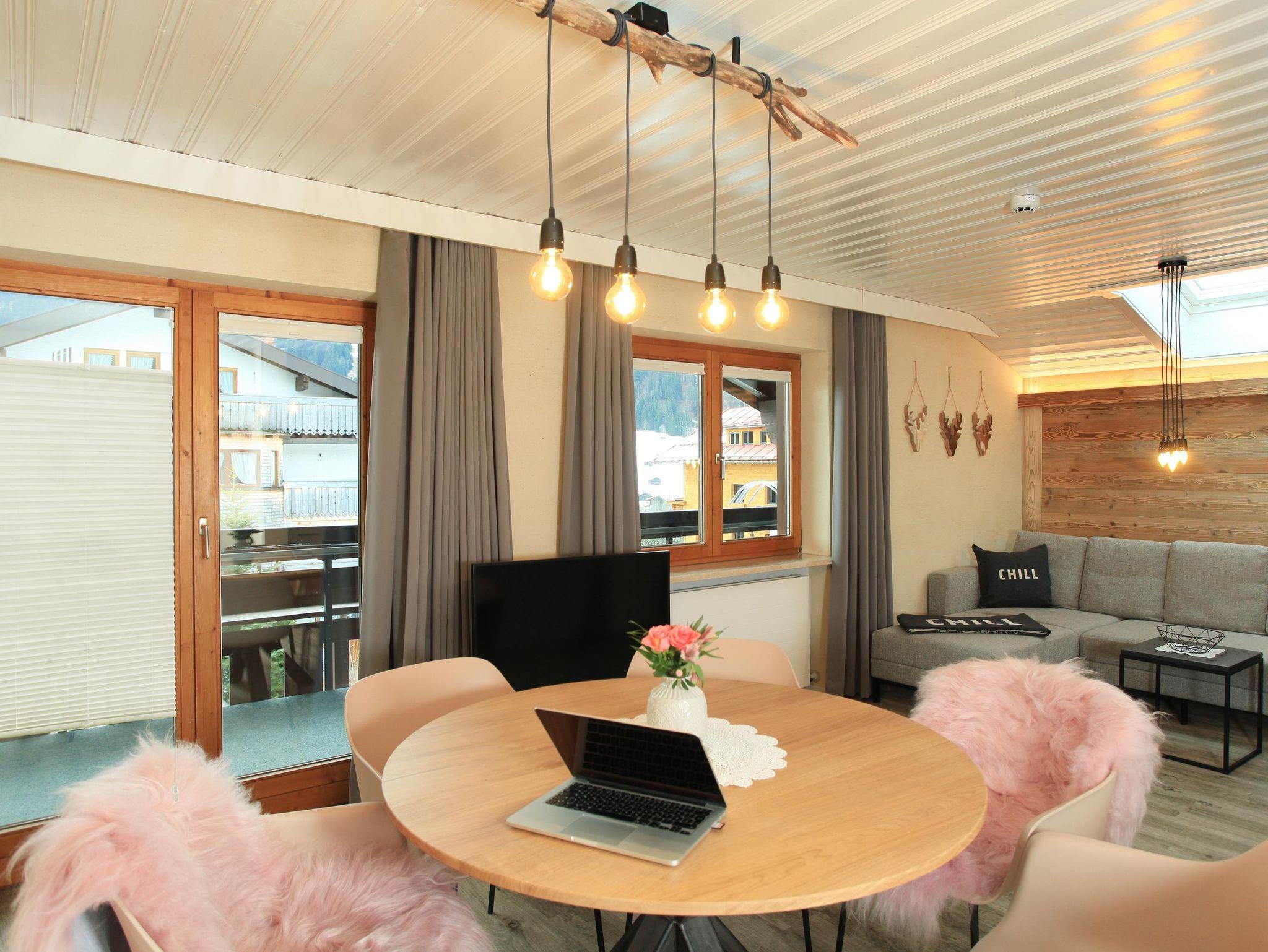 NEU seit Dezember 2024 - Ferienwohnung Deluxe „Alpenglück “ im modernen alpinem Stil mit offenen Wohn- und Essbereich mit Flatscreen SAT-TV, WLAN, Hotelsafe, moderne voll ausgestattete Küche mit Spülmaschine, runder Esstisch, gemütliches Ecksofa mit Schlaffunktion für 2 Personen, 1 Schlafzimmer mit Doppelbett, 1 Schlafzimmer mit getrennten Betten und toller Staulösung, Bad mit DU/WC mit Hotelfön, großer Ostbalkon mit atemberaubenden Blick auf die Kanzelwand,65 qm bis max. 6 Personen im 2. OG