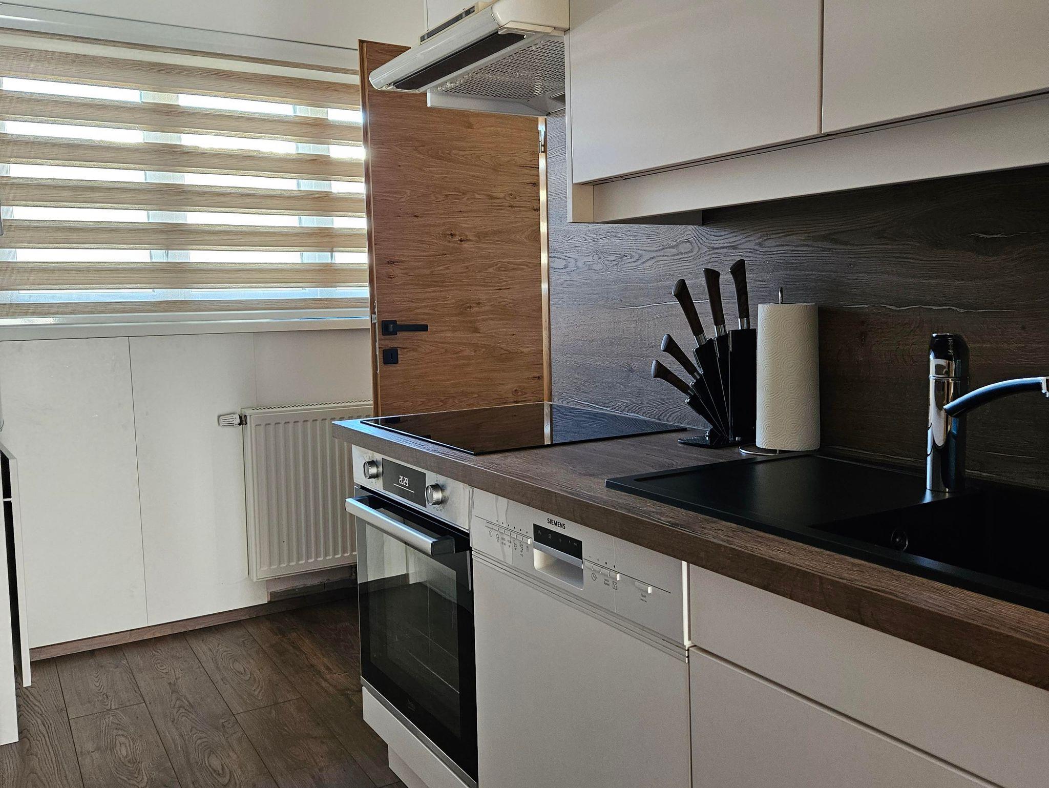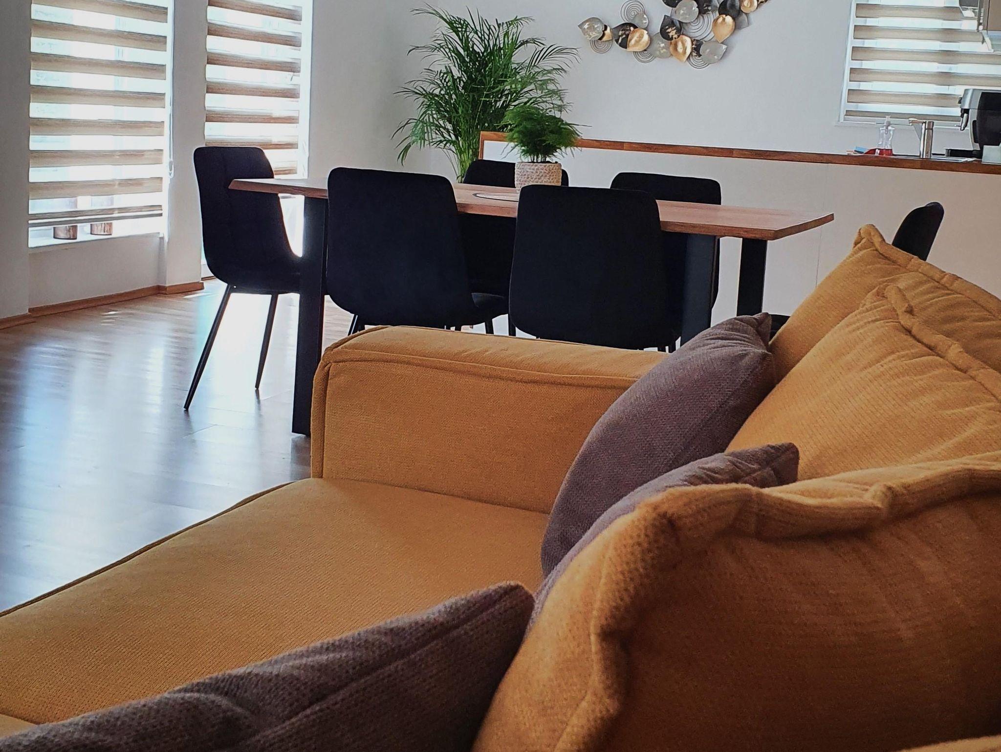 Freuen Sie sich auf eine geräumige, modern ausgestattete Ferienwohnung von 82 m² mit Balkon. Die Wohnung verfügt über zwei separate Schlafzimmer mit eigenem Bad sowie einem Wohnzimmer, Esszimmer und einer Küche. In der neuwertigen komplett ausgestatteten Küche befindet sich ein Kühlschrank, ein Backofen, eine Spülmaschine und eine Kaffeemaschine. Zur Ausstattung gehören außerdem eine Waschmaschine, ein Staubsauger sowie zwei Flachbild-Fernseher. Handtücher und Bettwäsche werden, ebenso wie die Parkplätz, kostenlos zur Verfügung gestellt.