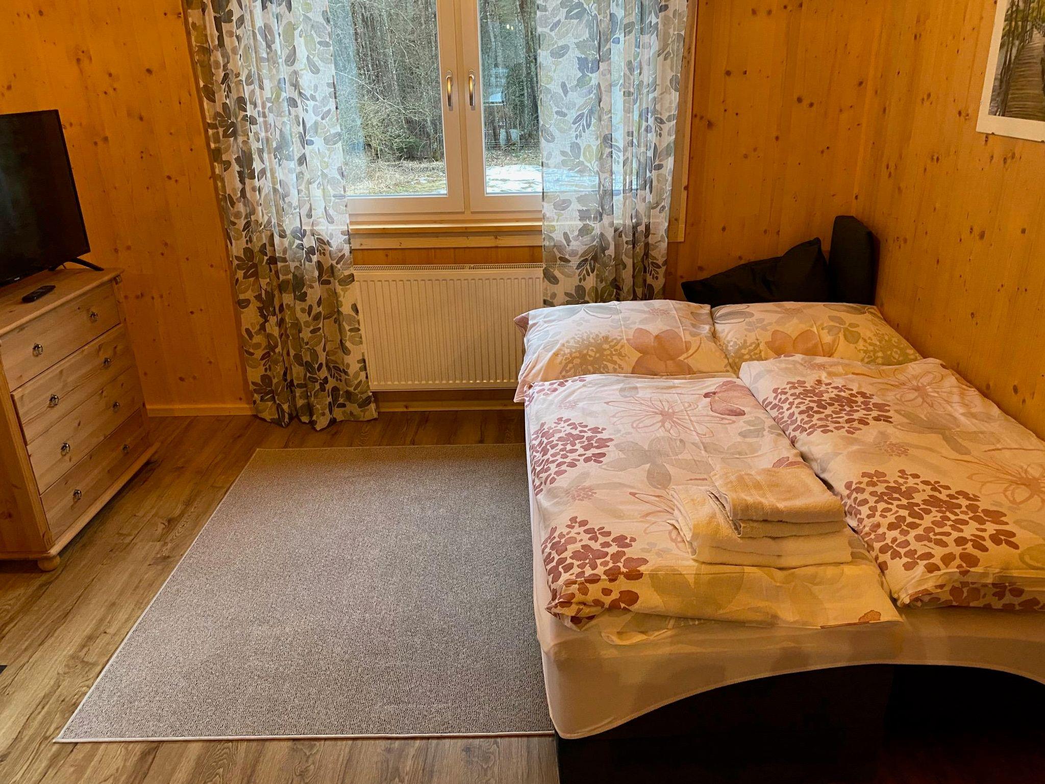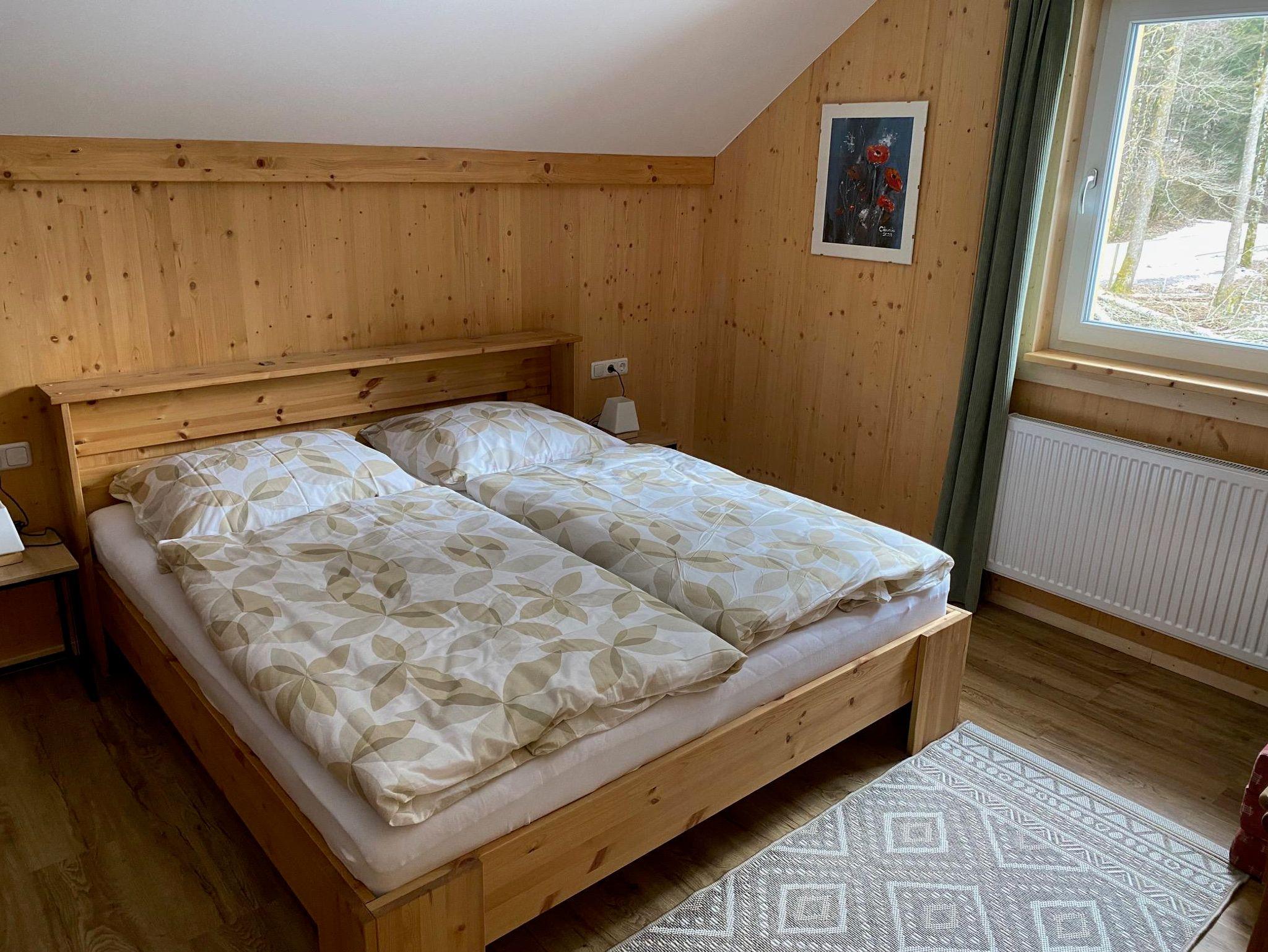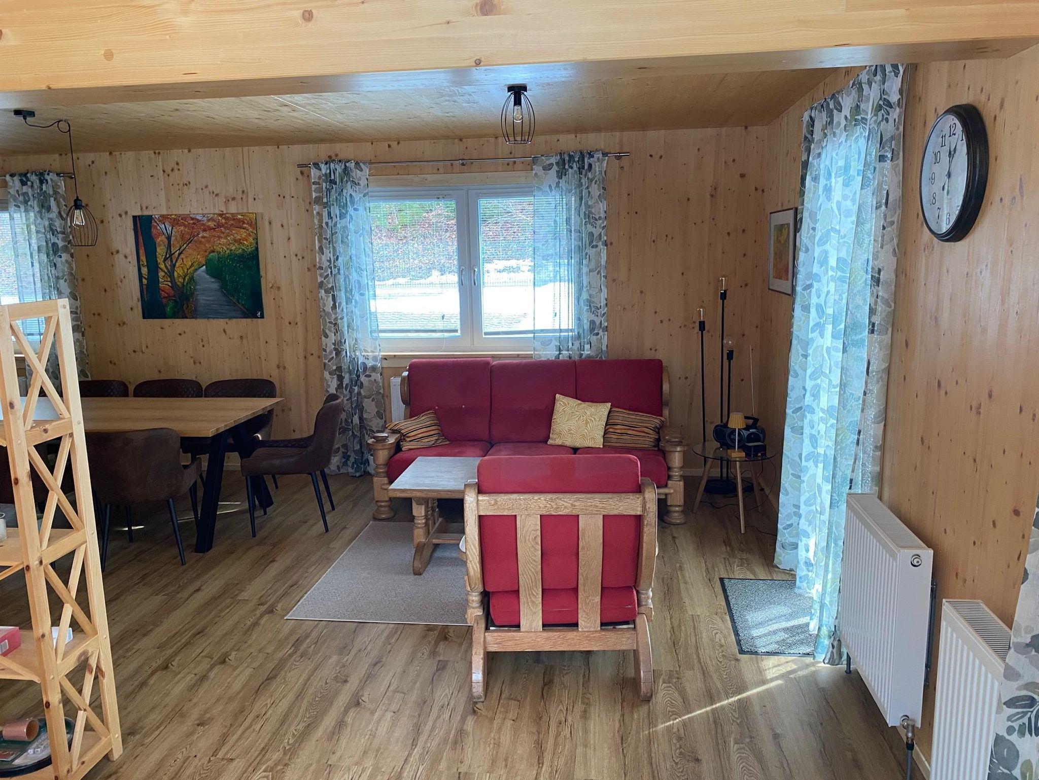 Erleben Sie naturnahen Komfort in diesem neu erbauten Holzhaus, das idyllisch eingebettet zwischen weiten Wiesen und tiefen Wäldern liegt. In absolut ruhiger Lage am Rande einer Siedlung genießen Sie hier maximale Privatsphäre, denn der nächste Nachbar ist rund 200 Meter entfernt. Trotz dieser erholsamen Abgeschiedenheit ist das Anwesen hervorragend angebunden: Sowohl die Autobahnabfahrt als auch der Bahnhof befinden sich in nur einem Kilometer Entfernung. Die ebene Zufahrt garantiert zudem eine stressfreie Anreise, die selbst bei Schneelage völlig problemlos möglich ist. Auf dem weitläufigen Grundstück finden Familien und Gruppen bis zu acht Personen reichlich Platz zur Entfaltung. Das Haus besticht durch drei gemütliche Schlafzimmer sowie eine zusätzliche Schlafcouch im großzügigen Wohnbereich. Eine voll ausgestattete Küche und der einladende, offene Wohn- und Essbereich bilden das Herzstück des Hauses, ergänzt durch zwei moderne Bäder mit Dusche und WC.