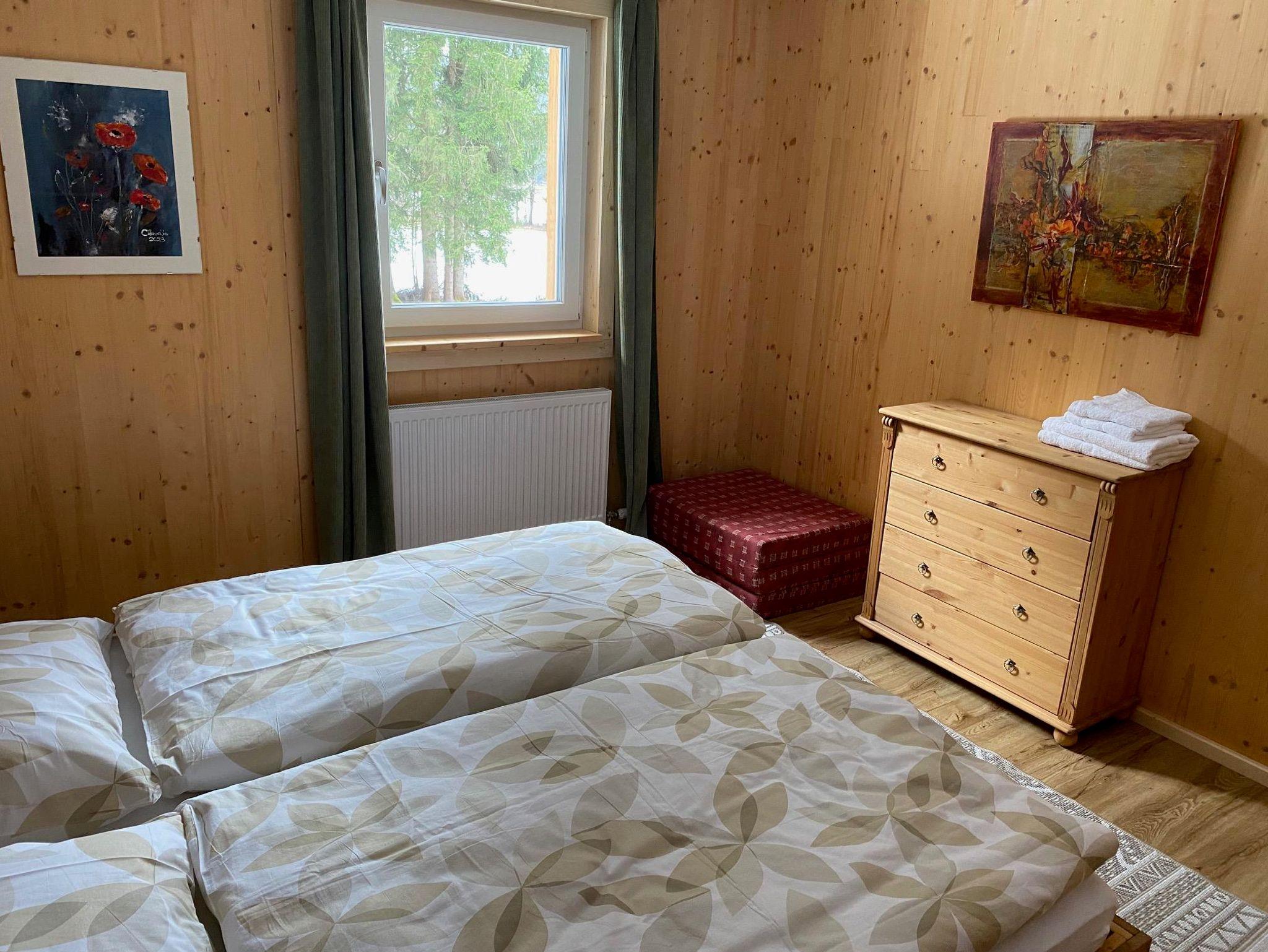 Sehr gemütlich eingerichtetes Holzhaus mit Küche, Wohn-/Essbereich, Vorraum, Dusche mit WC im EG, 2 Schlafzimmer mit Doppelbetten, 1 Schlafzimmer mit 2 Einzelbetten, Dusche und WC im Obergeschoss. Überdachte Terrasse und grosser Garten, Carport und Autoabstellplätze, Lademöglichkeit für E-Fahrzeuge.