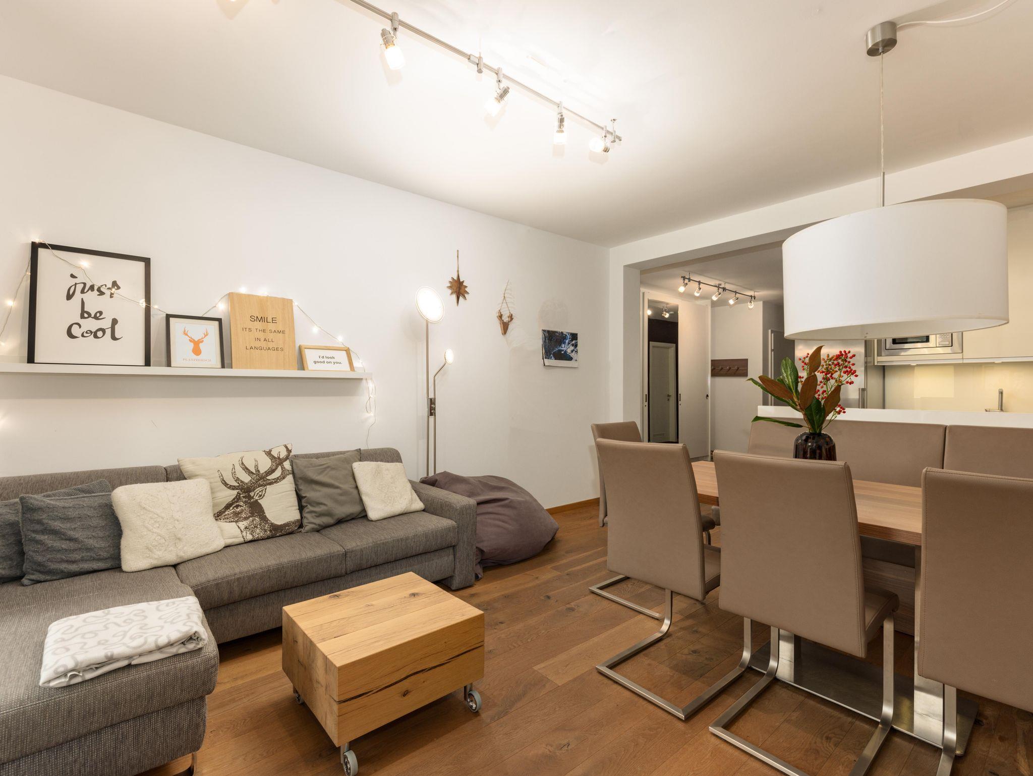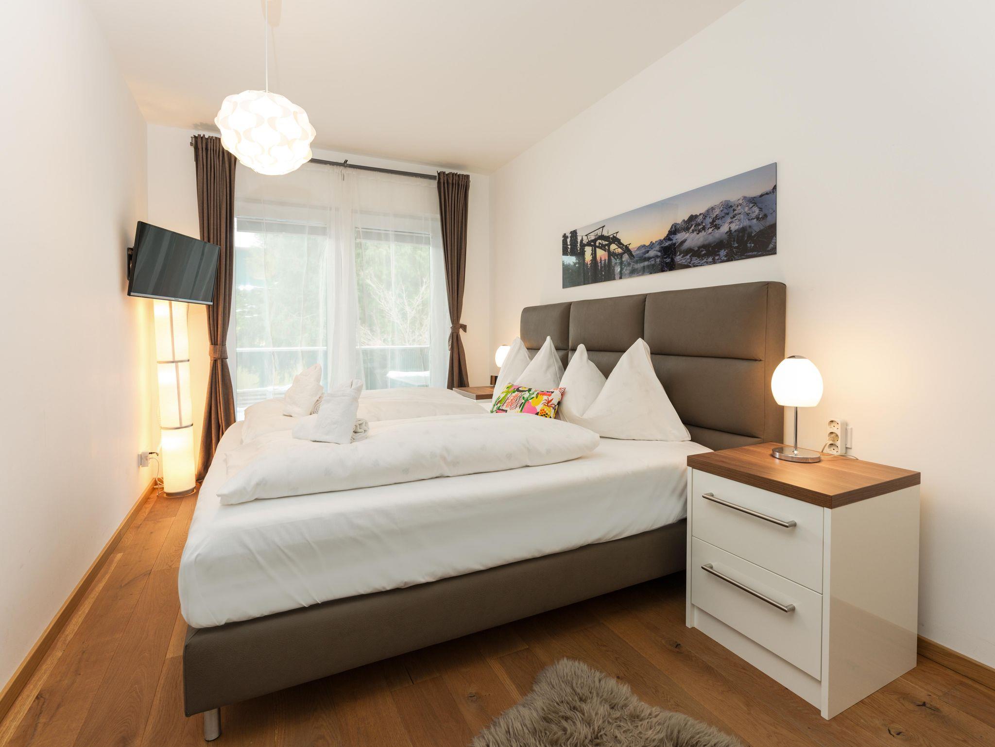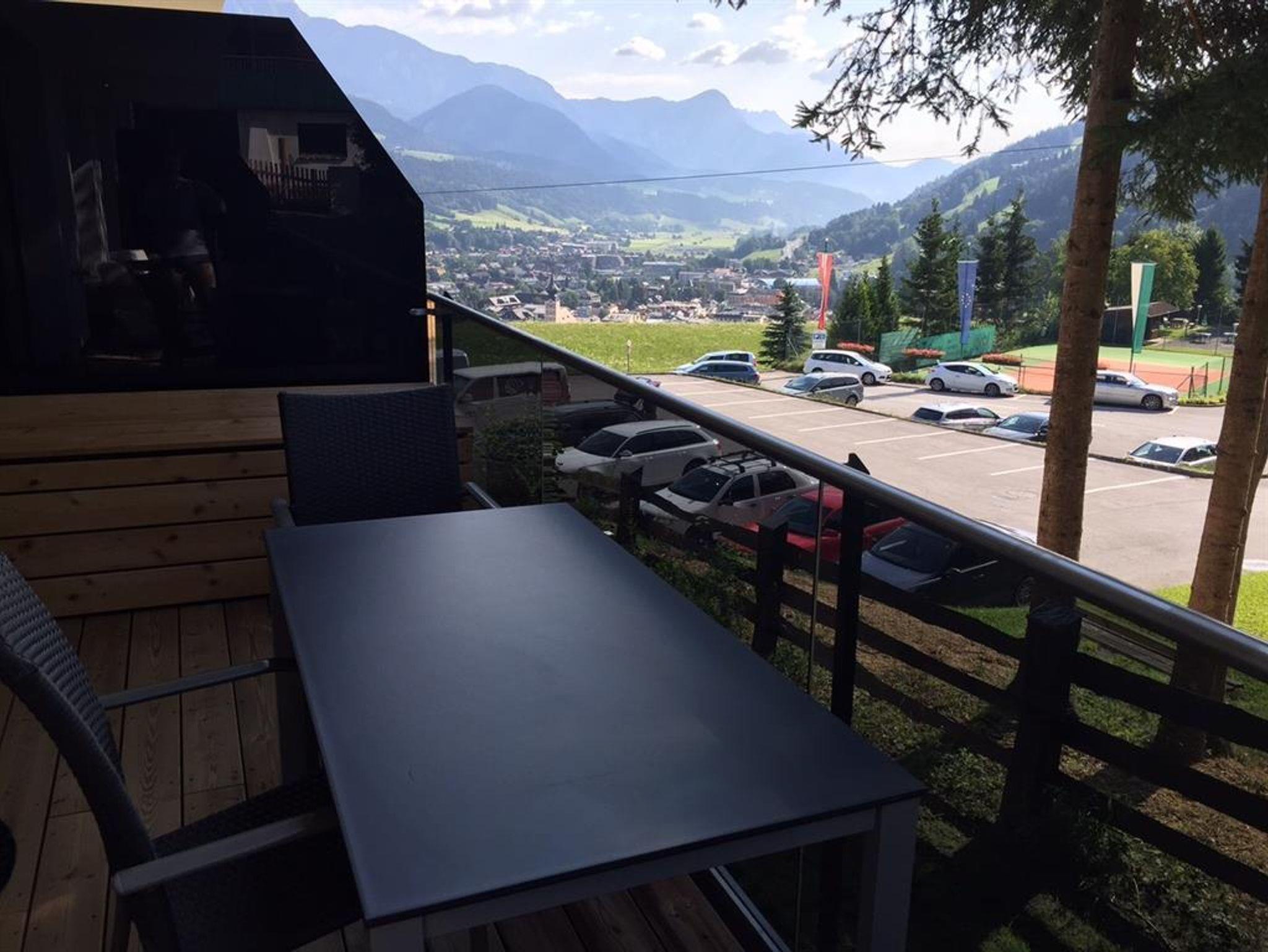 Die 3-Zimmerwohnung, die auf 4 Personen ausgerichtet ist, befindet sich in Rohrmoos im 1. Obergeschoss des 2014 erbauten Appartementhauses, mit Ausblick auf die malerische Stadt Schladming und den nahegelegenen Dachstein. Die Wohnfläche von 80qm verteilt sich auf einen großzügigen Koch-Wohn-Essbereich, 2 separate Schlafzimmer, ein Badezimmer und ein separates WC. Der großzügige Balkon erstreckt sich über die gesamte Breite der Wohnung und ist für die Sommermonate mit Outdoor-Möbeln ausgestattet.