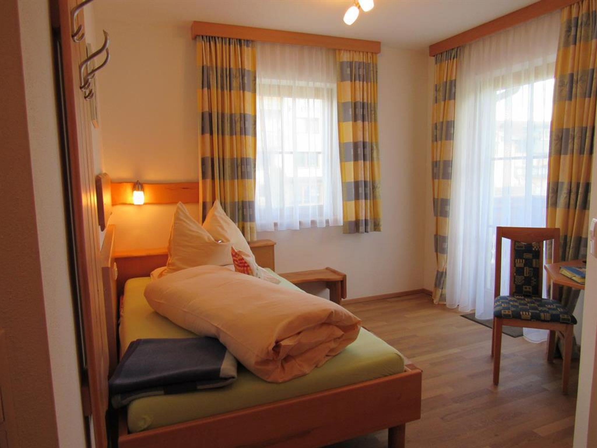 Komfortables Einelzimmer mit Dusche und WC, Balkon, Kabel-Flat TV, Safe und gratis W-LAN. In unmittelbarer Nähe vom Zentrum in Rohrmoos. Saunabereich; Frühstücksbuffett.