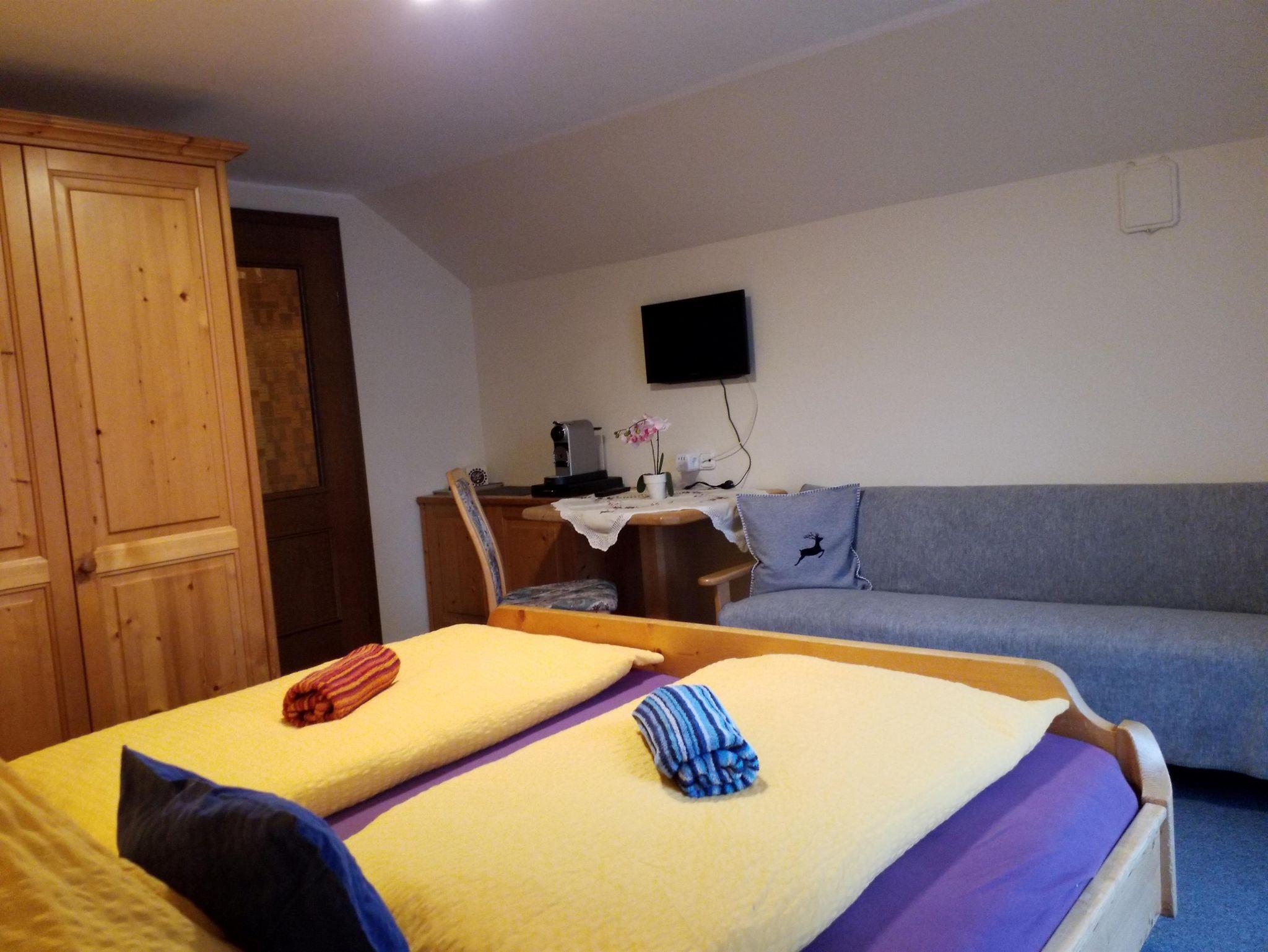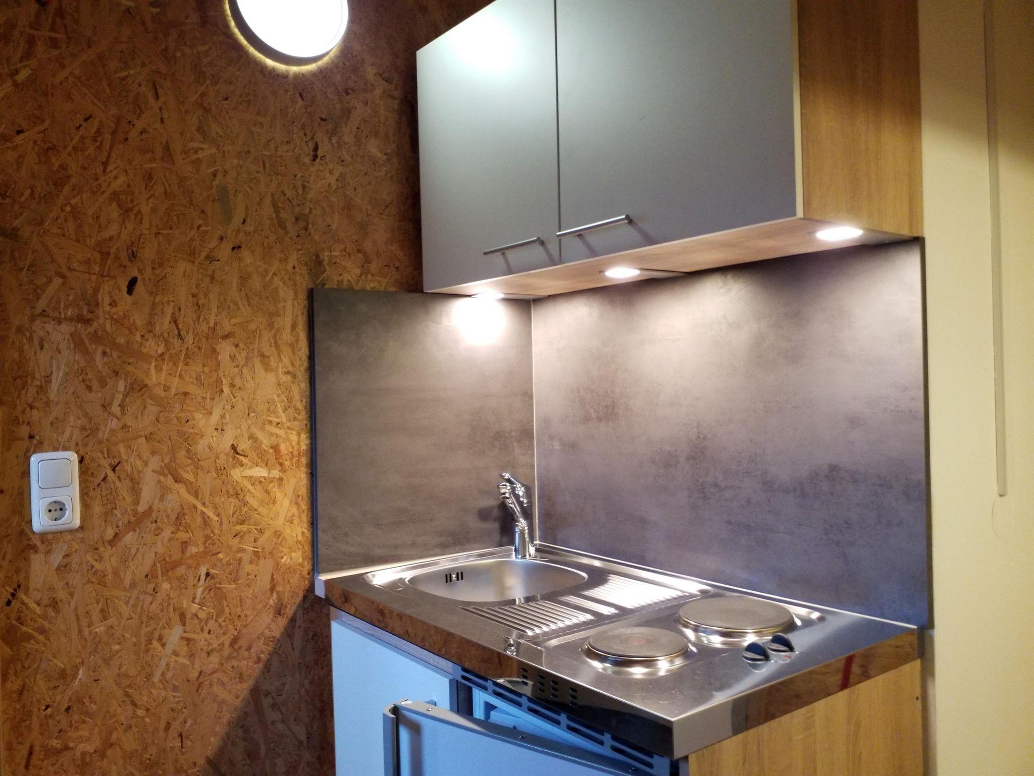 1 Schlafraum (1 Doppelbett), DU/WC und Balkon für 1-2 Personen, separate Miniküche mit Esstisch. Kühlschrank, E-Herd, Kapsel- Kaffeemaschine, Wasserkocher, Eierkocher, Mikrowelle, Kabel HD-TV,gratis W-Lan.