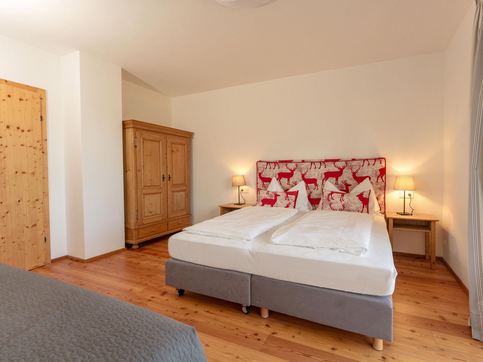 - 1 Schlafzimmer mit Doppelbett und einem Einzelbett + Badezimmer (Dusche, WC)