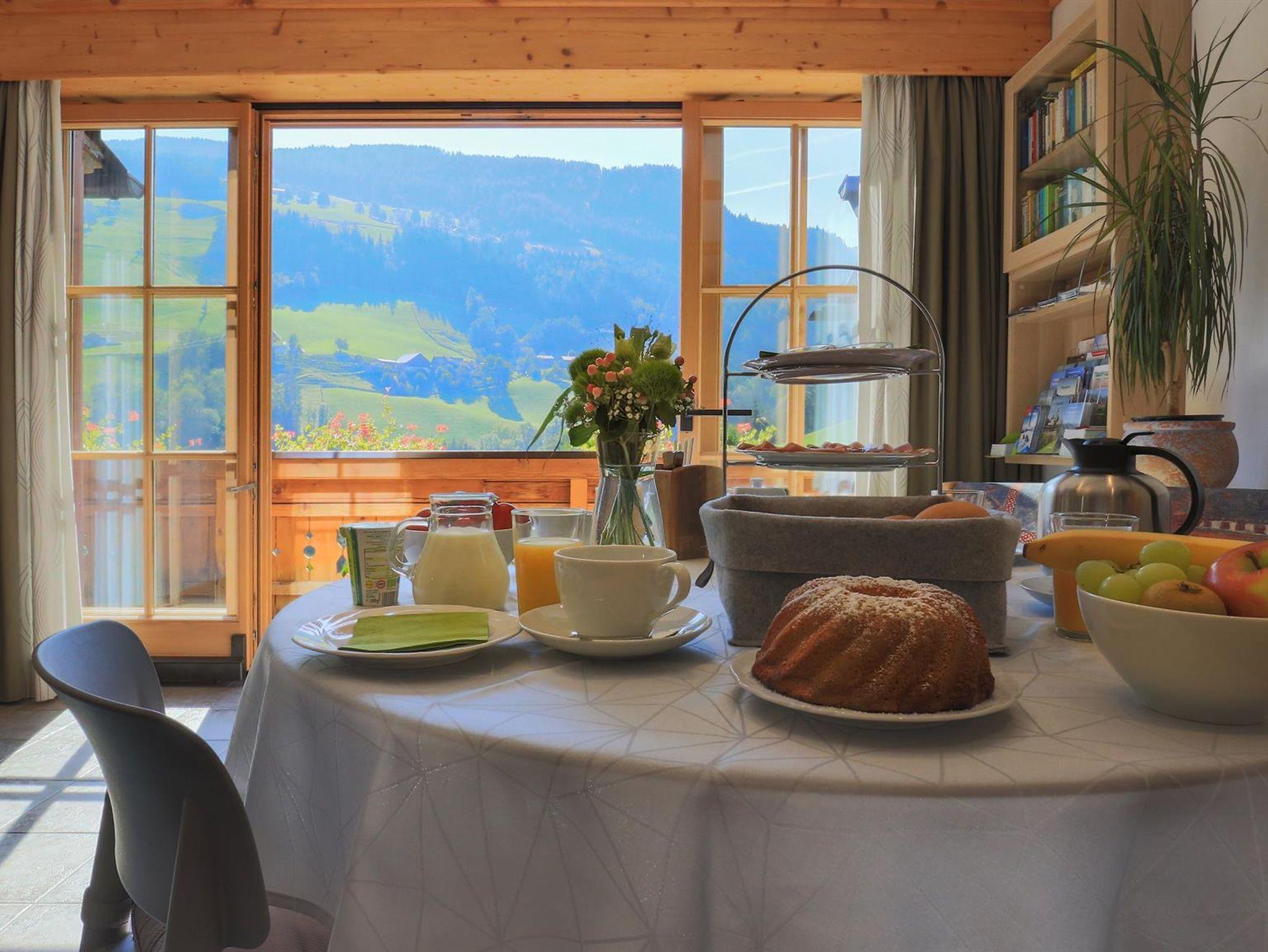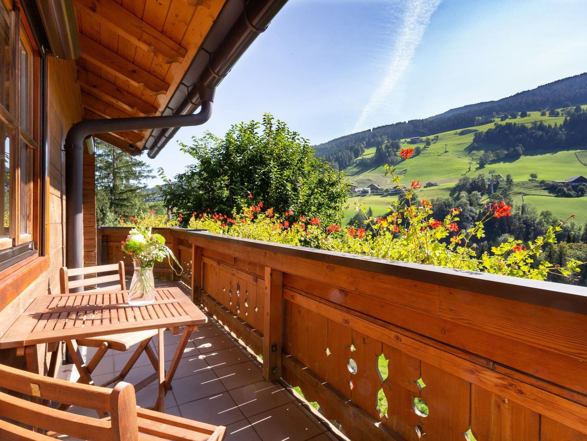 Landhaus Hinteregg für bis zu 5 Personen mit 2 Schlafzimmern, großem, panoramaverglastem Wohnraum und exklusivem Badezimmer mit Dusche, Wanne und Doppelwaschbecken, voll ausgestattete Küche, eigene Etage, Balkon an allen Räumen.
