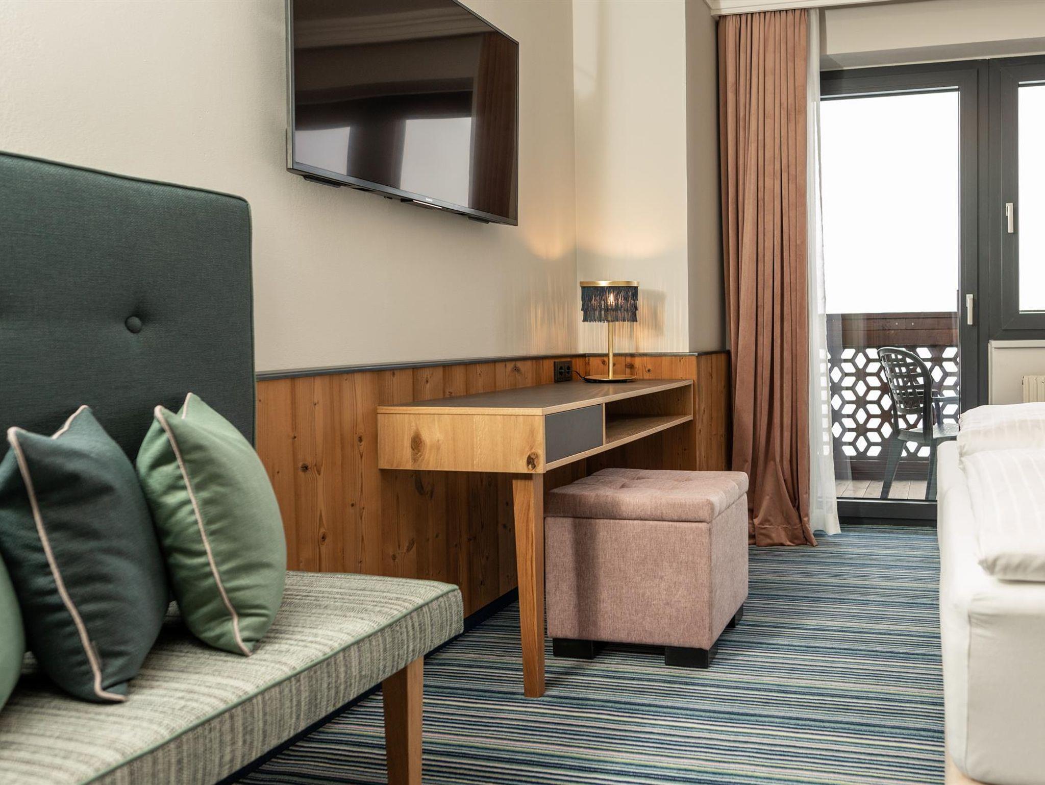 Doppelschlafcouch im Wohnbereich | Safe | Kabel-TV | Radio via TV