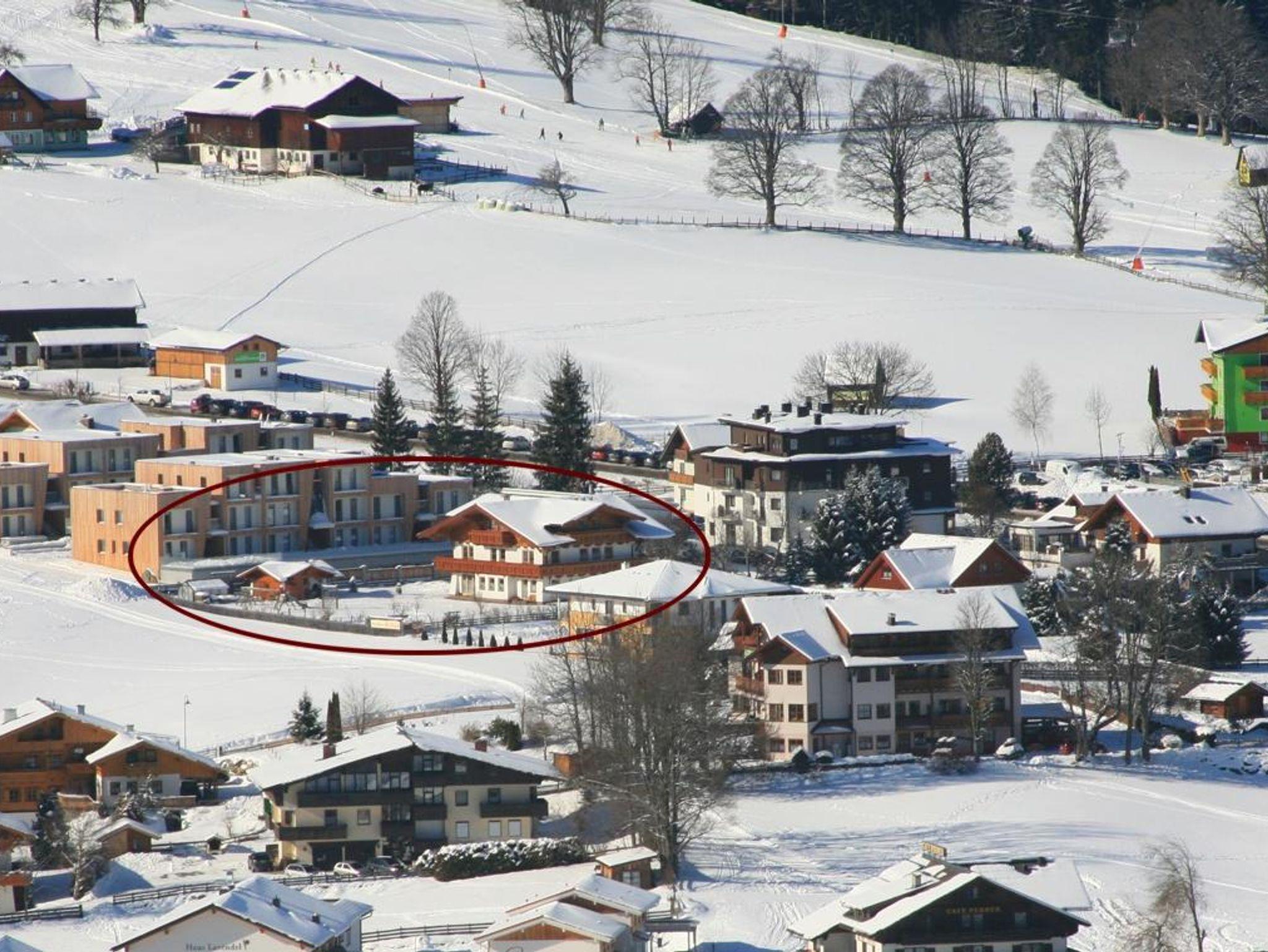 Unser Landhaus liegt sehr in ruhiger Lage im Zentrum von Rohrmoos auf 1000 m Seehöhe. Im Winter führt ein Skiweg direkt am Haus vorbei.
