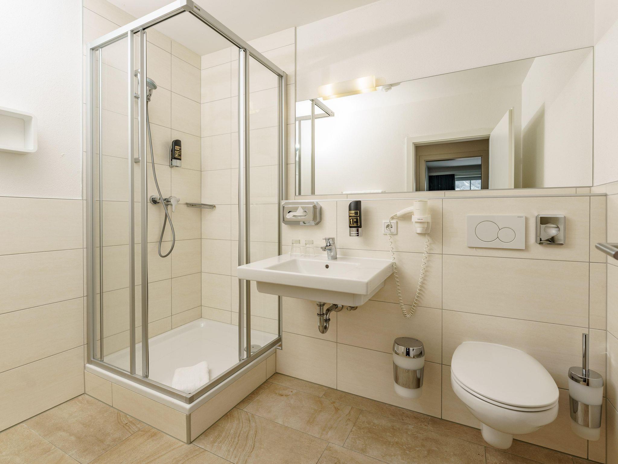 • Badezimmer mit Dusche/WC, Schminkspiegel, Haarföhn & Handtuchtrockner