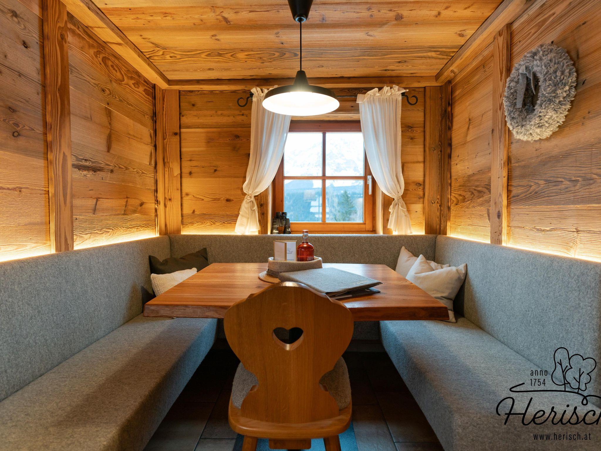 DEIN SELBSTVERSORGERHAUS IN DEN BERGEN Abseits vom Trubel, auf 1.016 m Seehöhe, umgeben von Wiesen, Wäldern und mächtigen Ahornbäumenbefindet sich das 300 Jahre alte Bauernhaus Herisch. Rustikal und doch in die Zeit geholt bietet unser Ferienhaus Platz für bis zu 23 Personen und ist der perfekte Ausgangspunkt für unendlich viele Möglichkeiten zu jeder Jahreszeit! Hier kann man echte Momente mit der Familie, Freunden, Geschäftspartnern oder Kollegen erleben, zur Ruhe kommen, sich austoben oder nur die herrlichen Panoramablicke zum Dachstein und die umliegende Bergwelt genießen.Willkommen im Herisch. Willkommen bei uns. Willkommen bei Familie Tritscher.