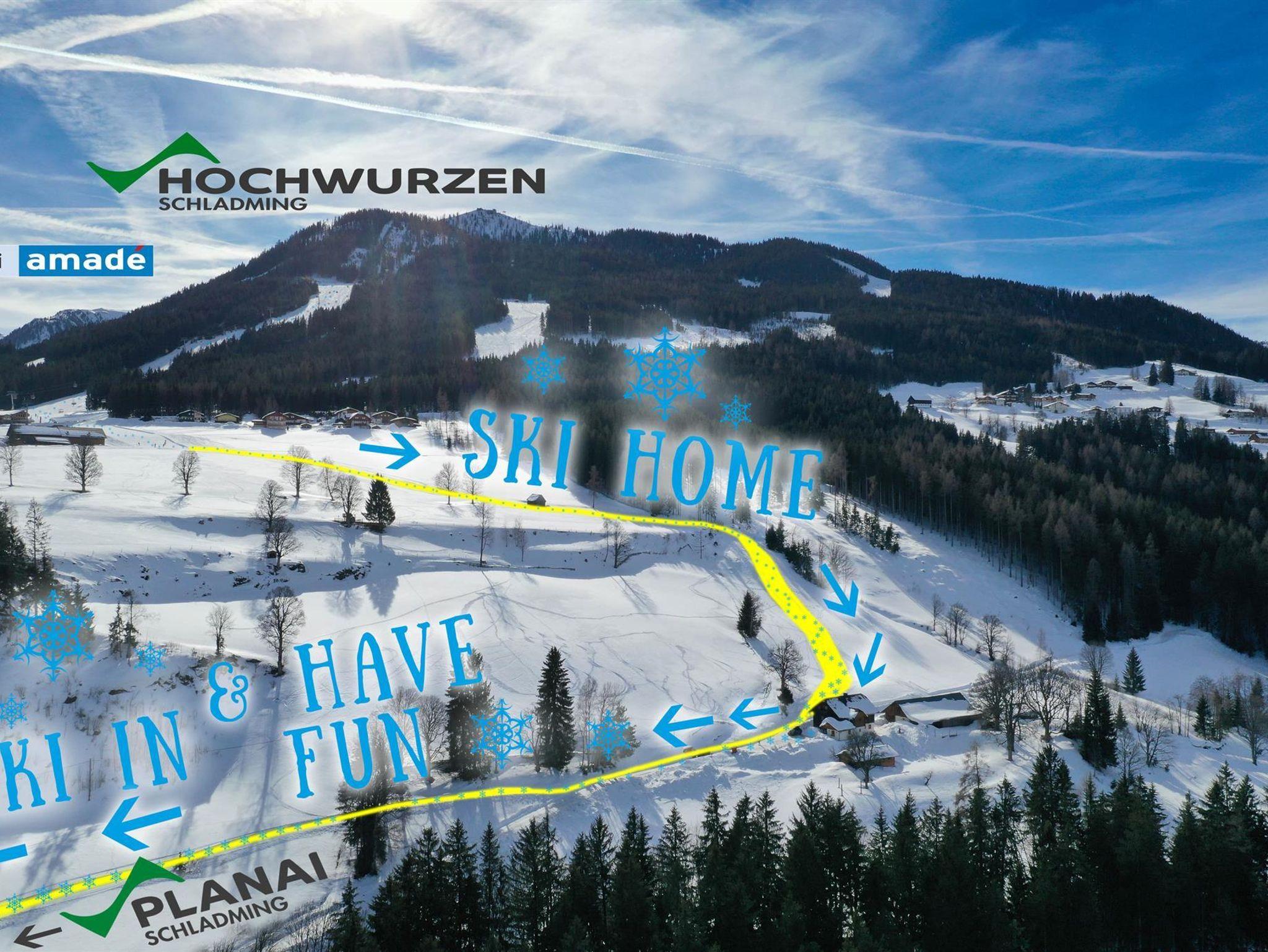 Bei optimaler Schneelage kann man direkt vor dem Haus ins Skivergnügen der Schladminger 4-Berge-Skischaukel einsteigen, sie verbindet Hauser Kaibling, Planai, Hochwurzen und Reiteralm zu einem durchgehenden Skivergnügen mit 123 sorgfältig präparierten Pistenkilometern.