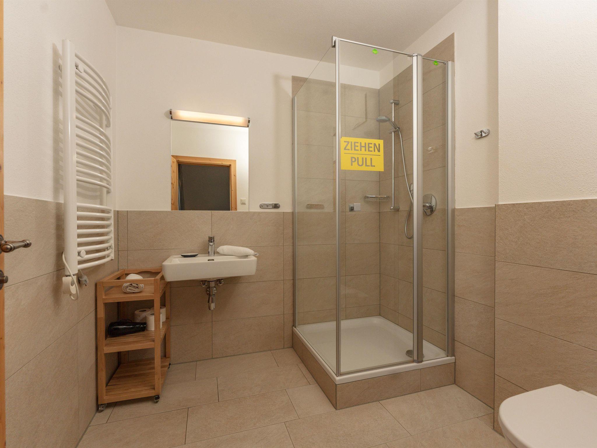 - 1 Schlafzimmer mit Doppelbett und einem Einzelbett + Badezimmer (Dusche, WC)
