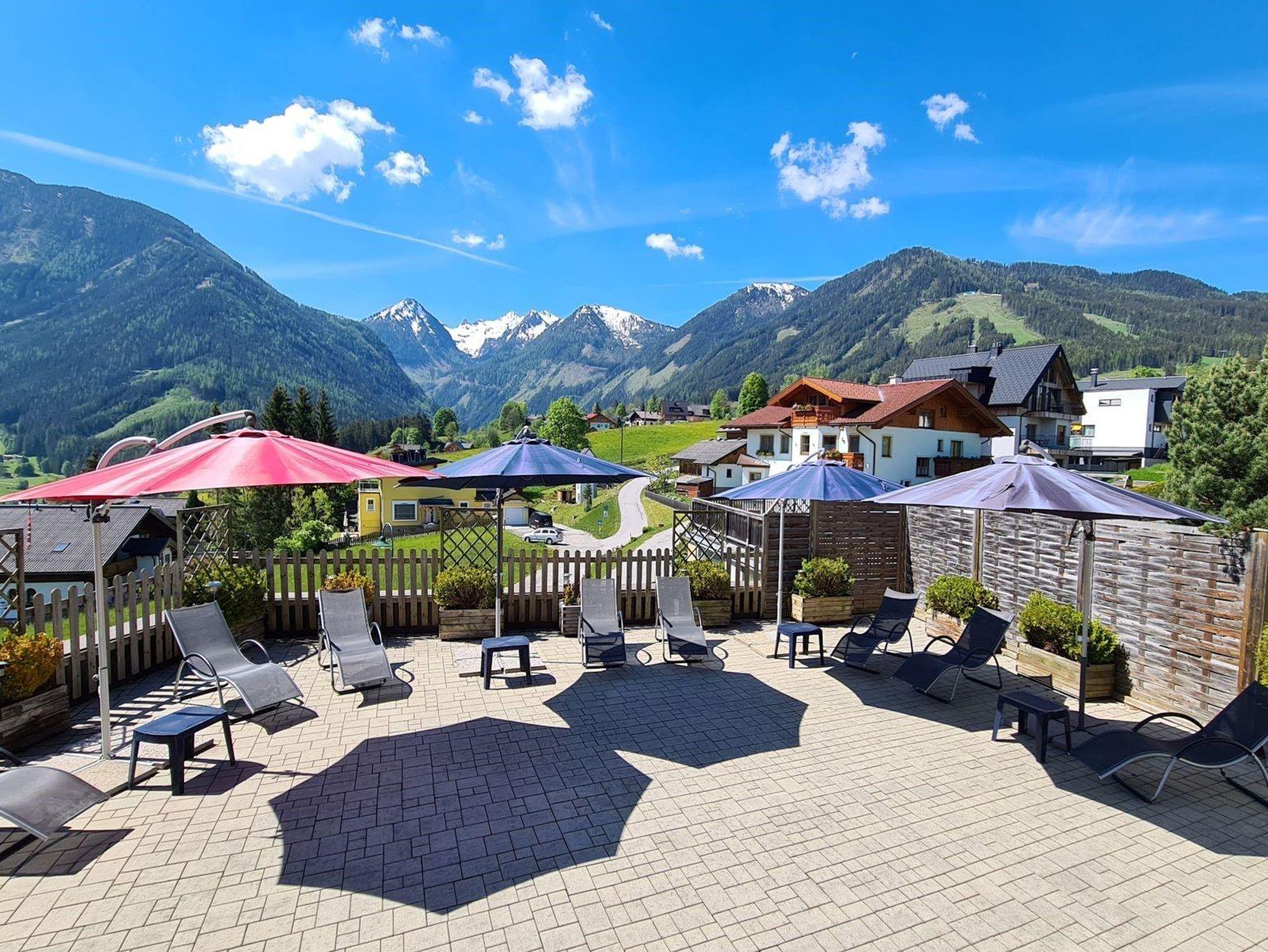 Wir heißen Sie herzlich Willkommen in unserem Apparthotel Ferienhaus Bliem in Rohrmoos in der erlebnisreichen Urlaubsdestination Schladming-Dachstein. Zentral gelegen bietet unser Apparthotel Ferienhaus Bliem den optimalen Ausgangspunkt für Ihren Sommer- und Winterurlaub mit Freunden und Familie. Lassen Sie Ihr Auto einfach stehen, denn in nur 5 Gehminuten erreichen Sie die Skipiste des Top Skigebiet 4-Berge-Skischaukel von Schladming und genießen bestens präparierte Pisten. Die Abfahrt bringt Sie bei ausreichender Schneelage wieder bis zur Haustür des Apparthotel Ferienhaus Bliem. Auch im Sommer starten Sie Ihre Ausflüge direkt von Ihrer Unterkunft mit dem ebenfalls nur 5 Gehminuten entfernten Wanderbus. Im Apparthotel Ferienhaus Bliem verbringen Sie Ihren Urlaub in gemütlichen Doppelzimmern oder in einer unserer 10 Ferienwohnungen, die ausreichend Platz für 2 bis 7 Personen bieten. Unser riesiger Kinderspielraum bietet viel Platz zum Toben und lässt Kinderherzen höher schlagen. Starten Sie einen aktiven Urlaubstag beim Wandern oder im Schneeparadies im Skigebiet 4-Berge-Skischaukel an unserem reichhaltigen Frühstücksbuffet. Auch Gäste der Ferienwohnung können auf Wunsch am Frühstücksbuffet so richtig schlemmen. Einmal pro Woche verwöhnen wir unsere Gäste auf der sonnigen Hotelterrasse mit saftigen Koteletts, herzhaftem Gemüse und knackigen Salaten. Zum Abschalten vom Alltag oder nach einem aktiven Urlaubstag in der Ferienregion Schladming-Dachstein entspannen Sie in unserem Wellnessbereich Aqua-Vital-Insel mit Sauna, Dampfbad, Infrarot-Wärmekabine und Indoor-Pool mit direktem Zugang ins Grüne. Im Sommer bieten wir für unsere Gäste geführte Wanderungen mit Wanderführer Wolfgang, auf denen Sie gemeinsam Themenweg oder sportliche Alpinwege in den Schladminger Tauern oder im imposanten Dachsteingebirge erkunden. Als staatlich geprüfte Tennislehrerin hilft Ihnen Elisabeth den richtigen Einstieg beim Tennis zu finden oder bei einem Match Ihr Spiel zu verbessern. Für Golftipps und Informationen zum Golf & Country Club Dachstein-Tauern sind Sie bei Christina bestens aufgehoben. Große und kleine Pferdesportbegeisterte können im benachbarten Angererhof Reitstunden nehmen und ihre Technik im Sattel verbessern. Auch für den Winterurlaub ist das Apparthotel Ferienhaus Bliem der optimale Startpunkt für Ihre Touren mit der Familie. Die Skischule befindet sich gleich direkt an Einstieg in die 4-Berge-Skischaukel von Schladming. Bei einer romantischen Pferdeschlittenfahrt erkunden Sie die Rohrmooser Täler Obertal und Untertal. Die Skibushaltestelle ist ebenfalls nur 5 Gehminuten entfernt und bringt Sie zum Rodeln und Skifahren auf die Hochwurzen. Wolfgang und Elisabeth Huber mit Tochter Christina freuen sich darauf, Sie im Apparthotel Ferienhaus Bliem in Rohrmoos bei Schladming zu begrüßen!
