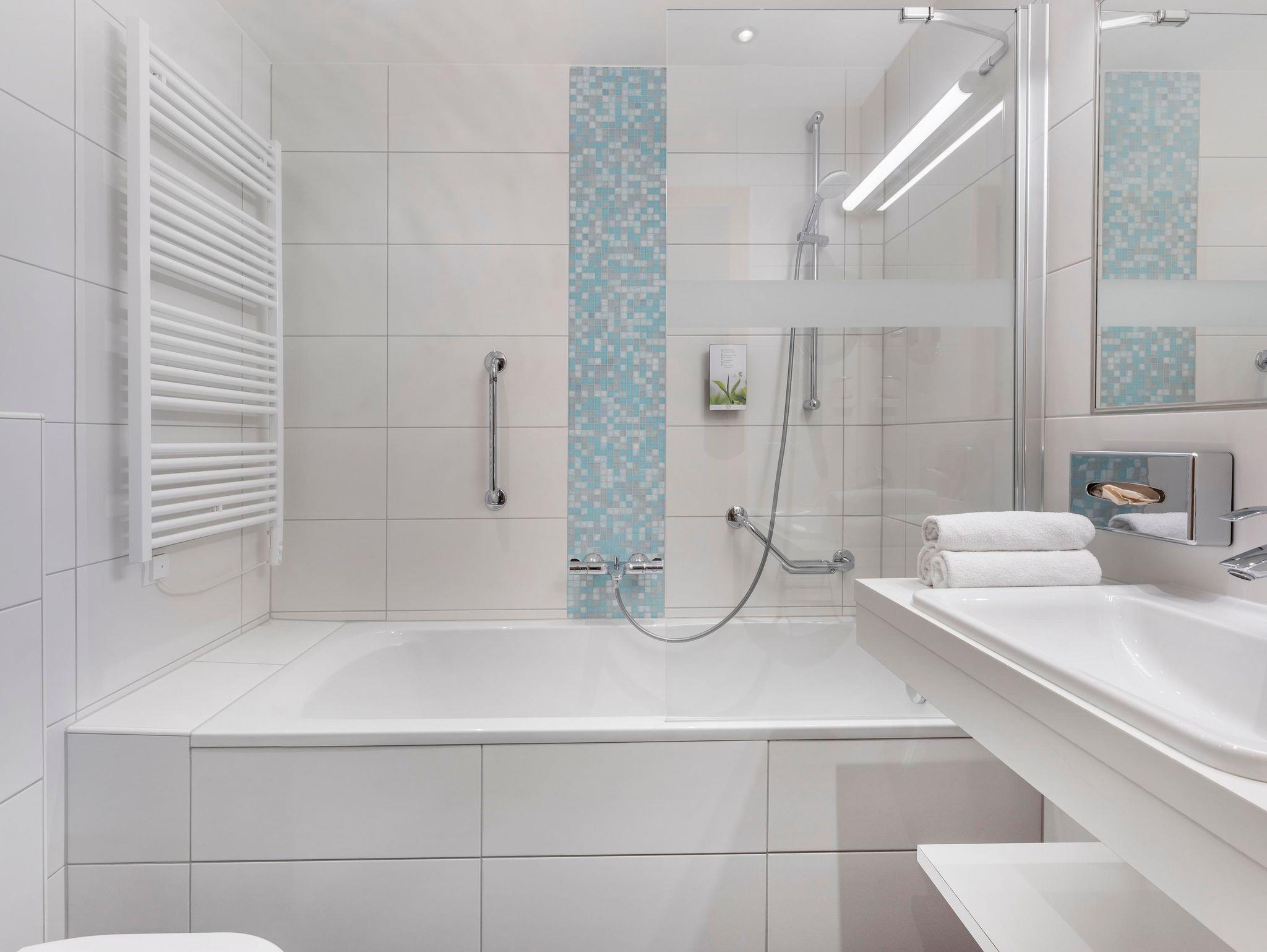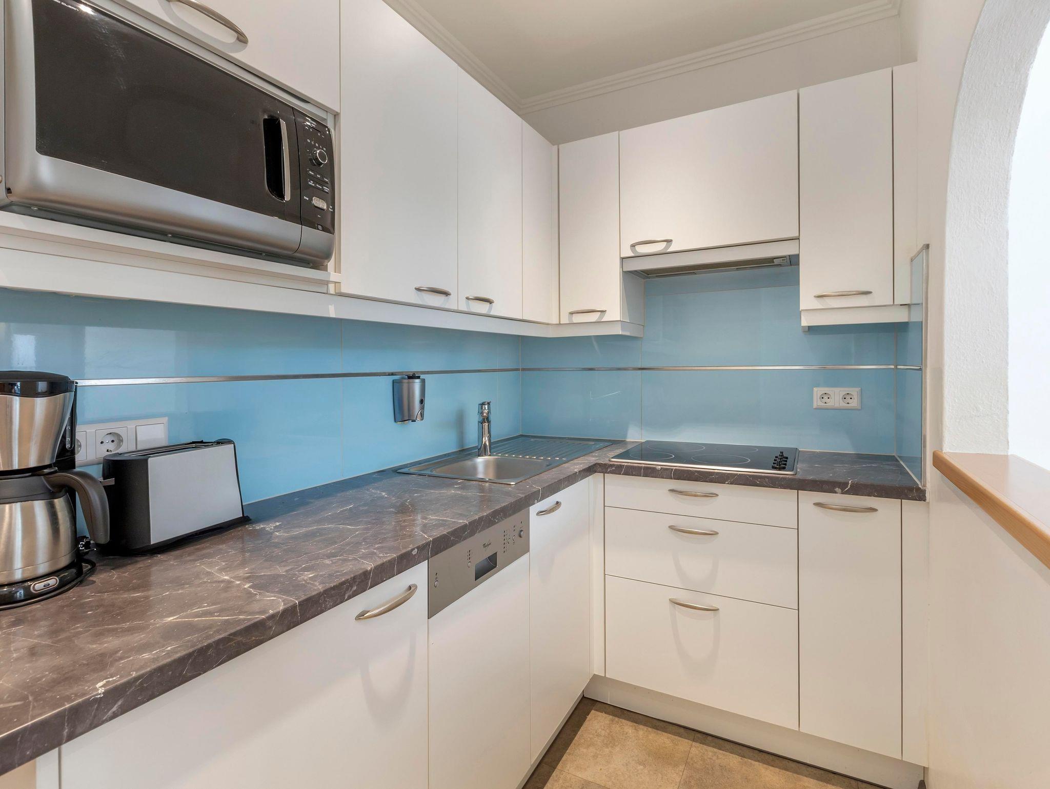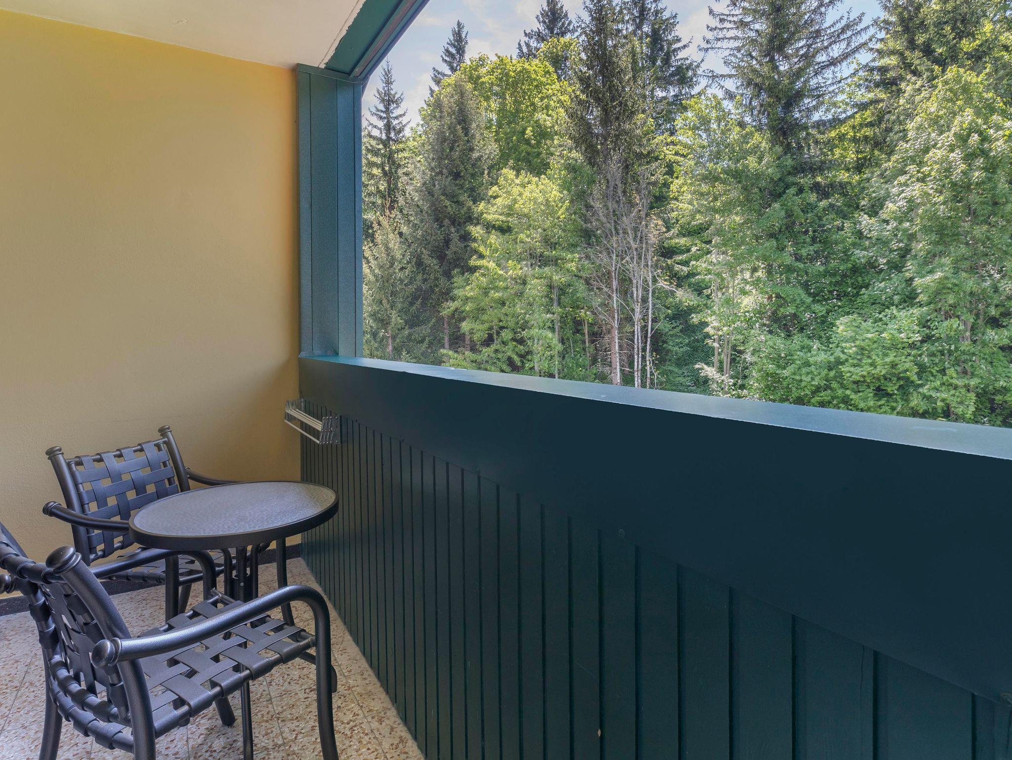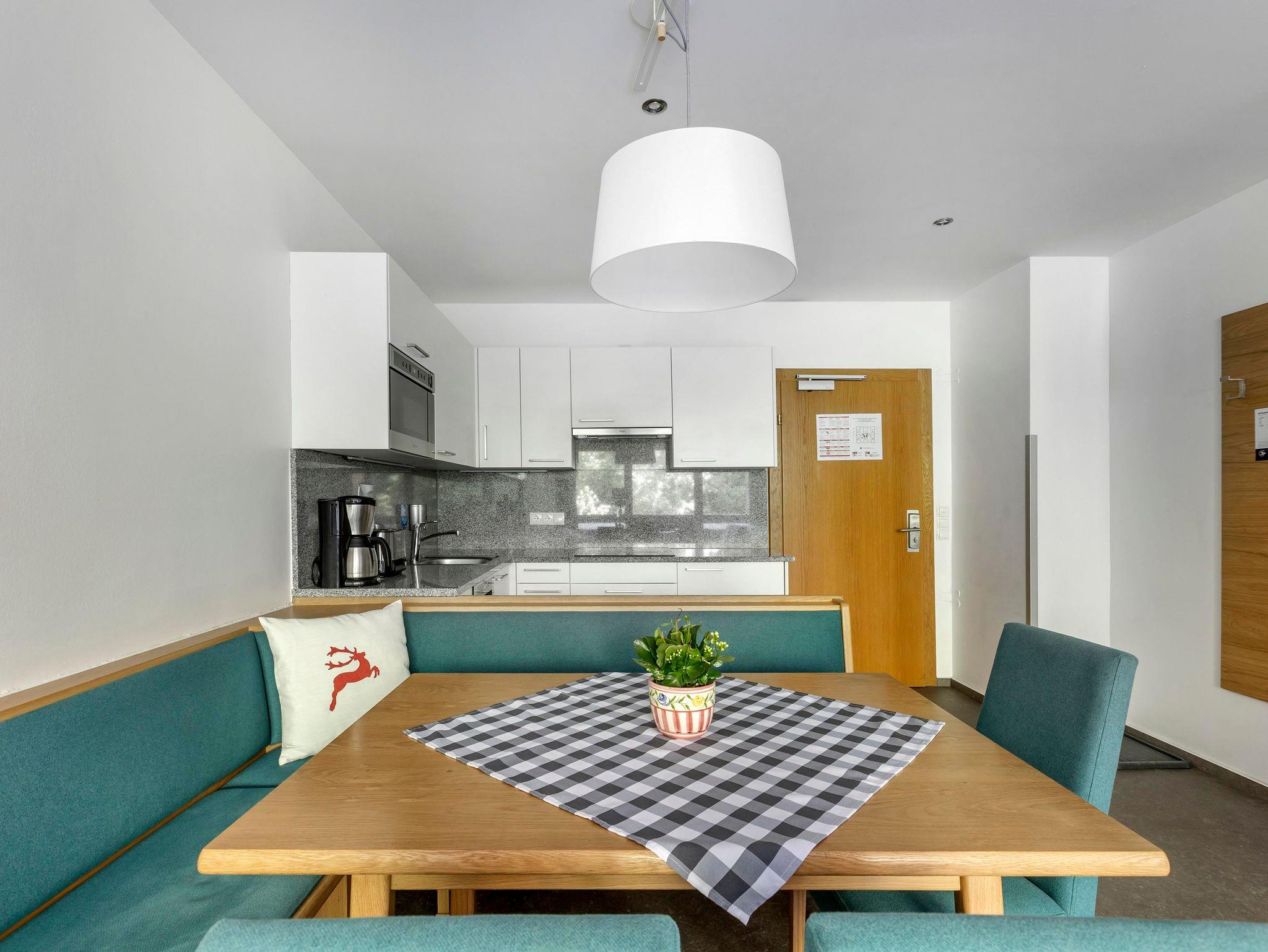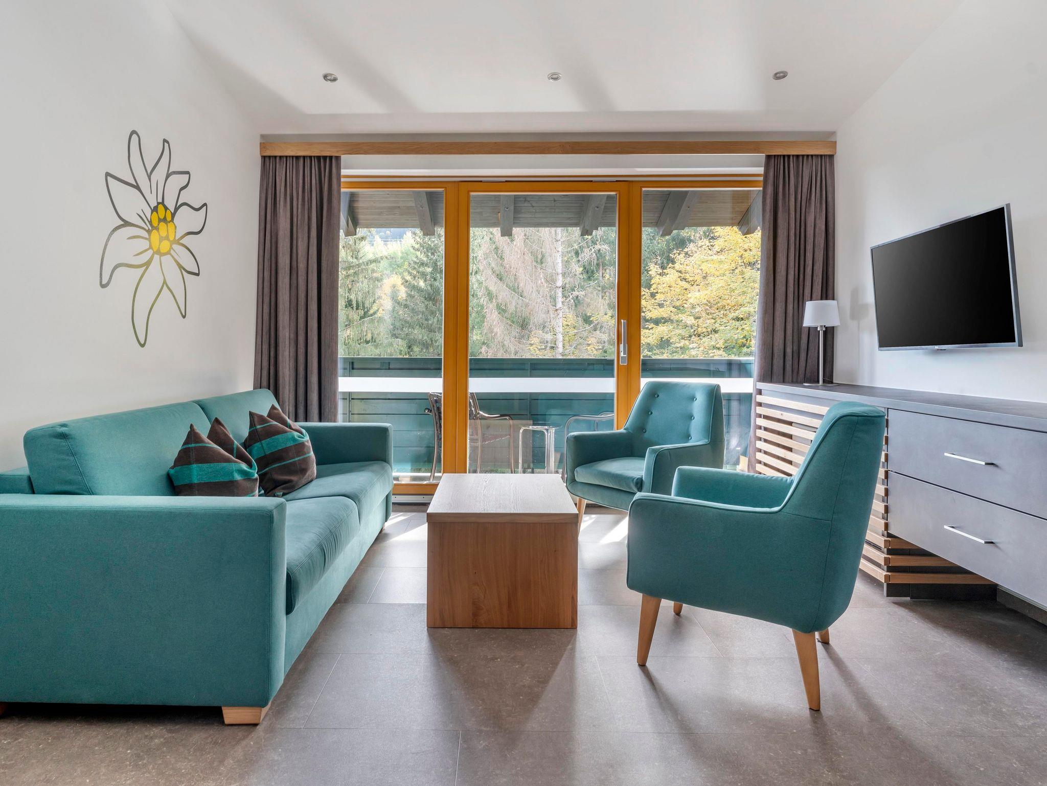Jedes One bedroom Apartment verfügt über ein Schlafzimmer mit Doppelbett, das mit einer Topmatratze, luxuriöser Bettwäsche und Smart-TV ausgestattet ist, sowie einen offenen Wohnbereich mit Schlafsofa und Smart-TV. In der gut ausgestatteten Küche befinden sich ein Kochfeld, eine Mikrowelle, ein Toaster, Geschirrspüler, Wasserkoche, Kühlschrank, umfangreiche Kochutensilien und Reinigungsmittel. Jedes Appartement hat ein Badezimmer mit Badewanne oder Dusche, einen eigenen Balkon oder eine Terrasse und bietet einen herrlichen Blick auf die Berge oder den Wald.